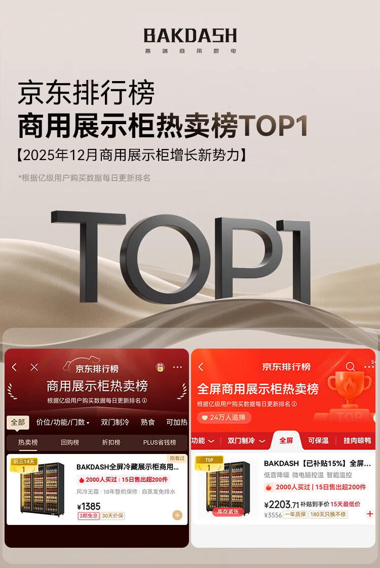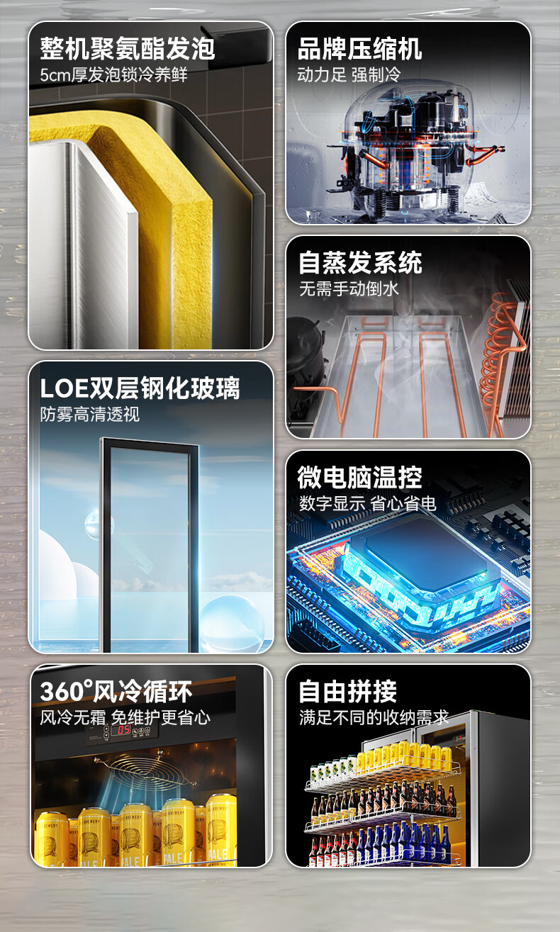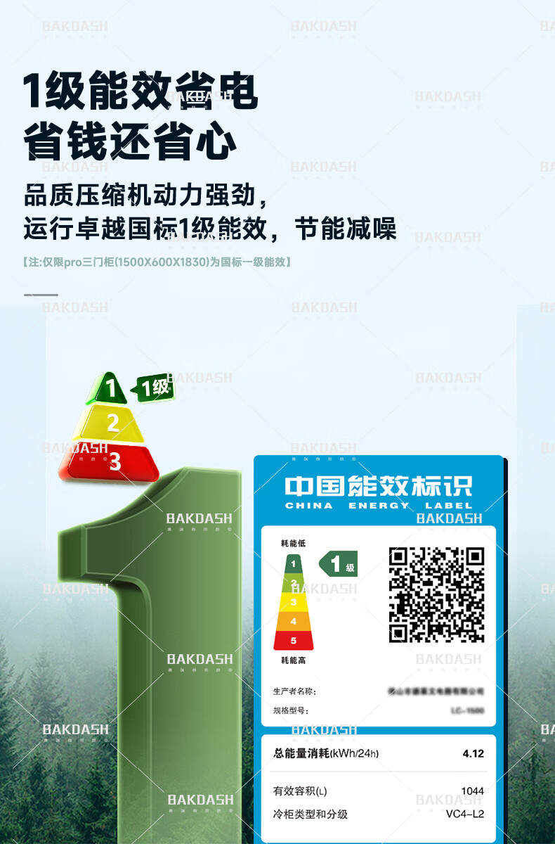 BAKDASH full screen refrigerated display cabinet commercial freezer refrigerated display cabinet wine air-cooled fresh cabinet supermarket convenience store refrigerator vertical beverage cabinet beer cabinet | double door | 1000*600*1830 first-level energy efficiency Pro anti-fog model | frequency conversion energy saving