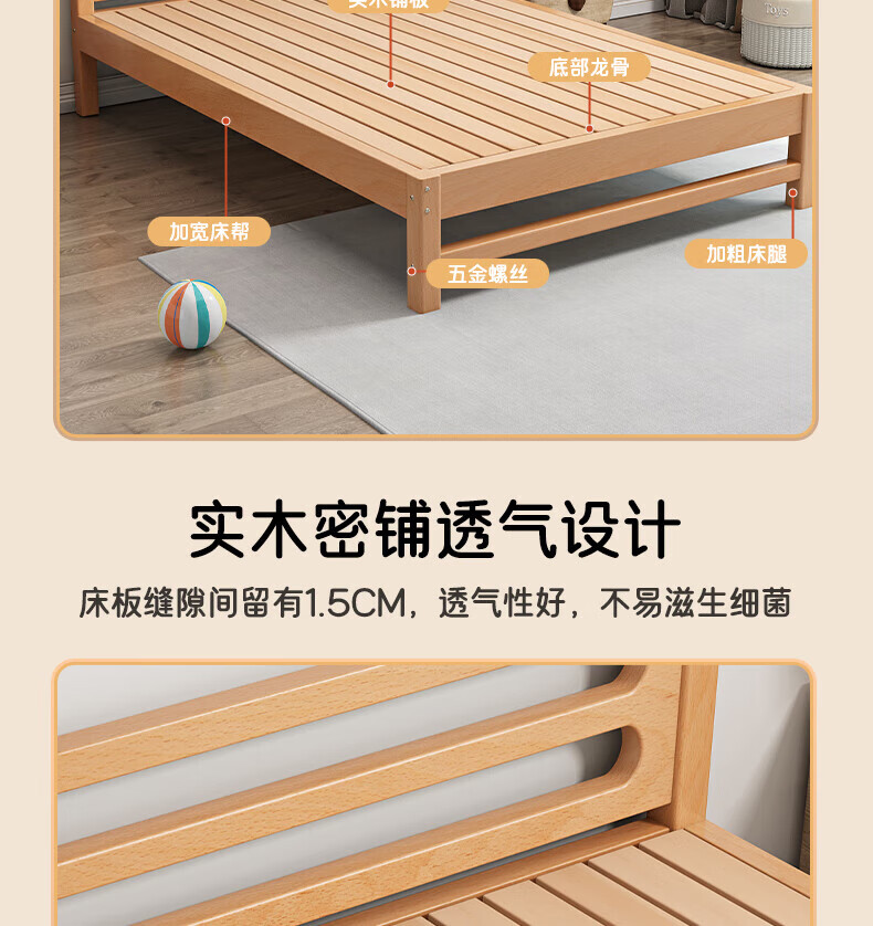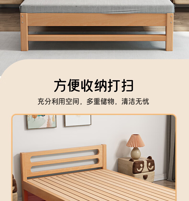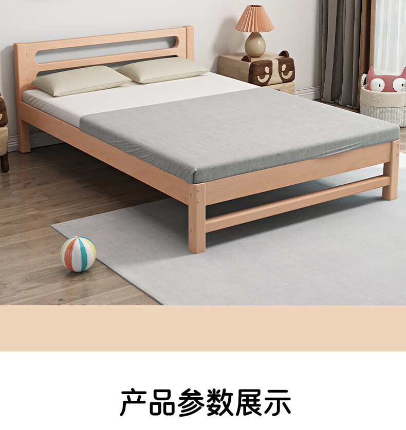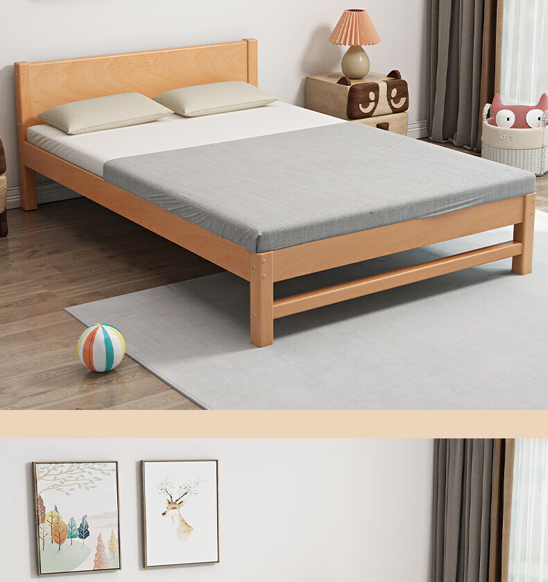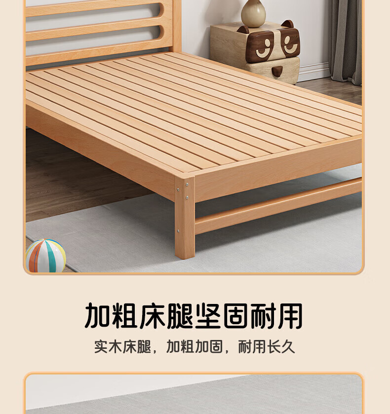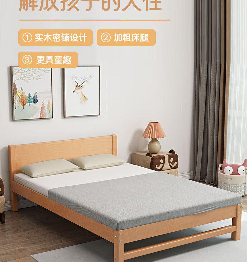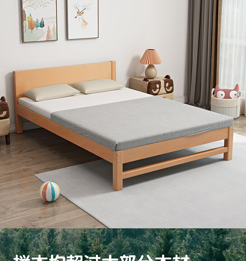 Mu Minglai solid wood bed children's bed beech single bed 1.2 meters boys and girls 1.5 meters small bed modern simple large bed A type log unpainted suitable for mattress 150cm*200cm