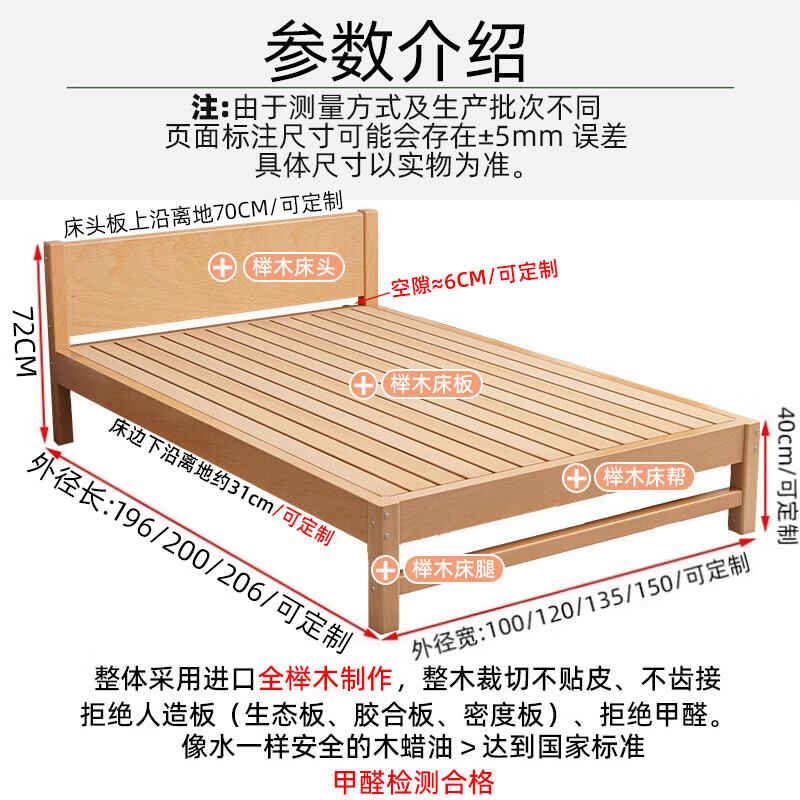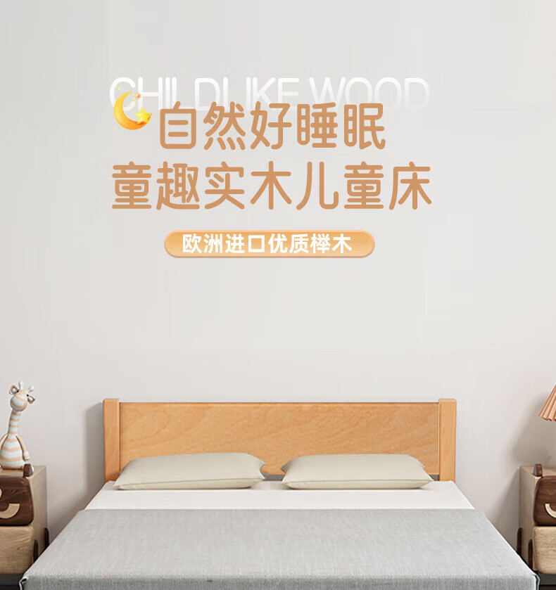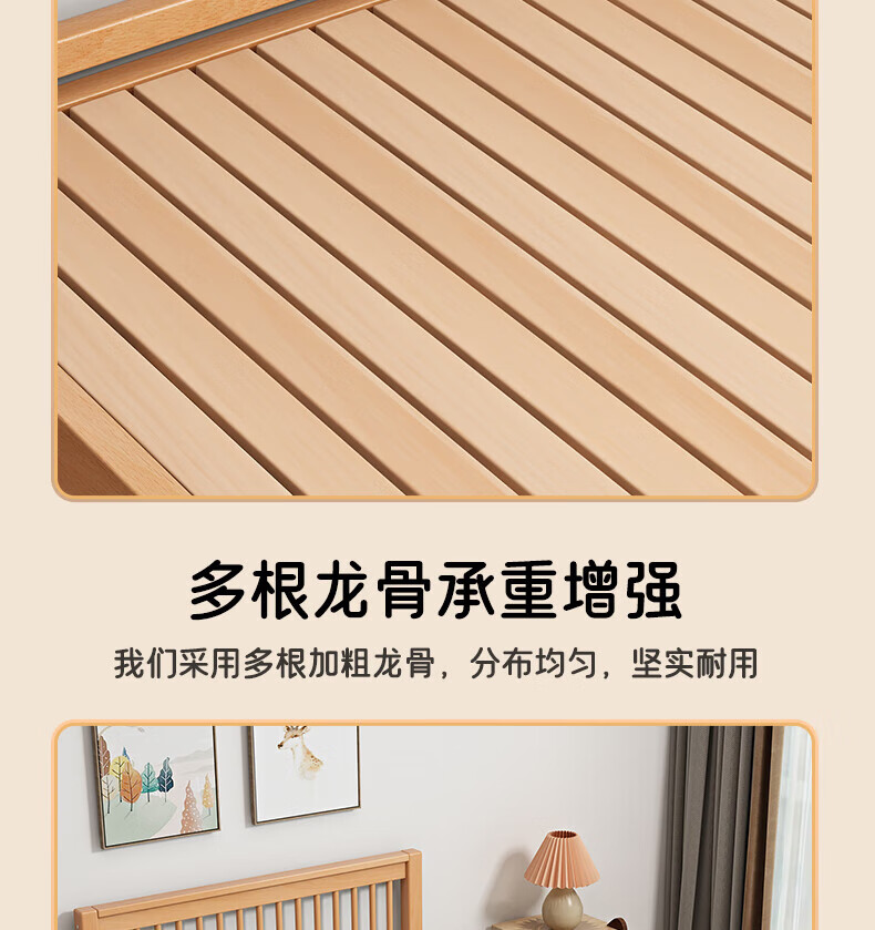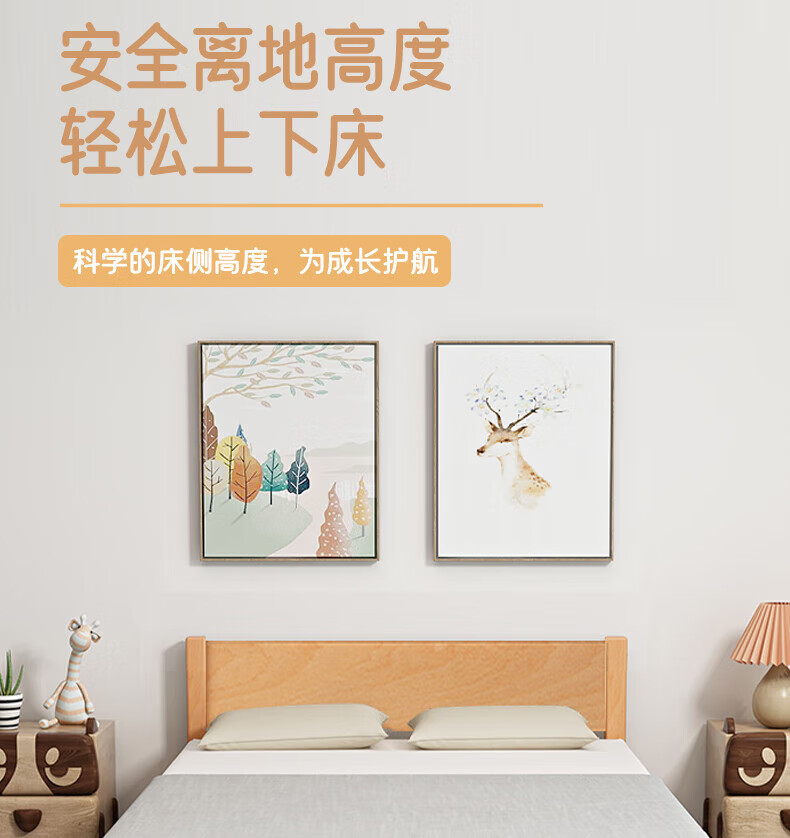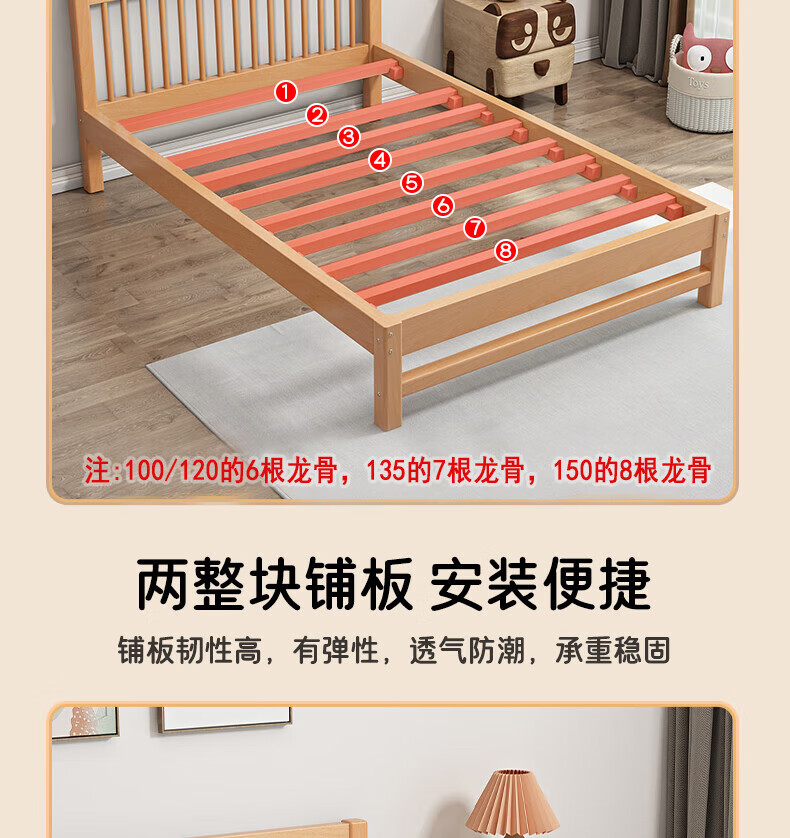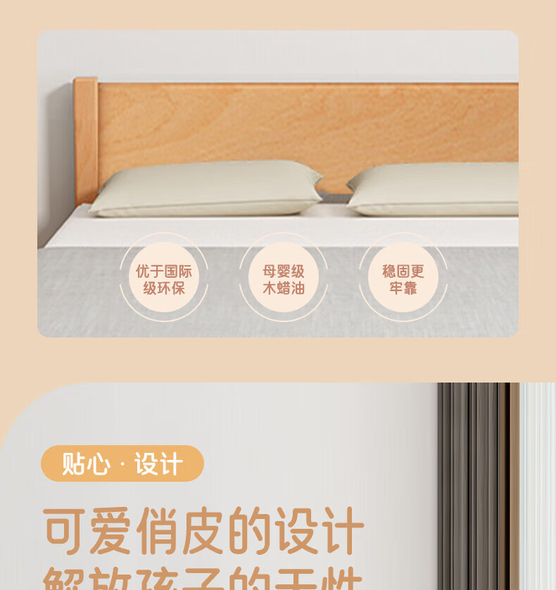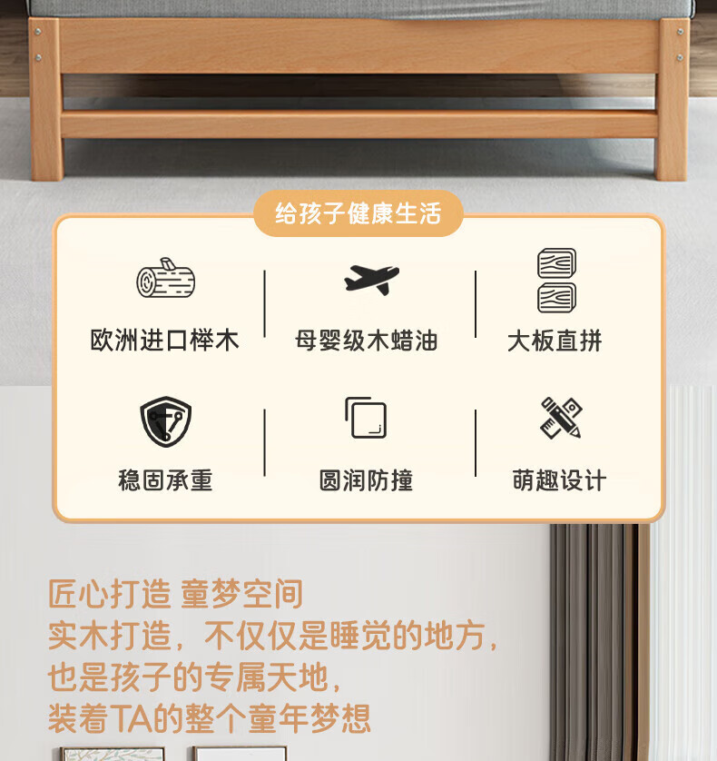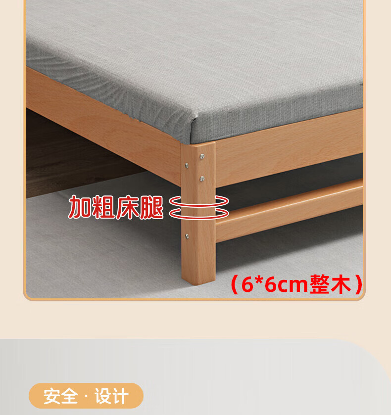 Mu Minglai solid wood bed children's bed beech single bed 1.2 meters boys and girls 1.5 meters small bed modern simple large bed A type log unpainted suitable for mattress 150cm*200cm