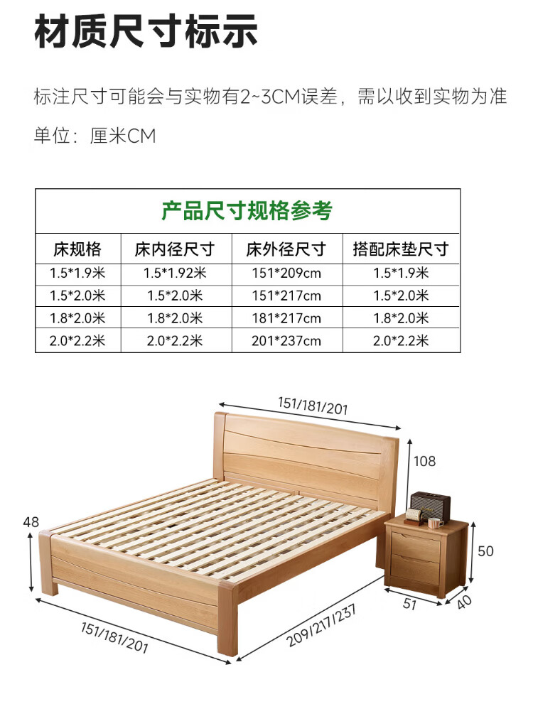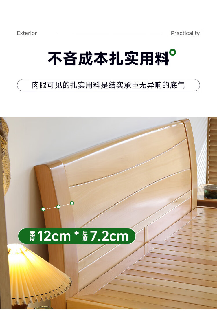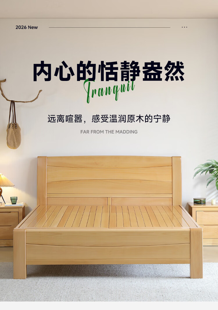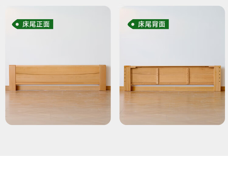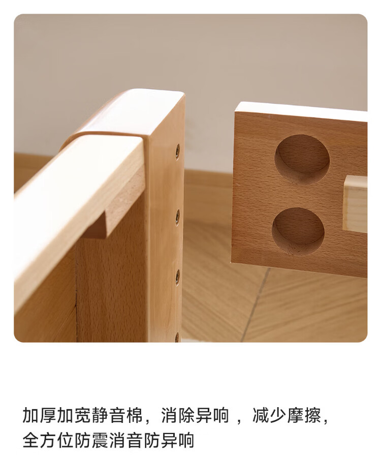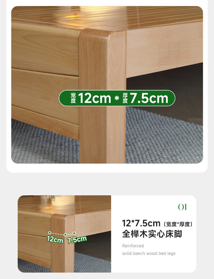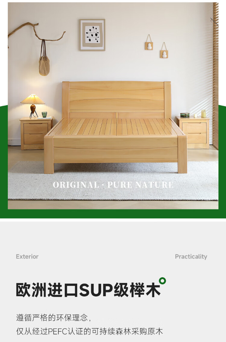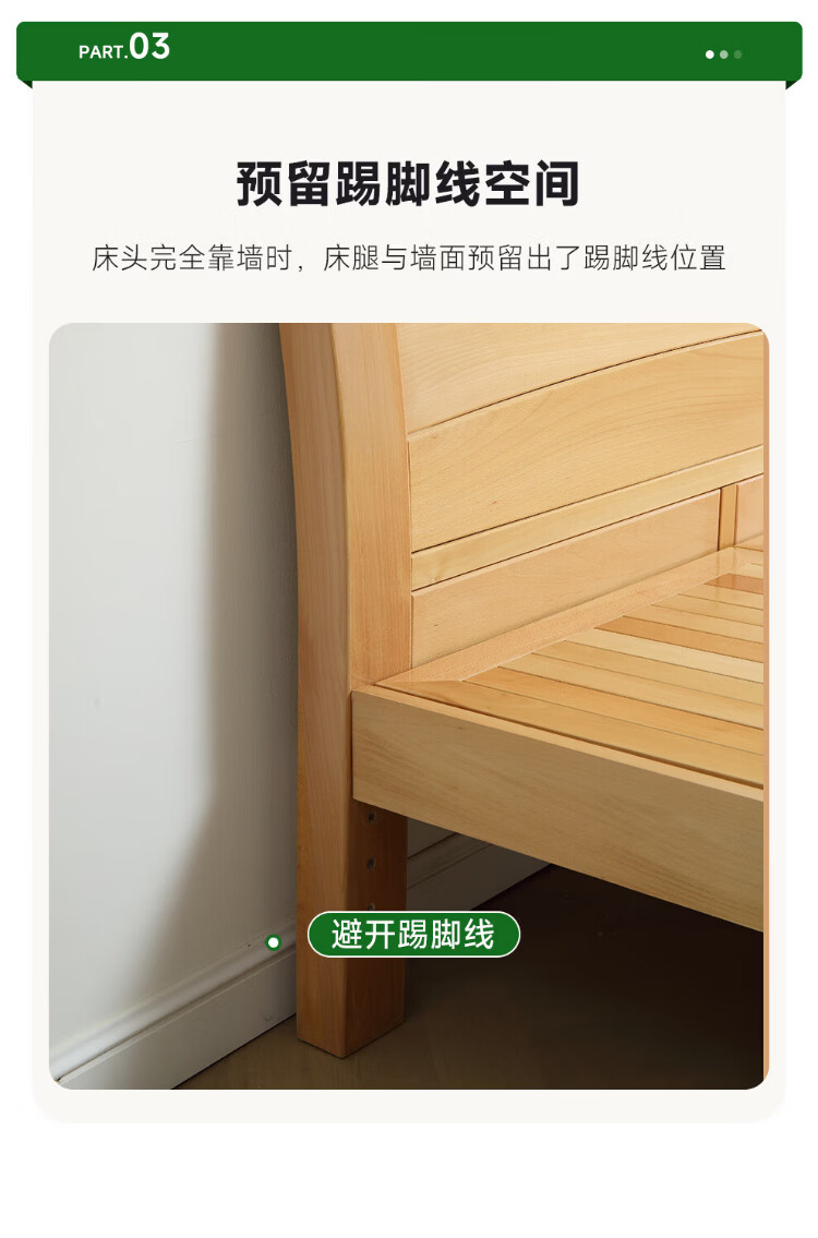 Virgin forest beech bed, all solid wood double bed, thickened simple solid wood large bed, beech furniture, log bed, master bedroom wedding bed, single bed, standard version 1.8*2.0 meters-2.7cm thick beech bedside + fir keel + pine bed board