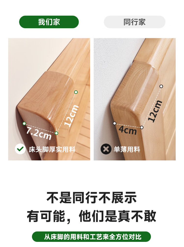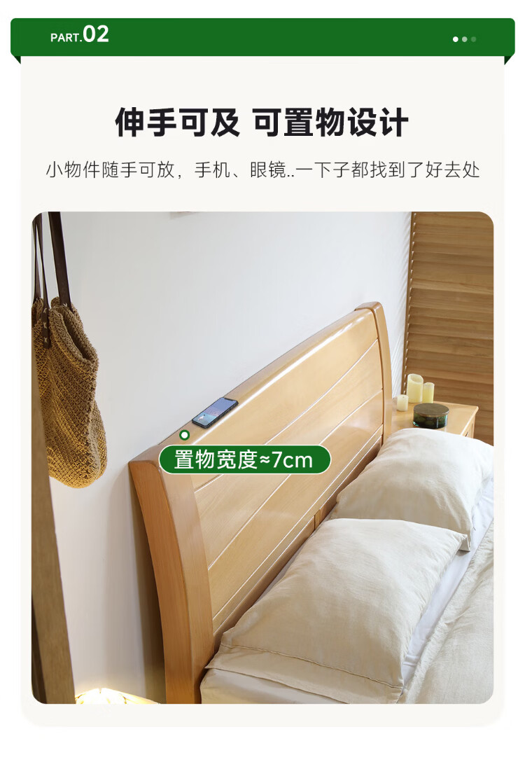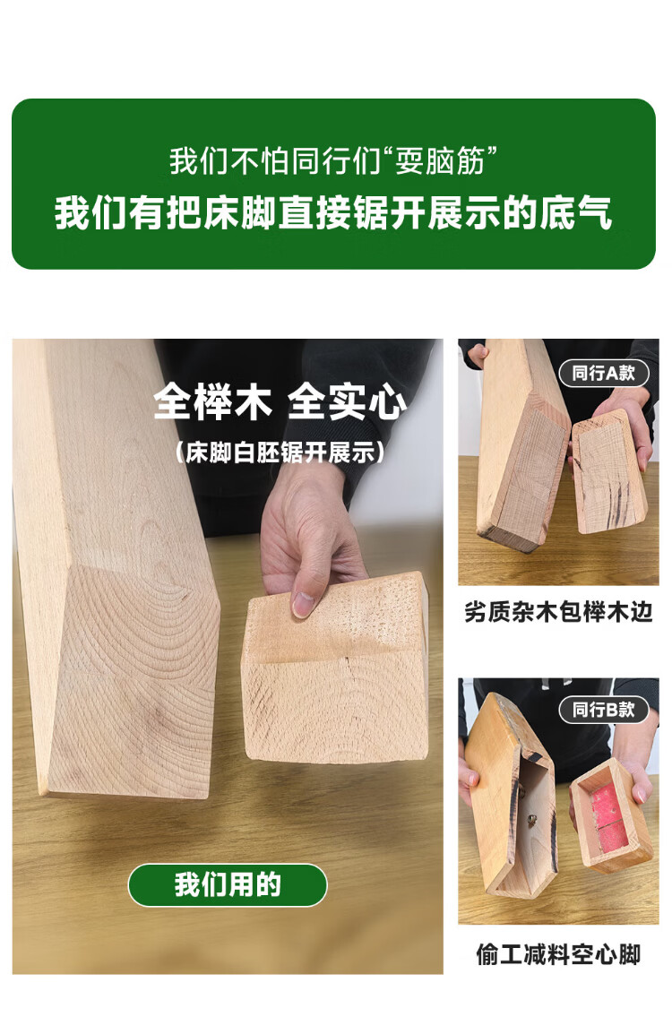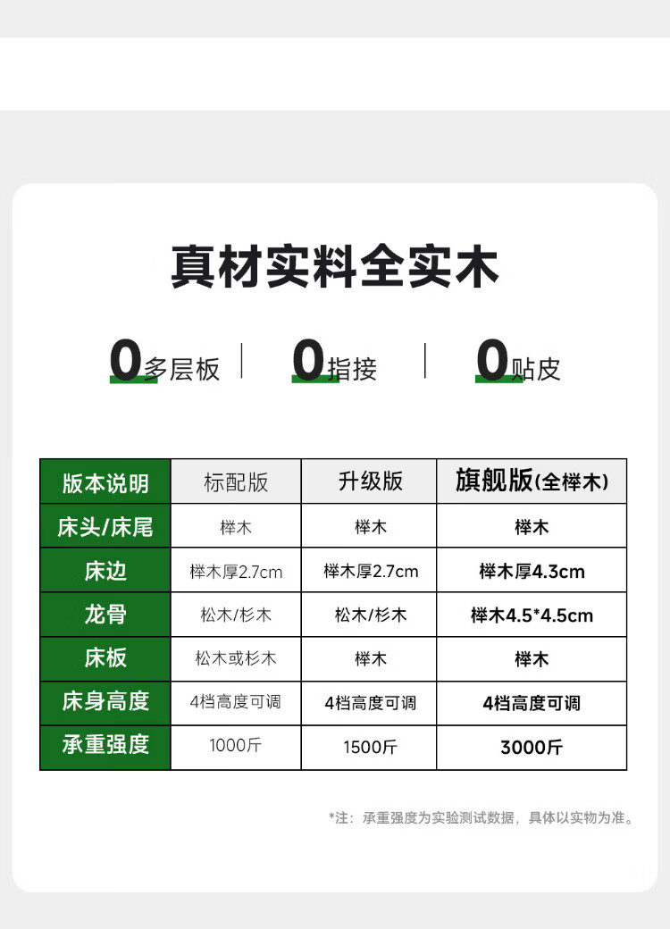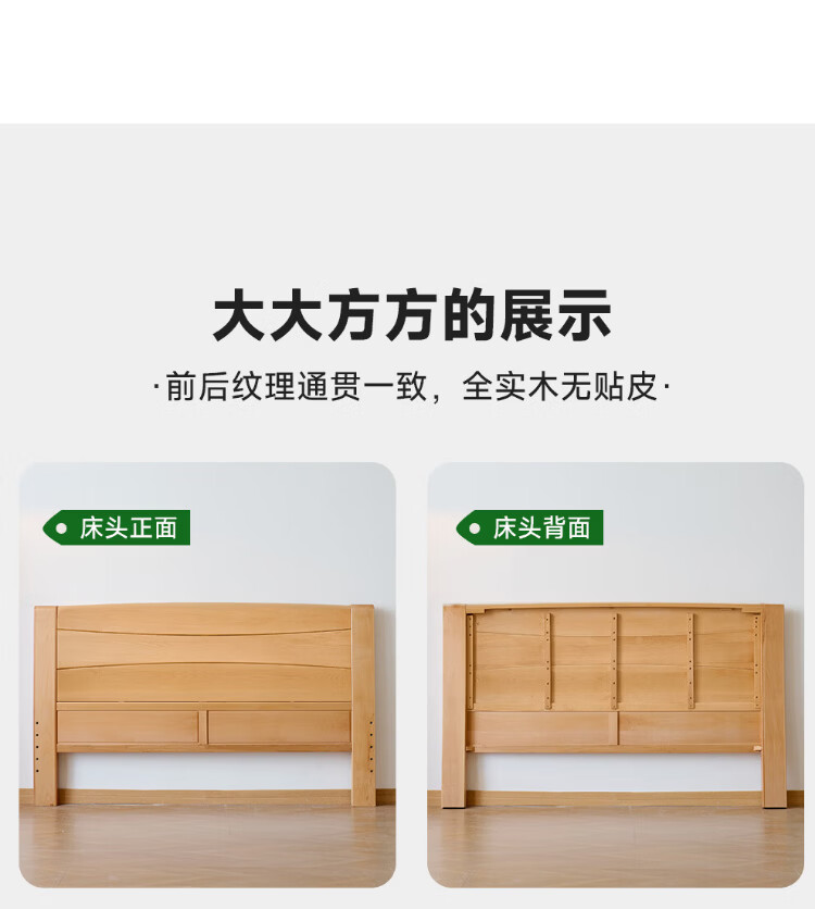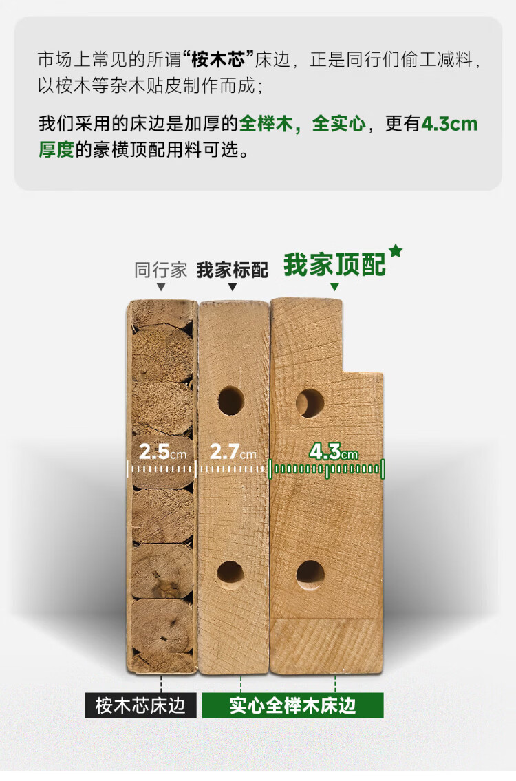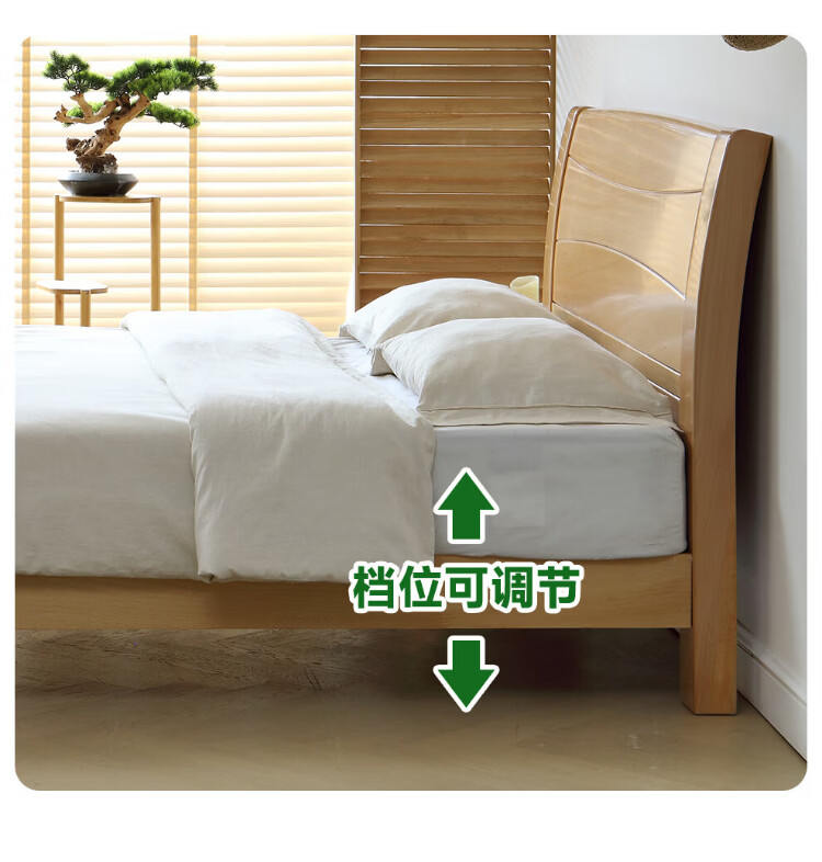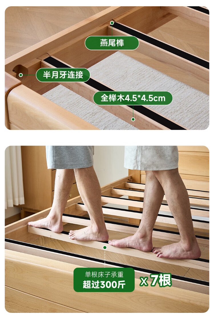 Virgin forest beech bed, all solid wood double bed, thickened simple solid wood large bed, beech furniture, log bed, master bedroom wedding bed, single bed, standard version 1.8*2.0 meters-2.7cm thick beech bedside + fir keel + pine bed board