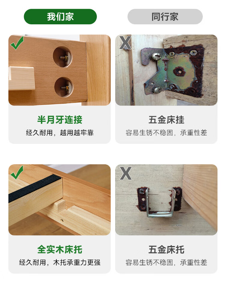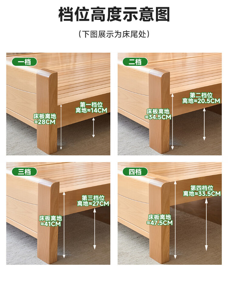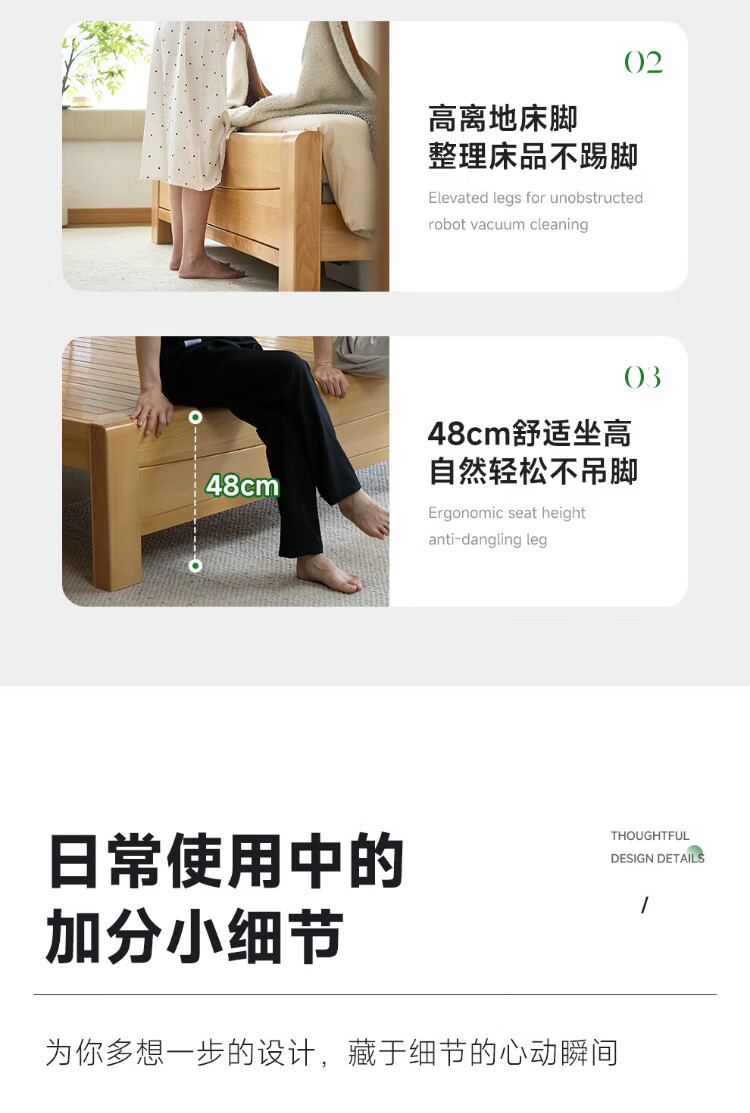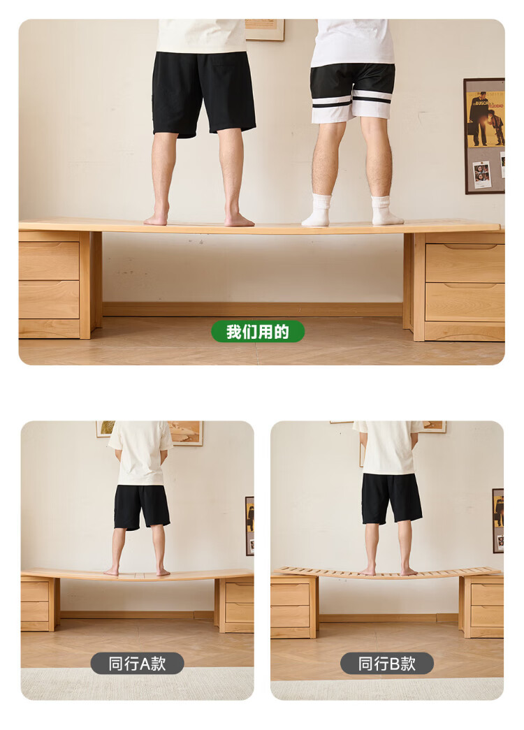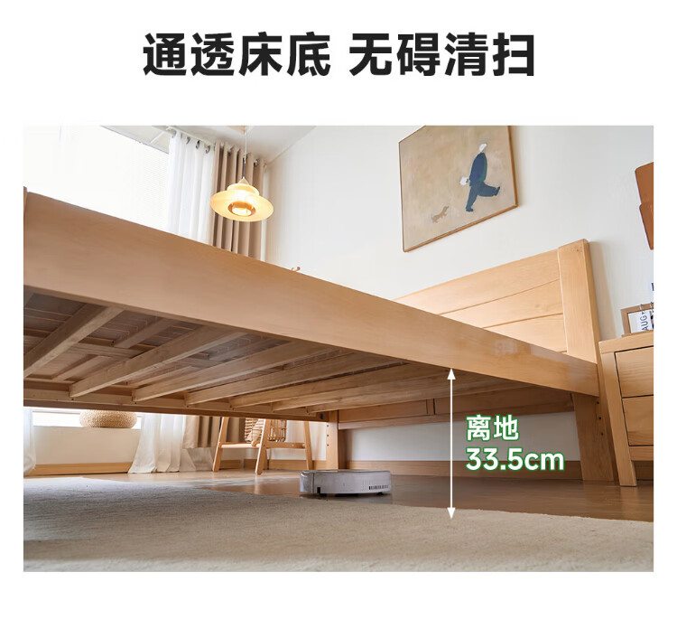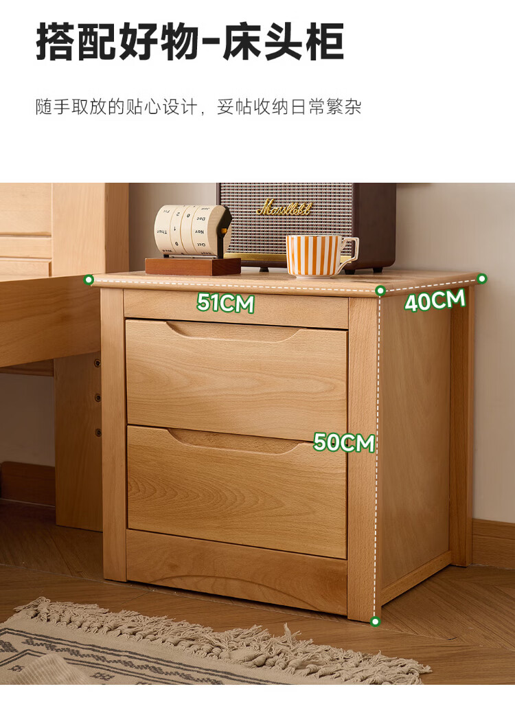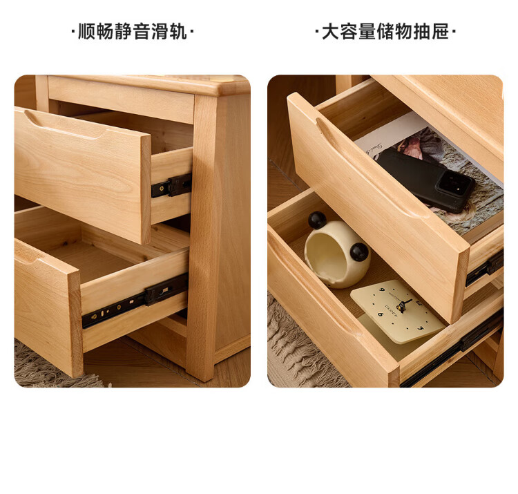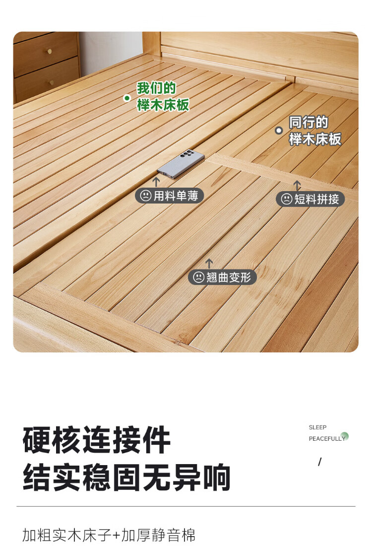 Virgin forest beech bed, all solid wood double bed, thickened simple solid wood large bed, beech furniture, log bed, master bedroom wedding bed, single bed, standard version 1.8*2.0 meters-2.7cm thick beech bedside + fir keel + pine bed board