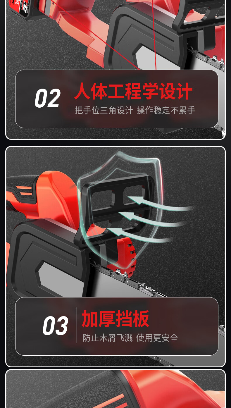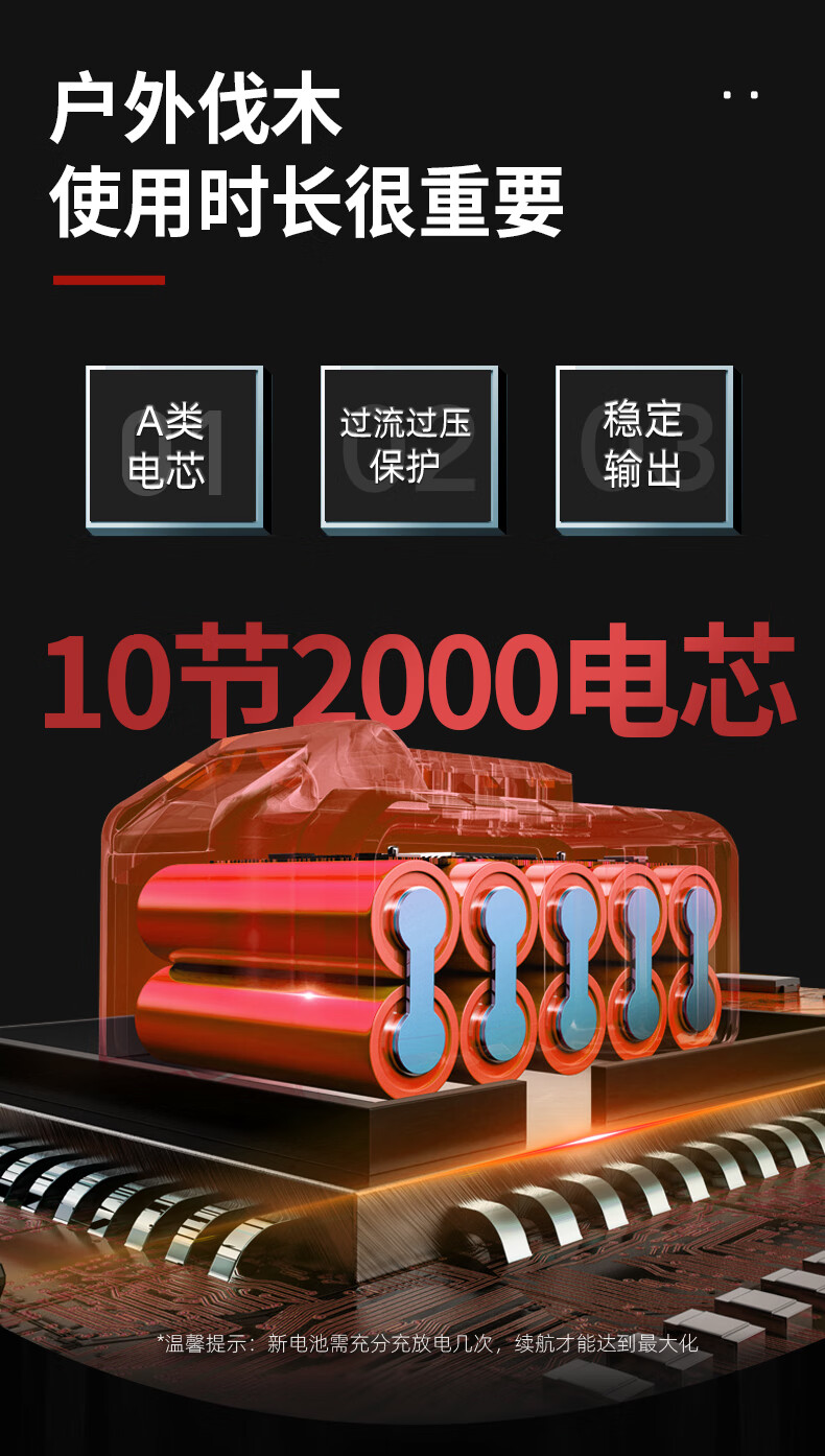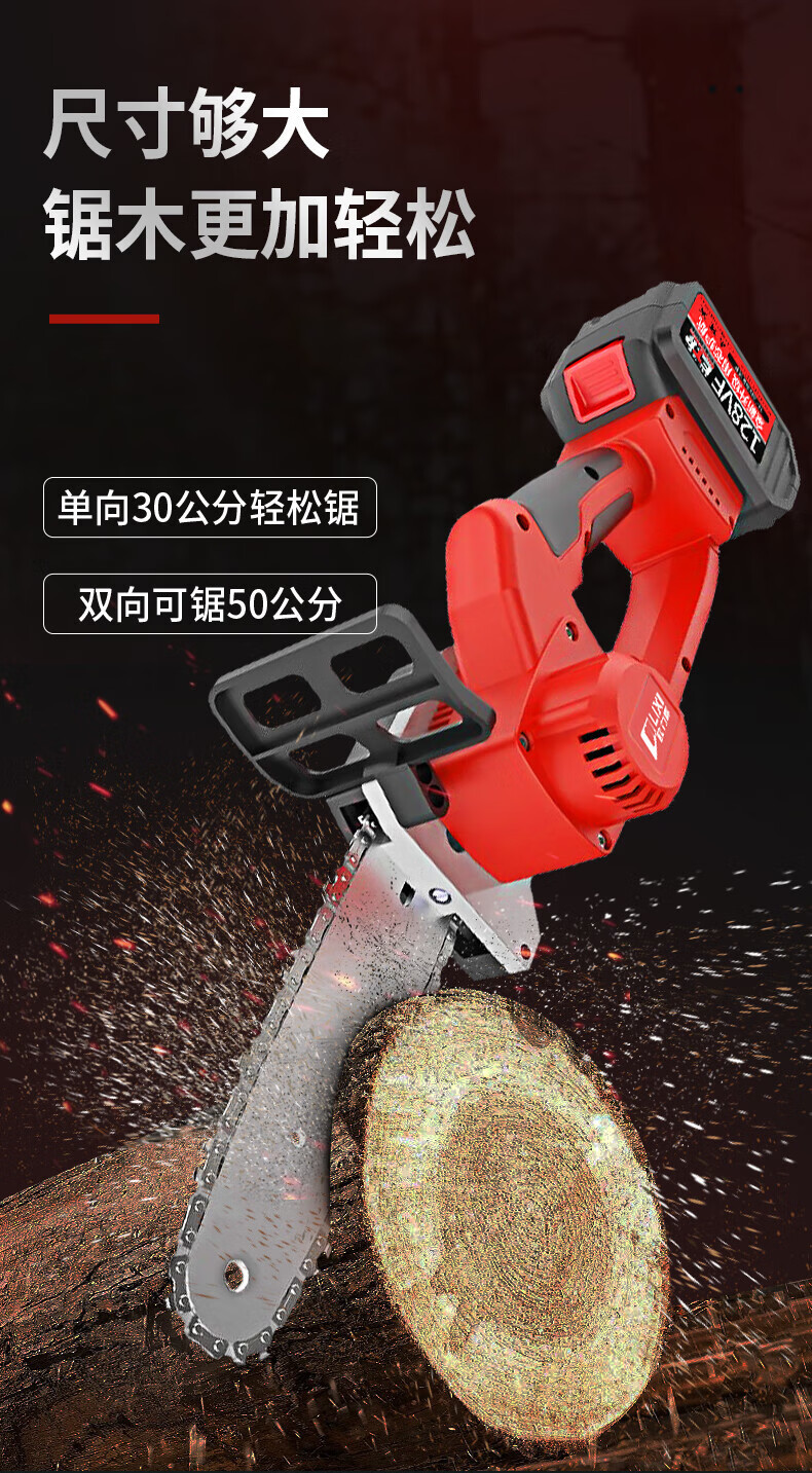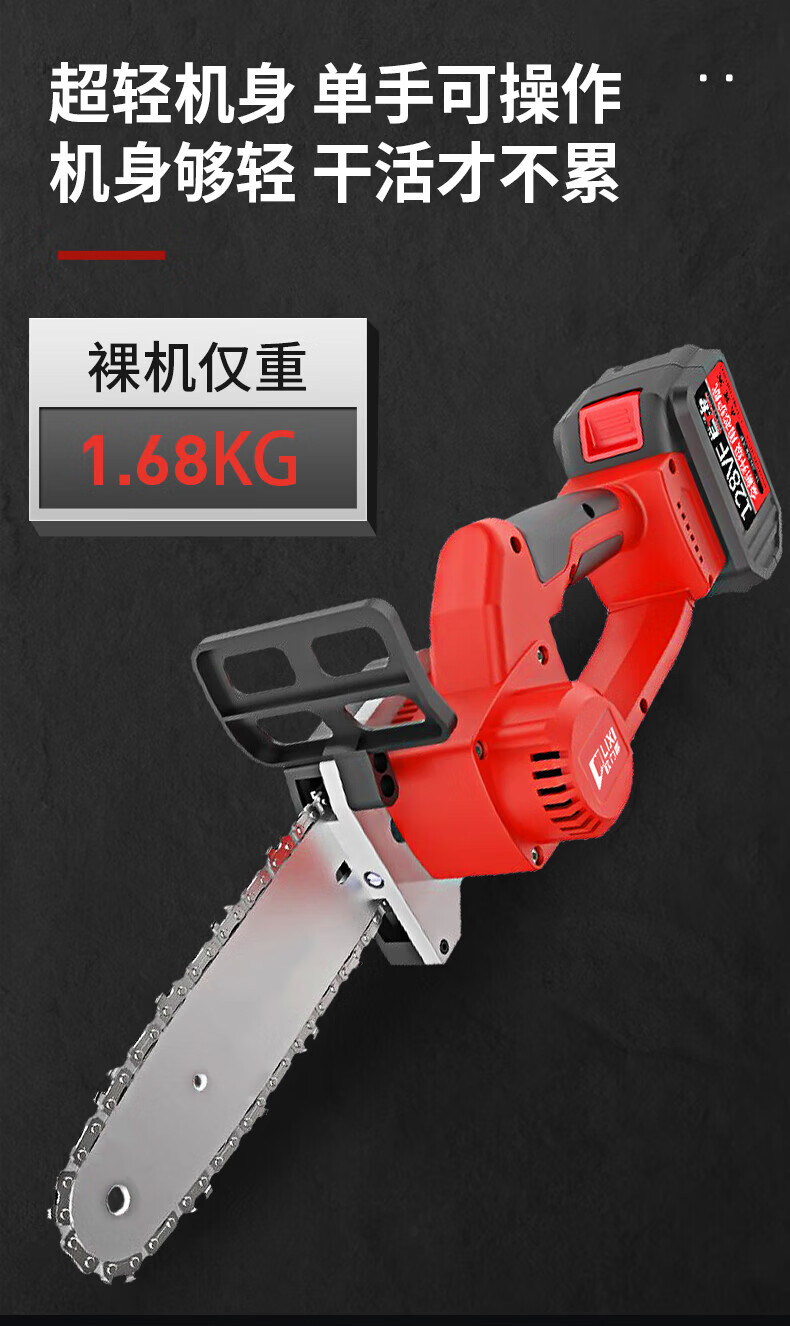 Oulixi high-power electric chain saw lithium battery saw rechargeable logging woodworking saw household handheld pruning saw electric agricultural tool 10-inch brushless model dual lithium battery + double chain