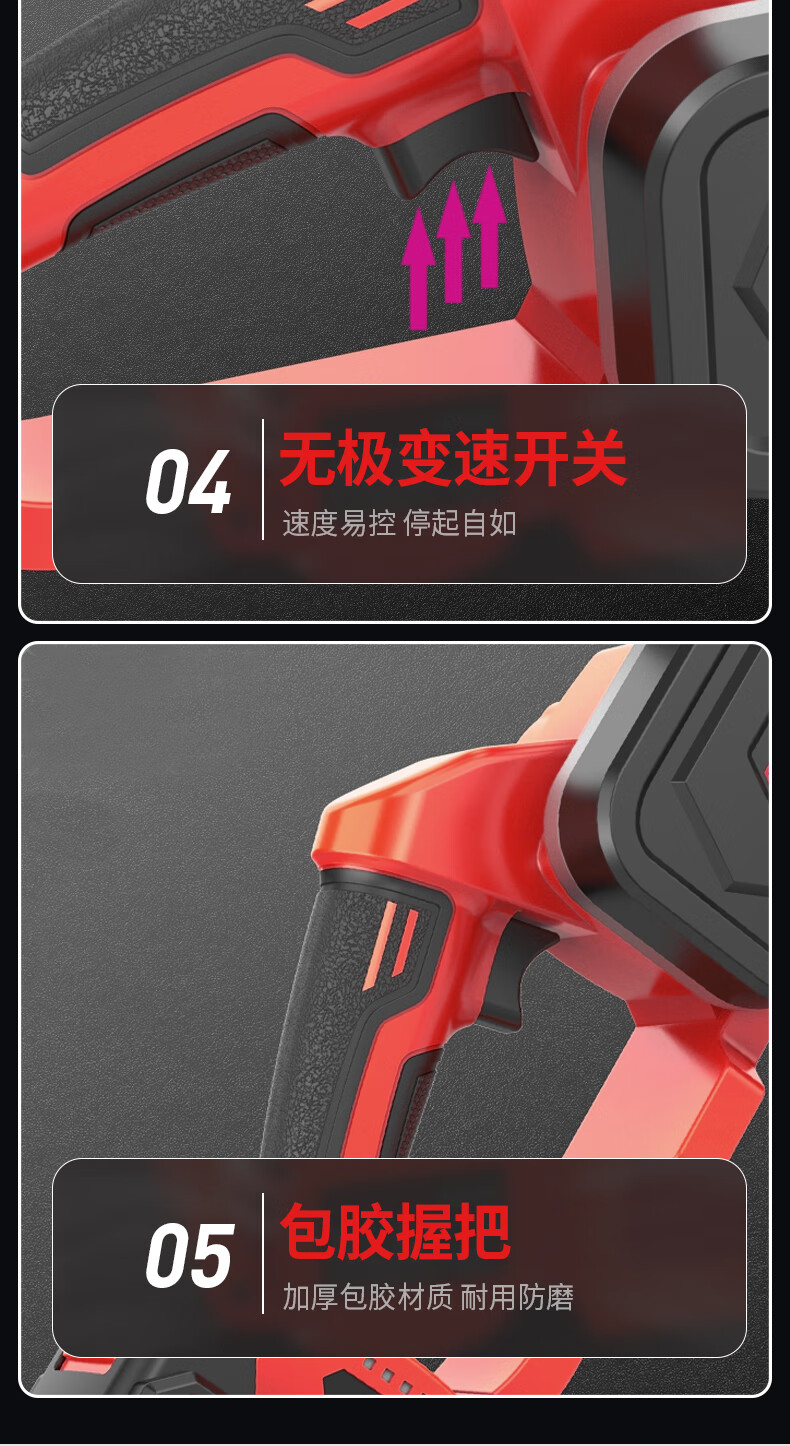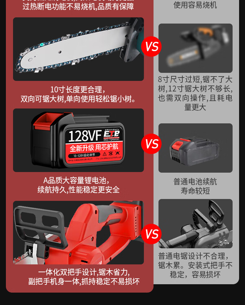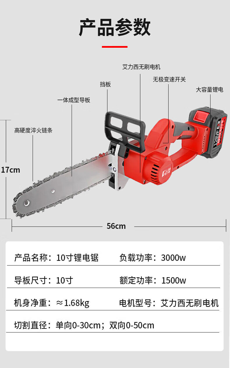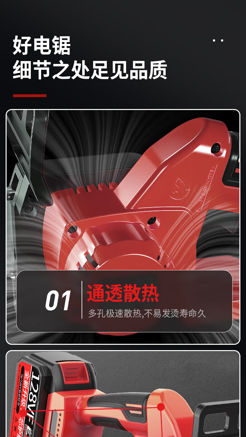 Oulixi high-power electric chain saw lithium battery saw rechargeable logging woodworking saw household handheld pruning saw electric agricultural tool 10-inch brushless model dual lithium battery + double chain