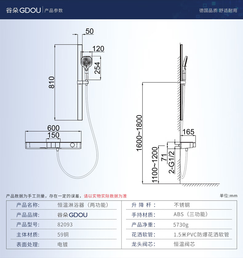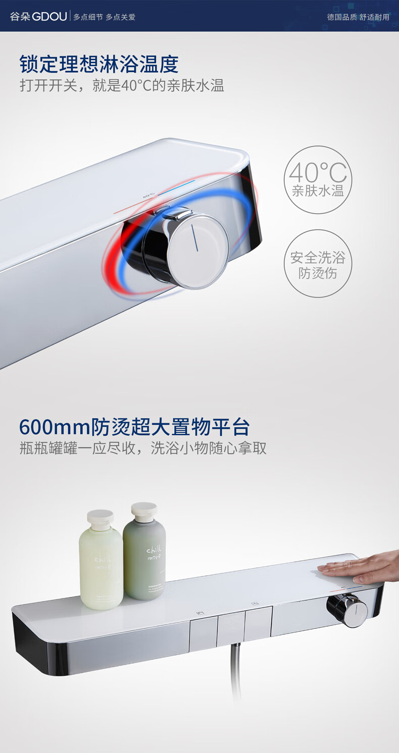 Guduo GDOU bathroom two-function with lift rod smart constant temperature large storage table wall-mounted shower set 82093