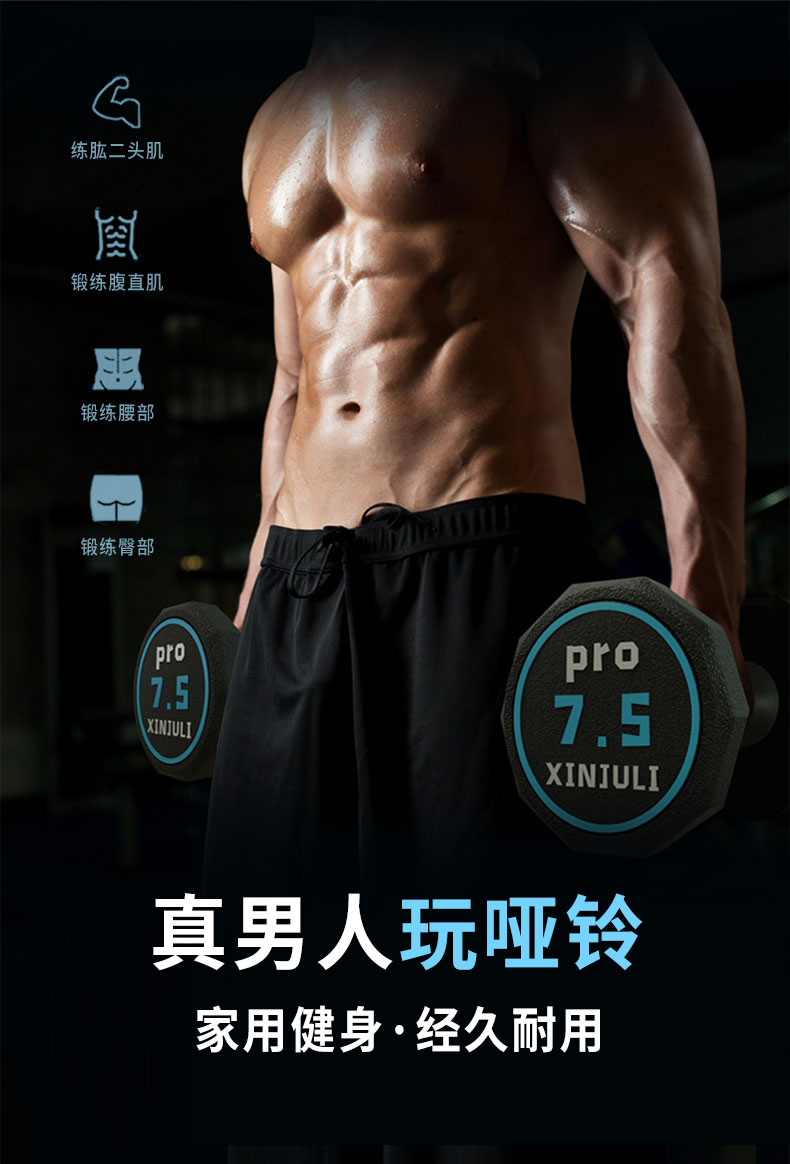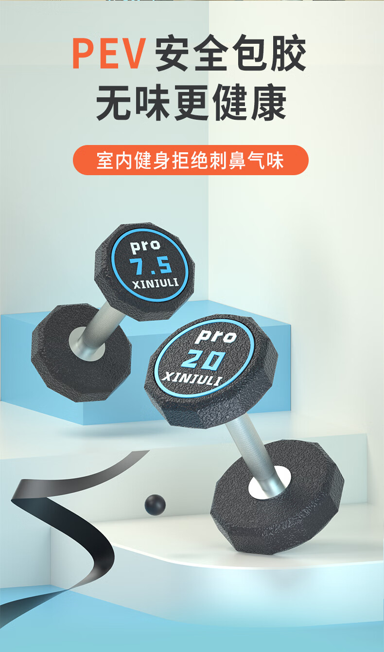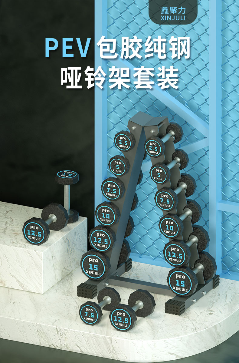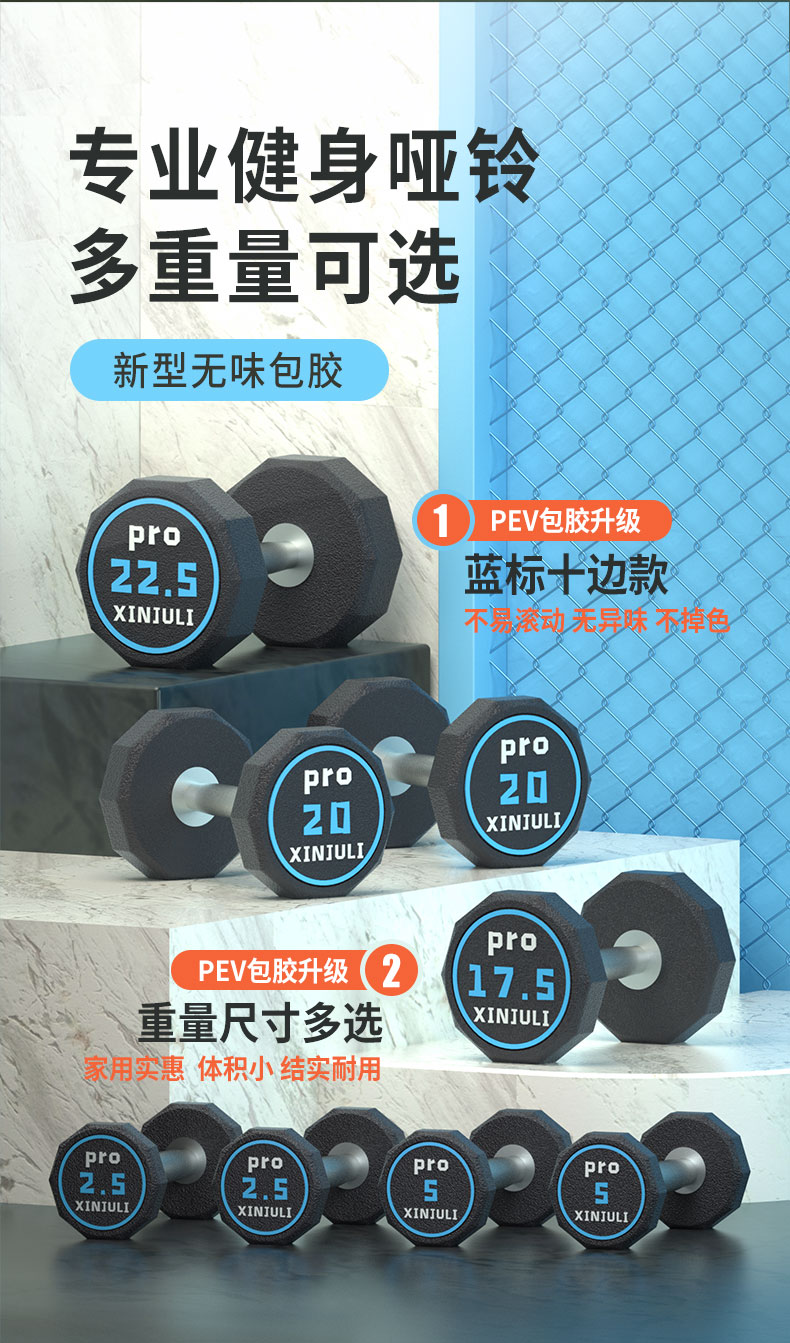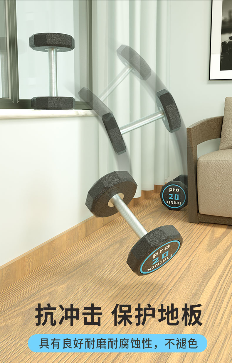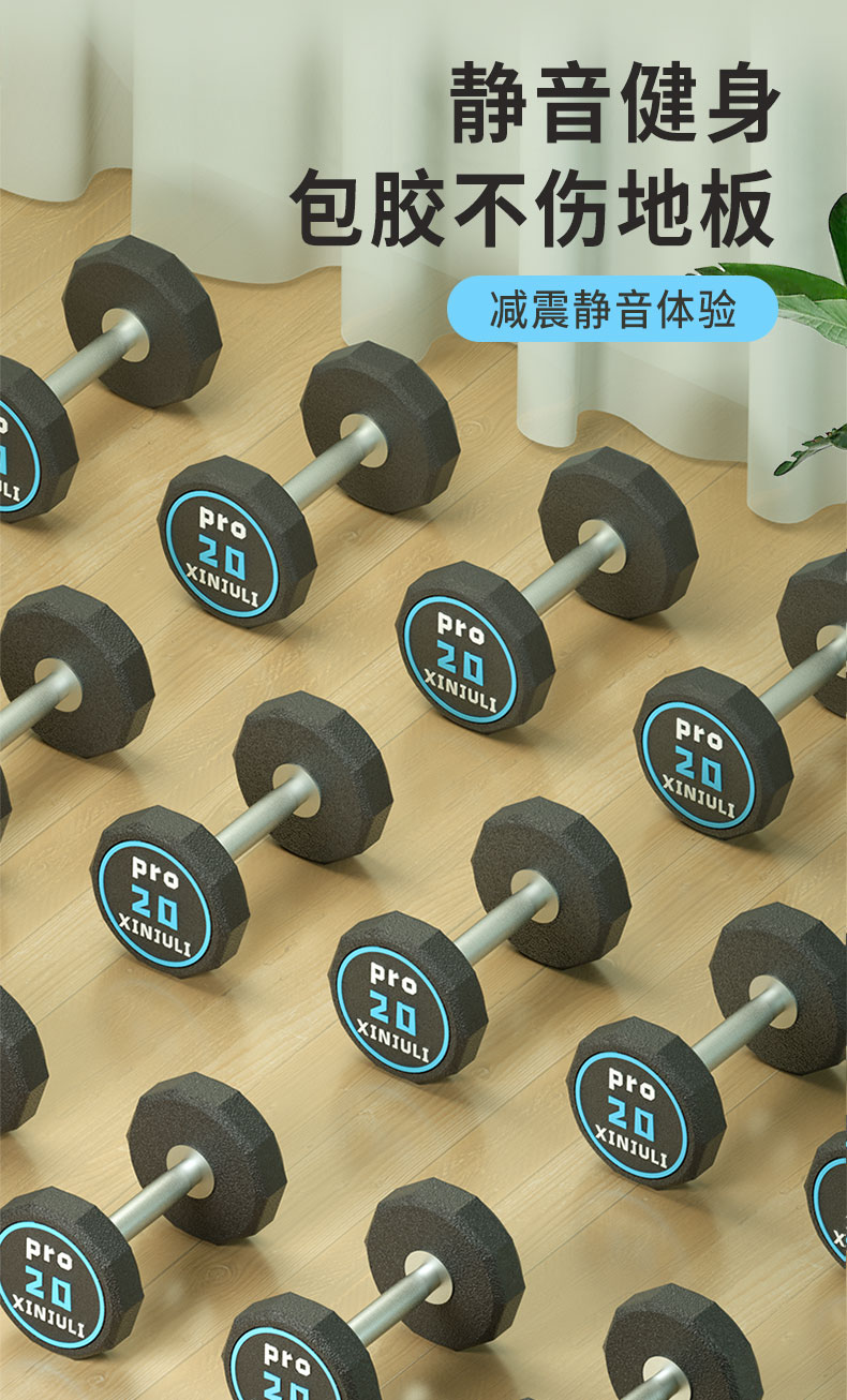 XINJULI fixed dumbbells for men and women, home fitness equipment, commercial personal training, solid rubberized combination polygonal dumbbell rack package, household three-layer 8 pairs of dumbbell rack package