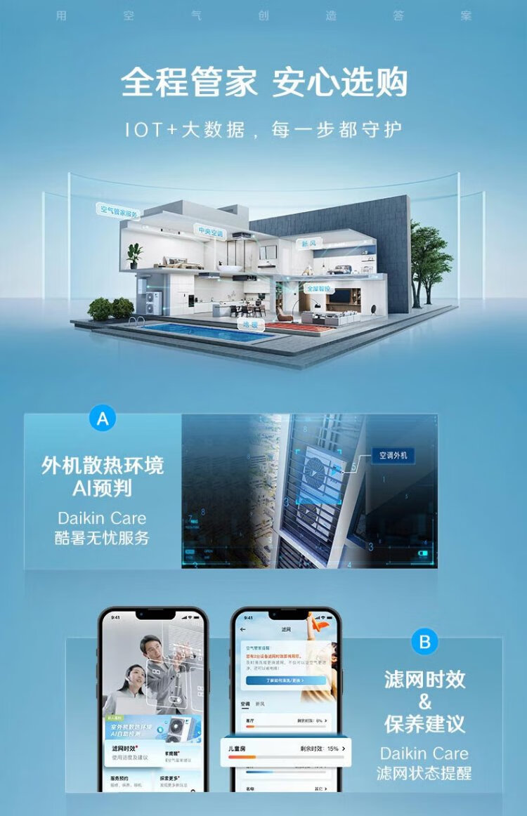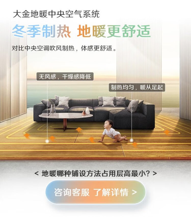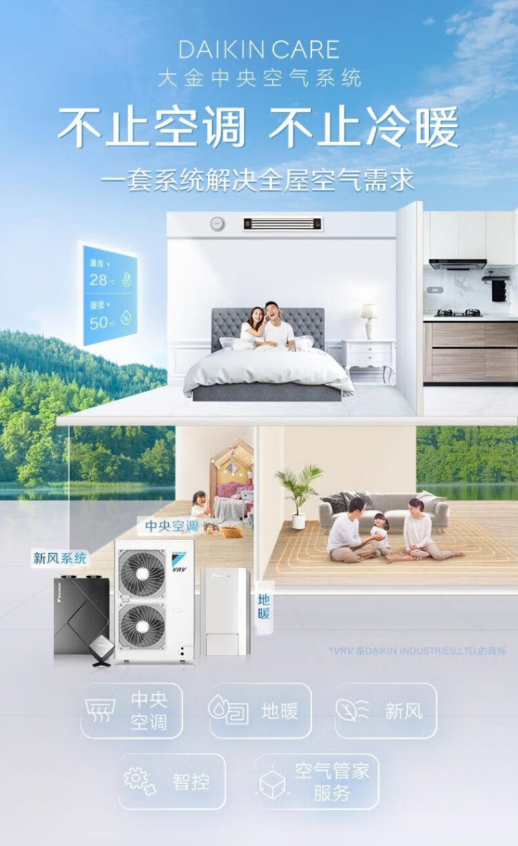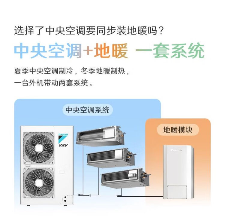 DAIKIN central air conditioning + floor heating/fresh air, one to four, one to three, air energy heating, water floor heating, full heat exchange fresh air system, household multi-split frequency conversion first-level energy efficiency, floor heating + central air conditioning, consultation for customized number of units