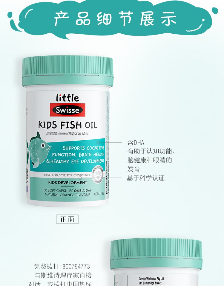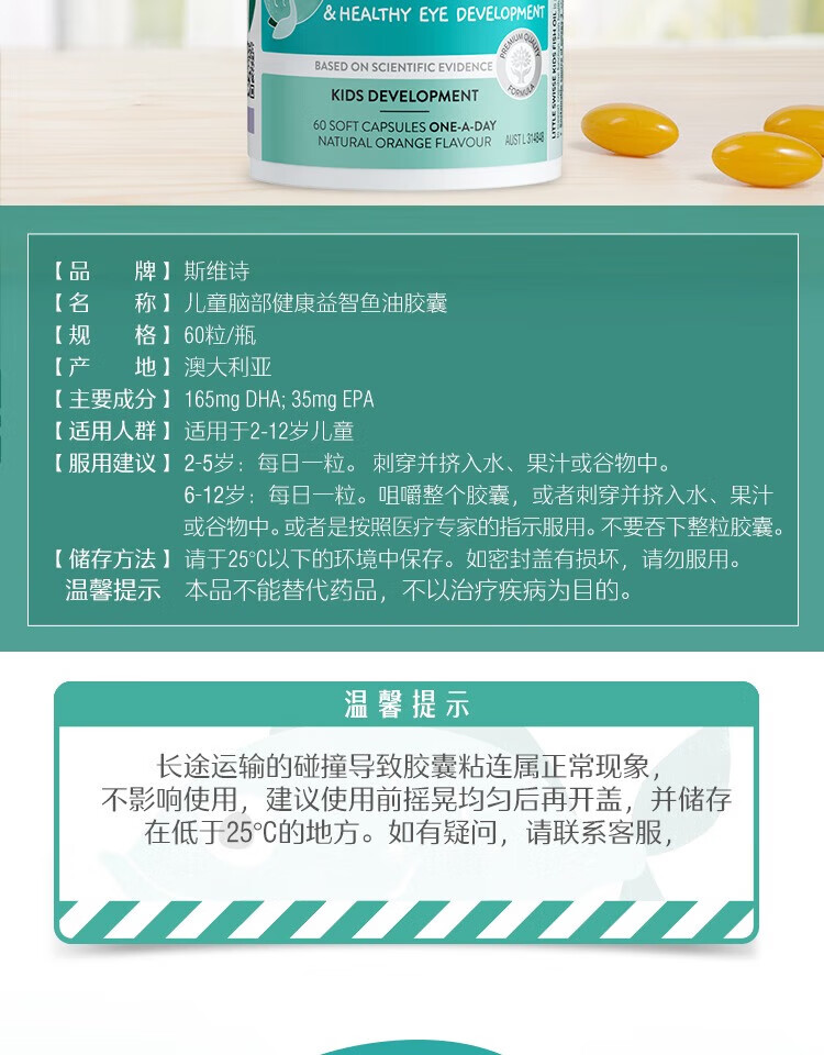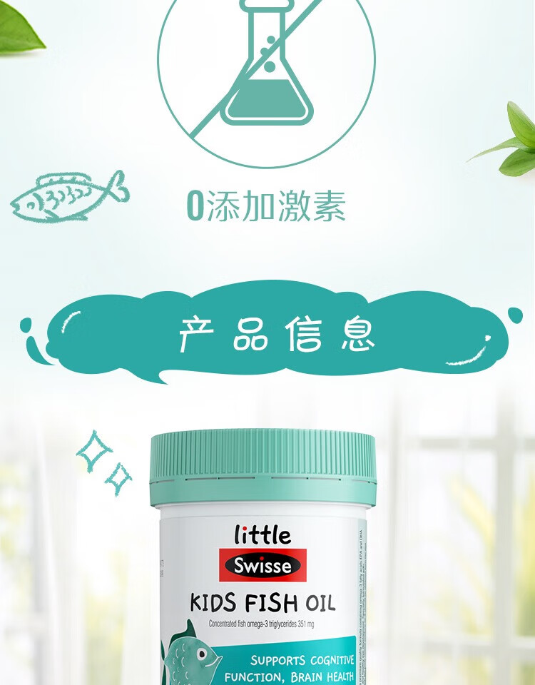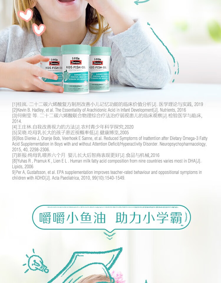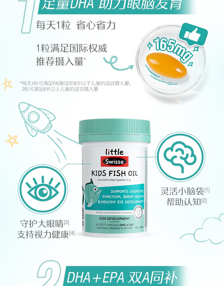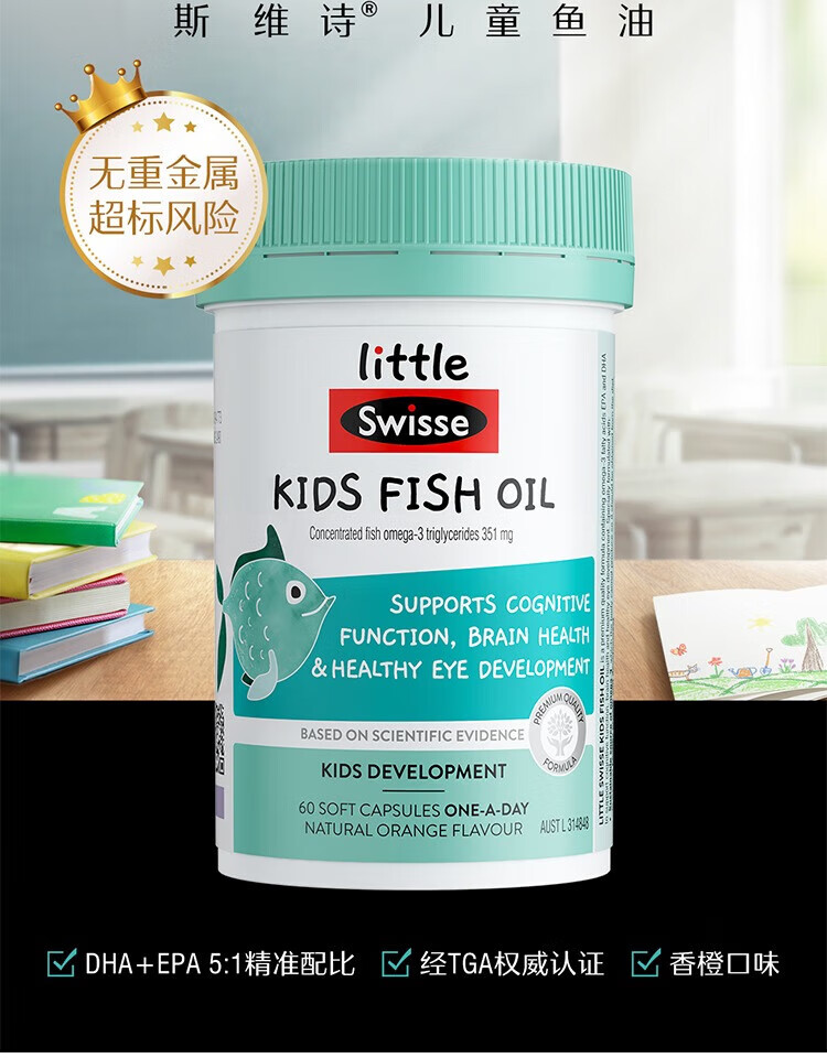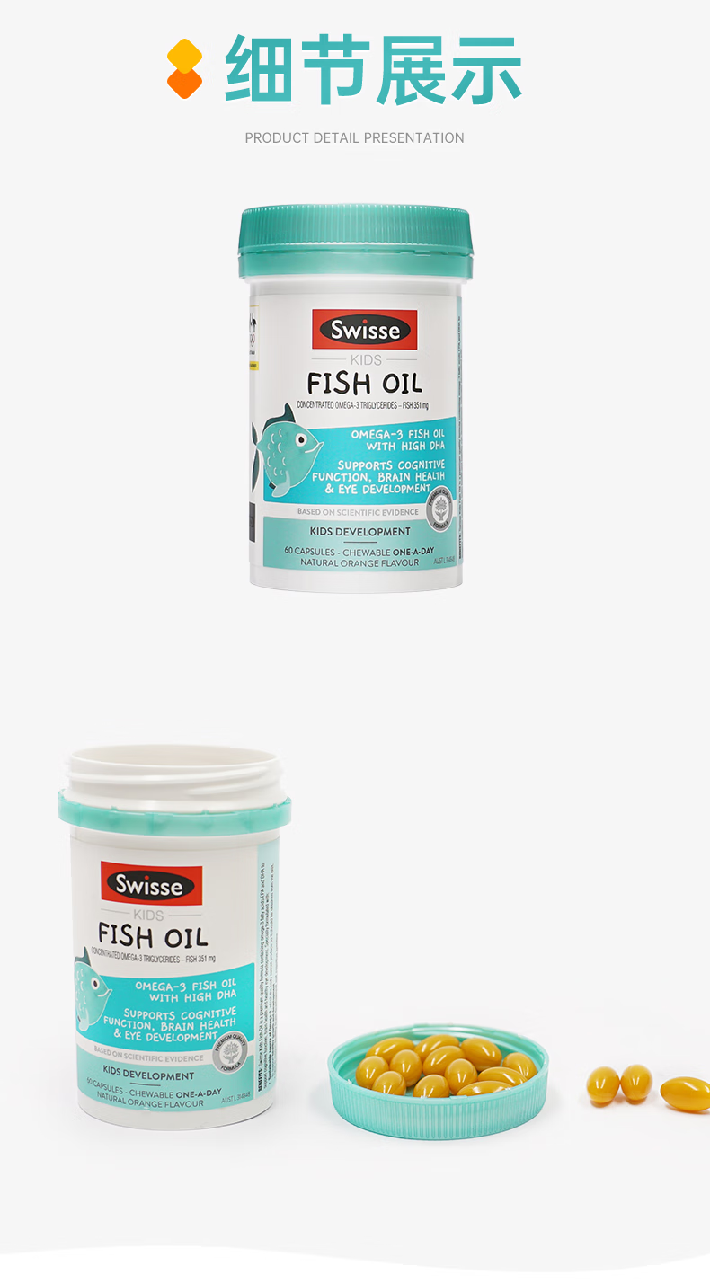 Swisse children's dha brain supplement, enhances memory and concentration, 6-12-18 years old, improves concentration, improves attention, lacks concentration, and is a high-level student pack, 60 capsules * 2 bottles
