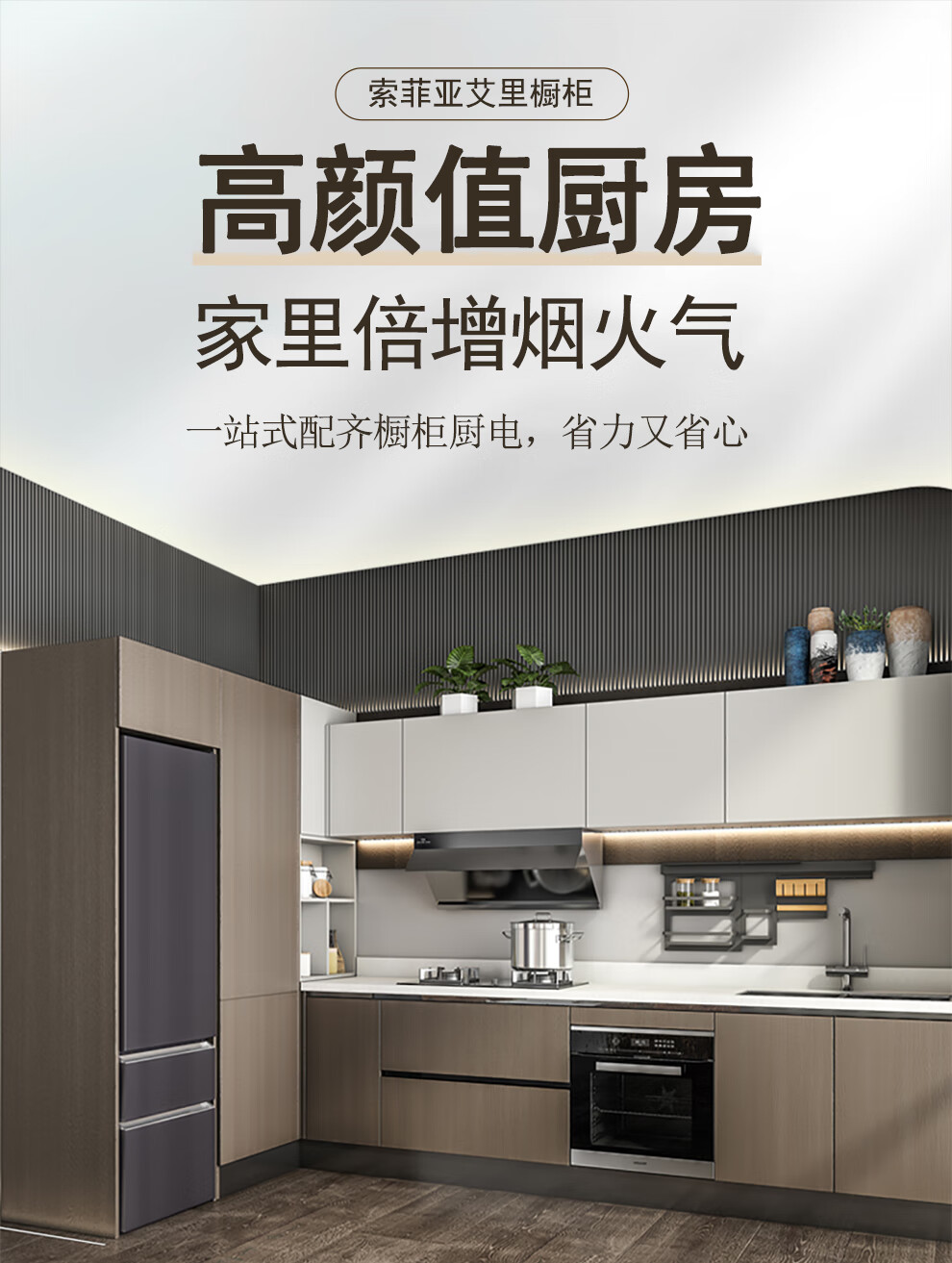 Sophia integrated cabinet customization Airi series modern simple L-shaped kitchen open kitchen kitchen cabinet customization gold