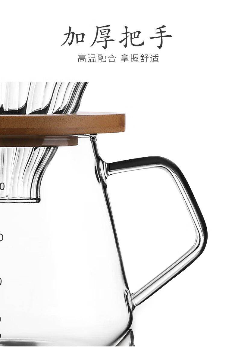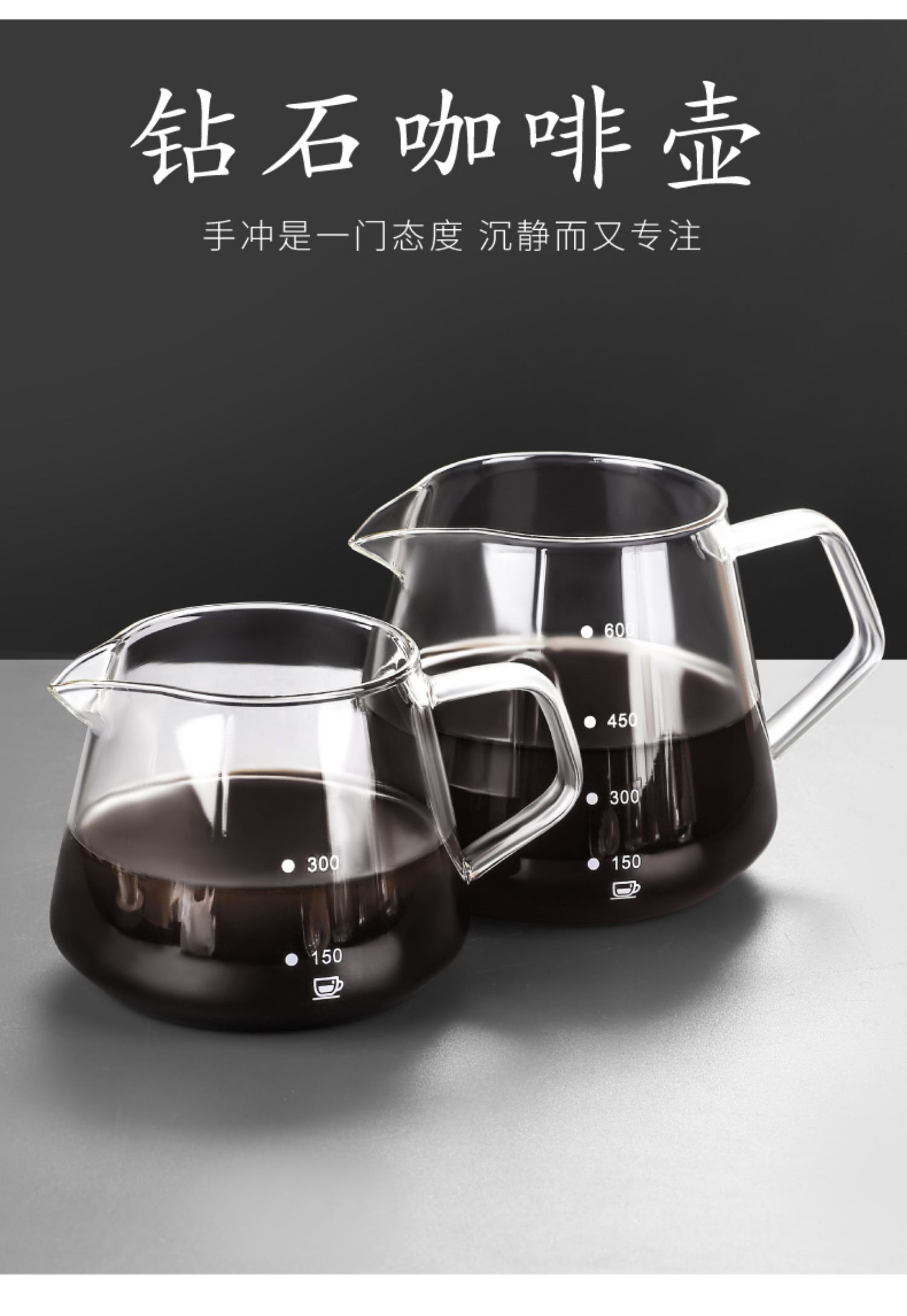 Coffee pot, hand brewed coffee filter cup, drip pot, glass sharing pot set, filter with graduated cold brew cup, American 600 diamond coffee pot with wooden filter holder, filter cup