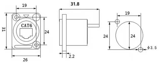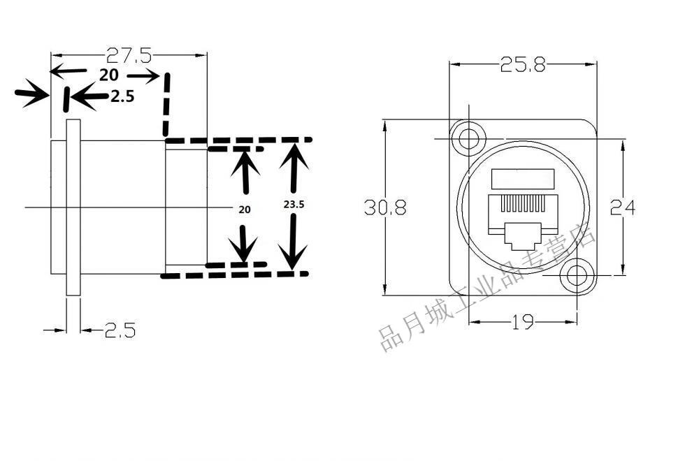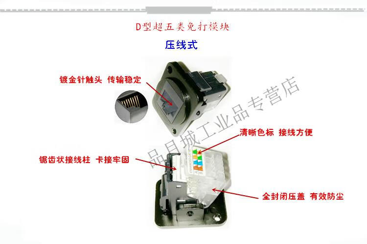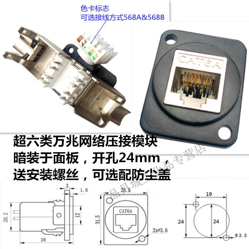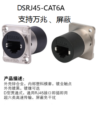 D-type panel fixed pass-through module RJ45 network cable data signal docking connector network interface female socket silver DS-RJ45-CAT6A super category six female socket