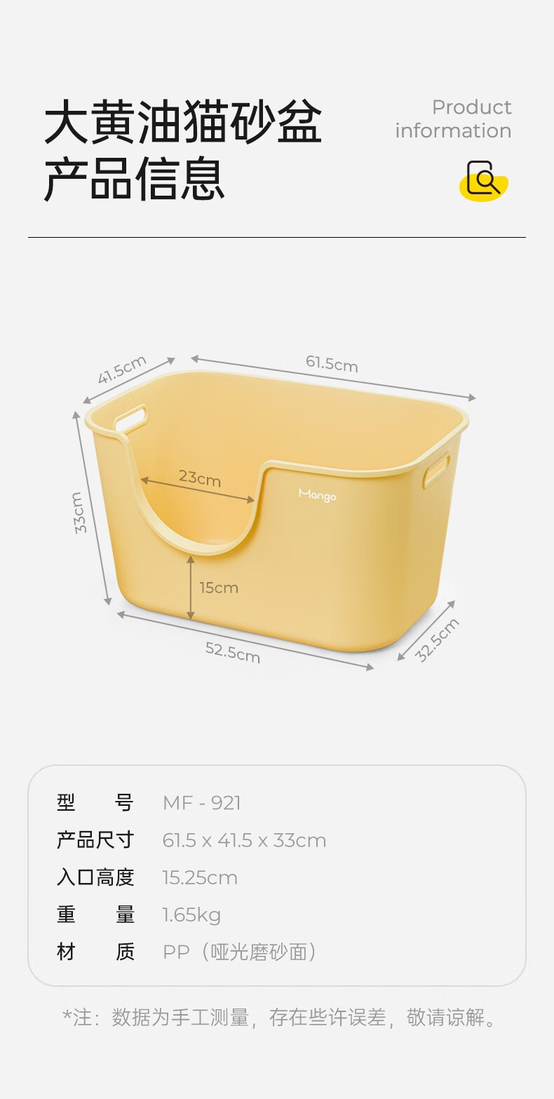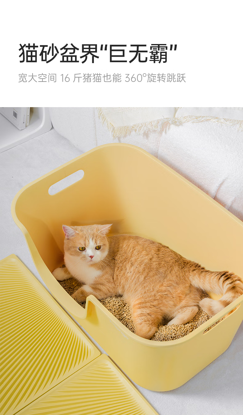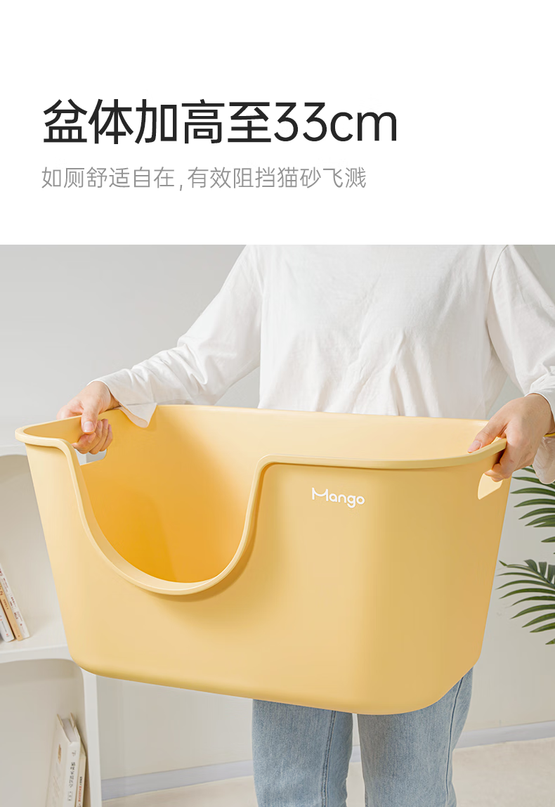 Mango pet large butter cat litter box extra large anti-splash cat toilet cat cat litter box cat poop large open cat litter box Mango yellow single basin