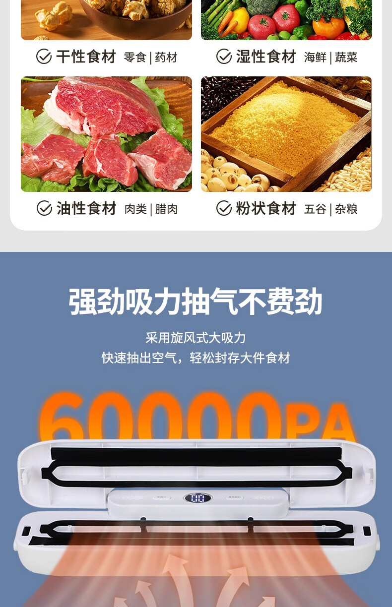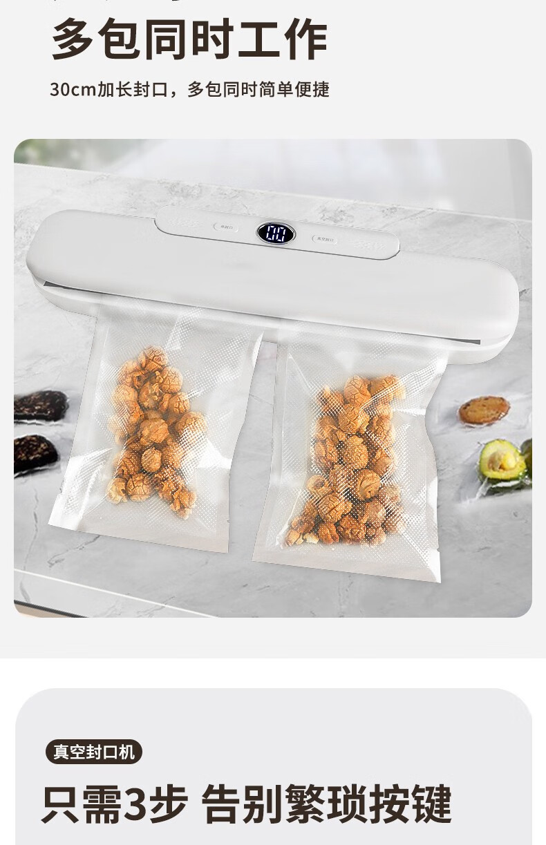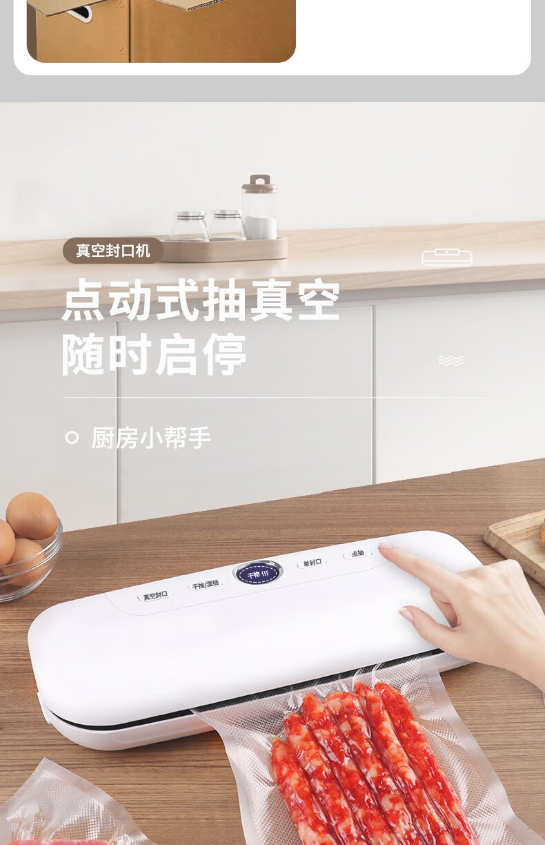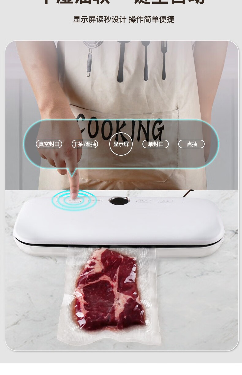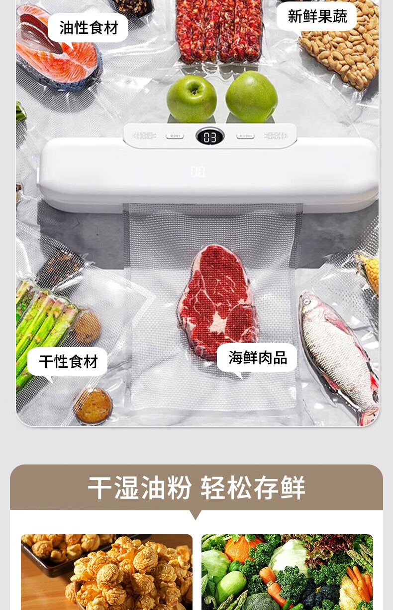Baijie vacuum sealing machine household commercial dry and wet dual-use fully automatic compression vacuum packaging vacuum food preservation machine plastic sealing machine bacon vacuum sealing LCD display wet and dry oil powder universal