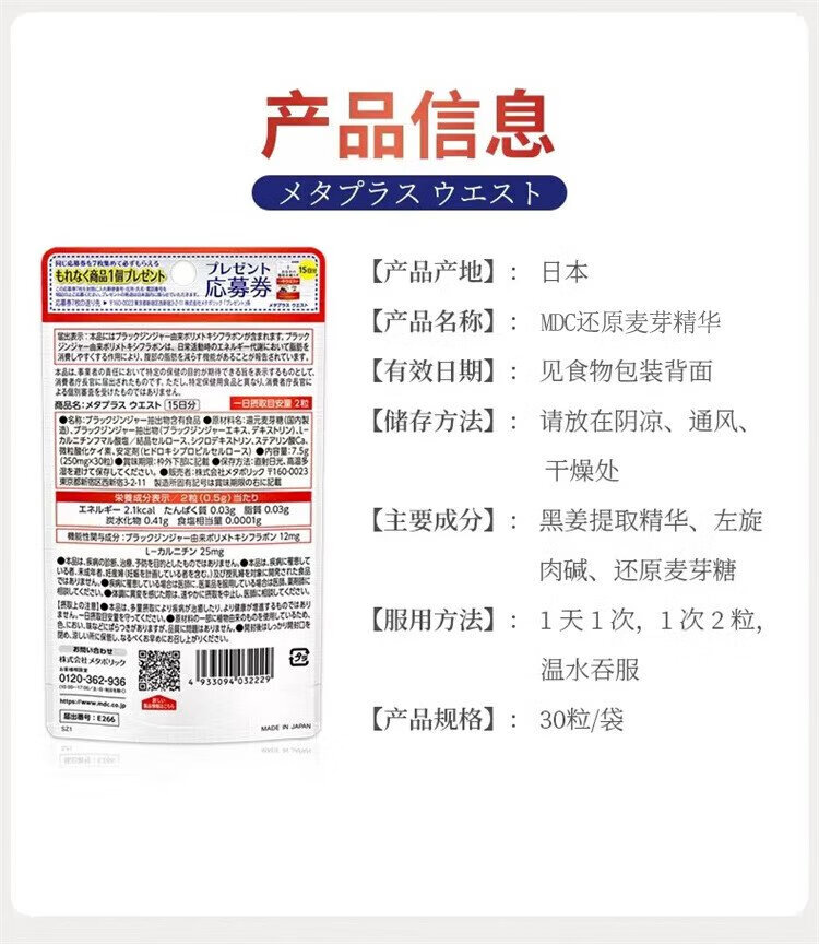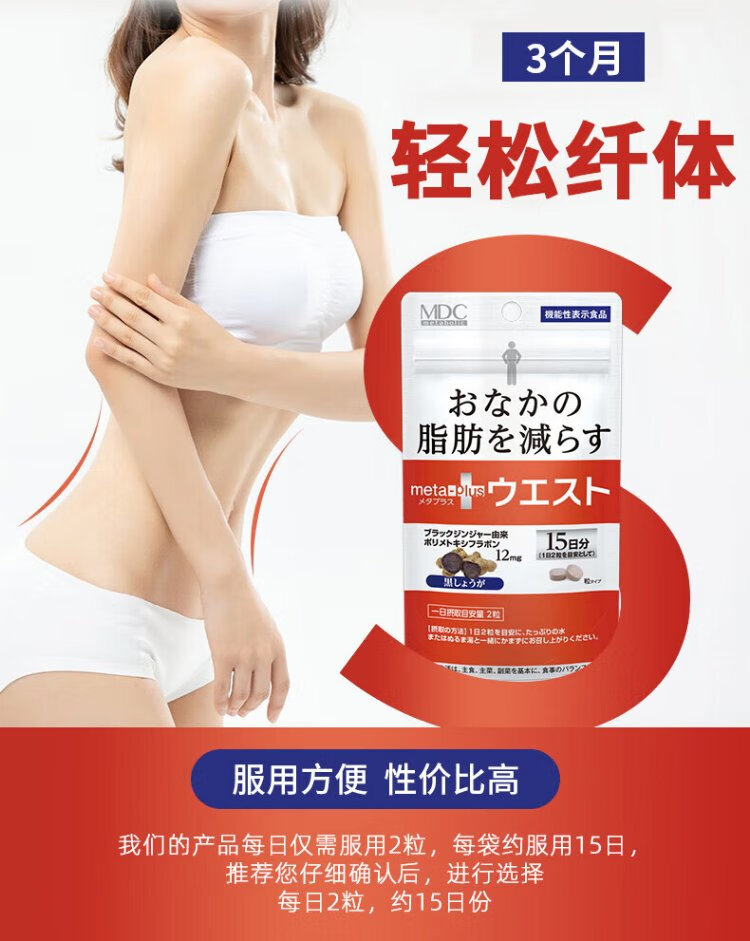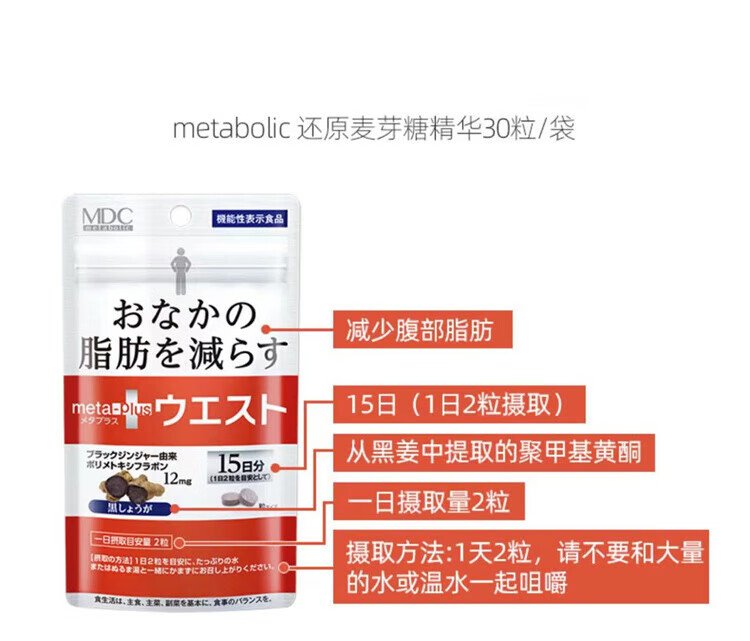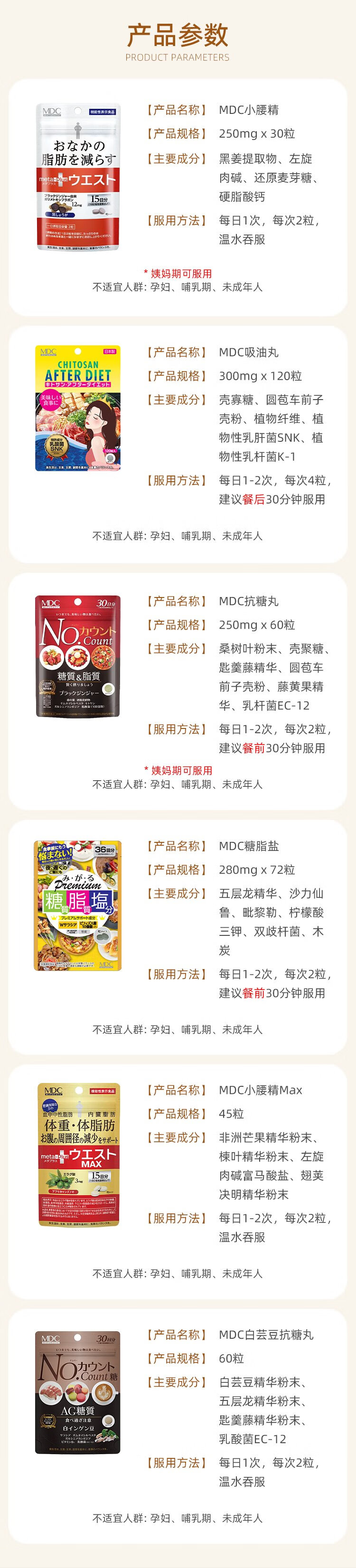 MDC Small Waist Essence Slimming Pills enzyme contains L-carnitine, sugar and oil absorption blocker oil sugar carbohydrate imported from Japan, Small Waist Essence 30 capsules*1 bag
