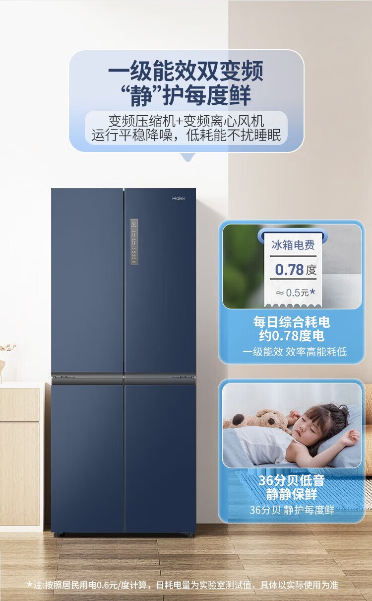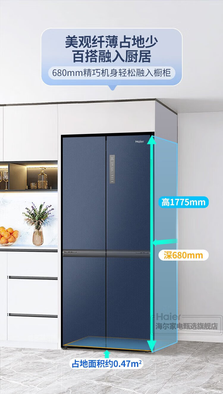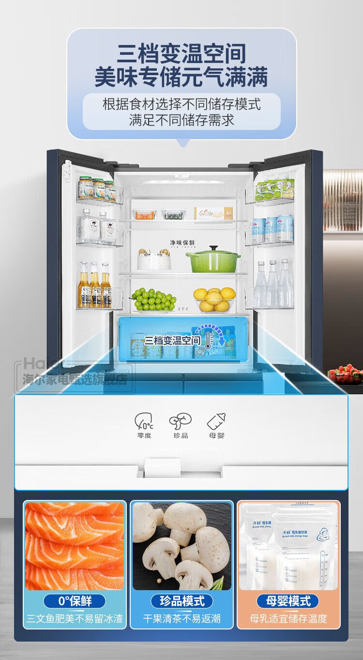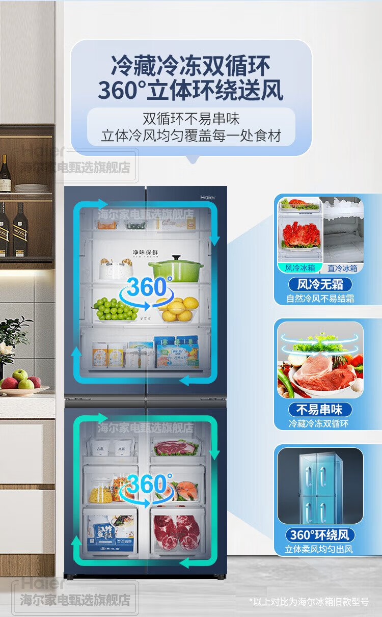 Haier refrigerator four-door 406-liter cross-door frequency conversion first-class energy efficiency air-cooled frost-free household large-capacity double-door refrigerator slim box丨Pure odor and freshness丨Mother and baby space