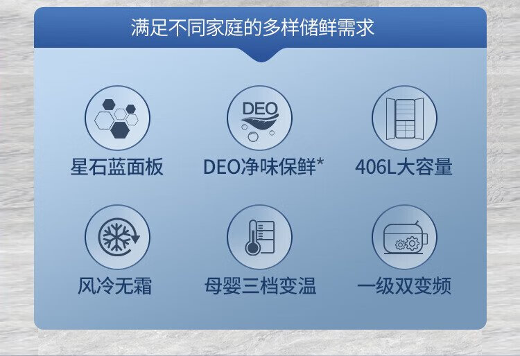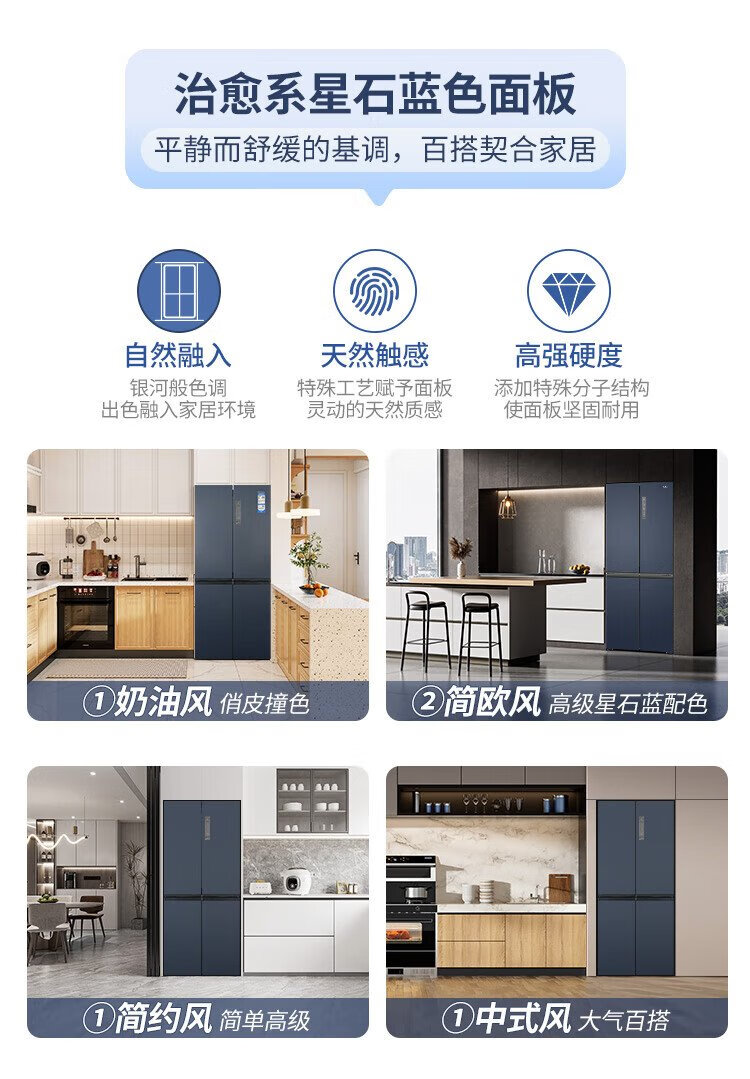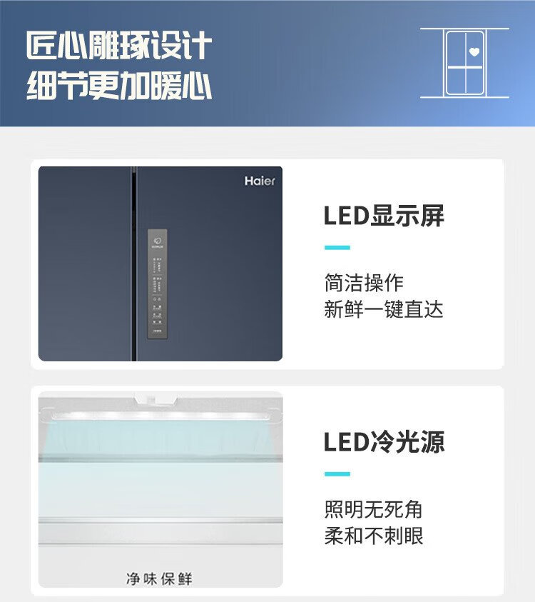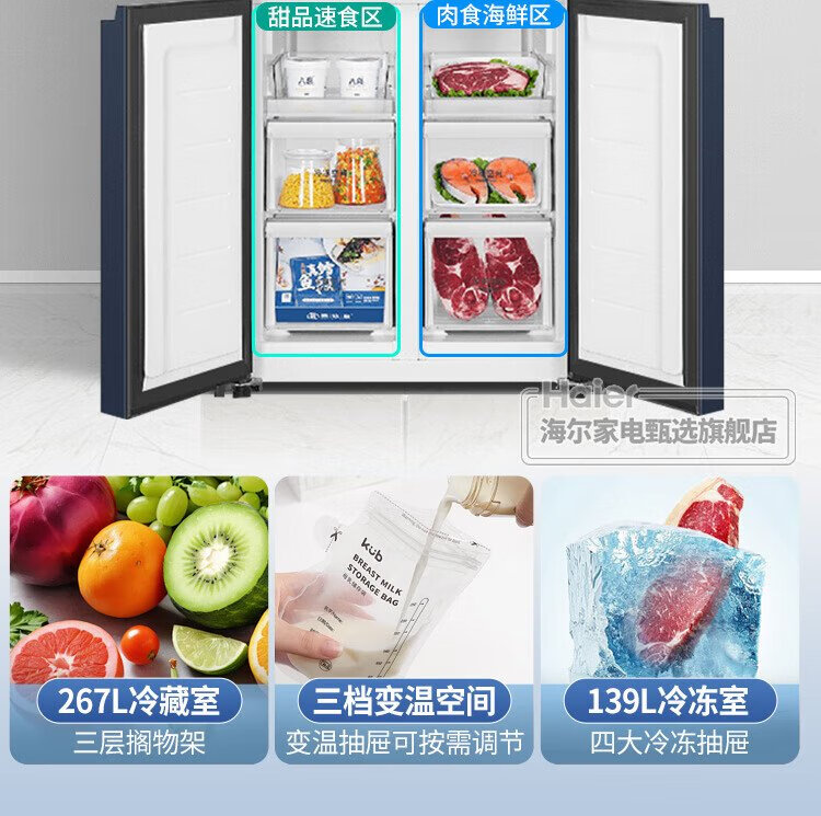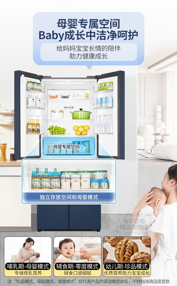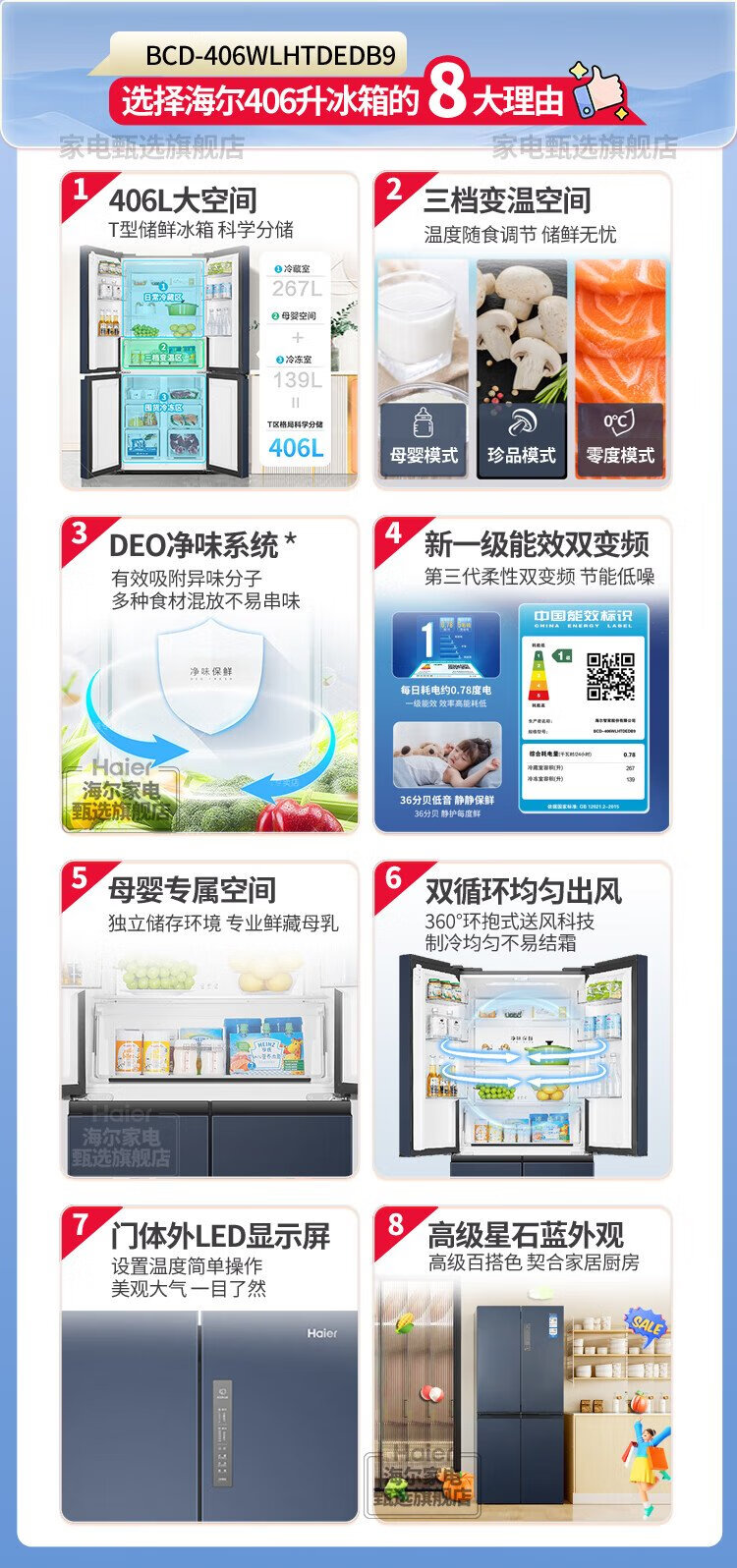 Haier refrigerator four-door 406-liter cross-door frequency conversion first-class energy efficiency air-cooled frost-free household large-capacity double-door refrigerator slim box丨Pure odor and freshness丨Mother and baby space