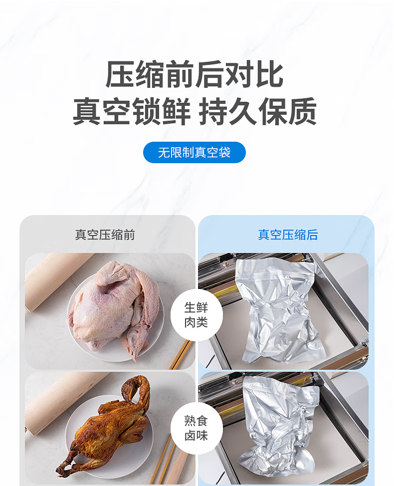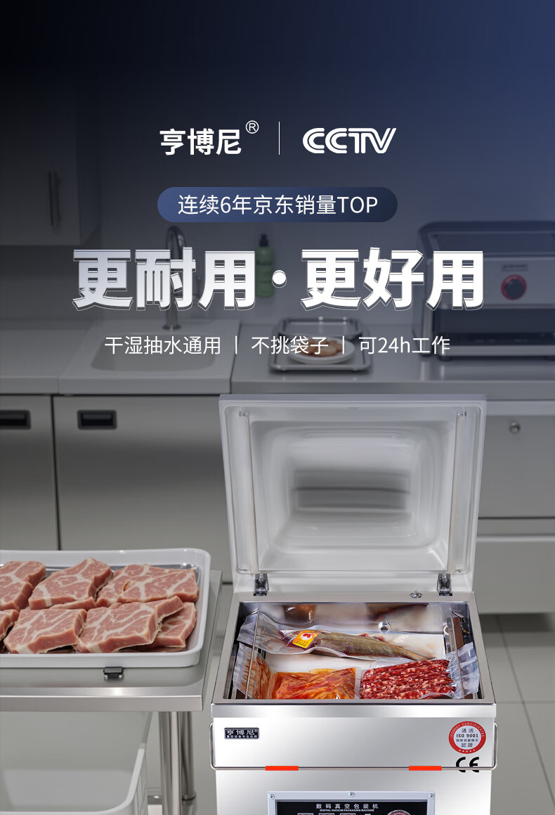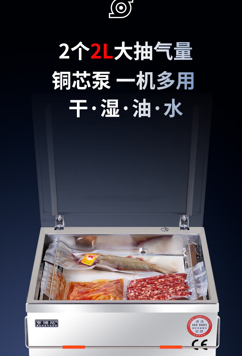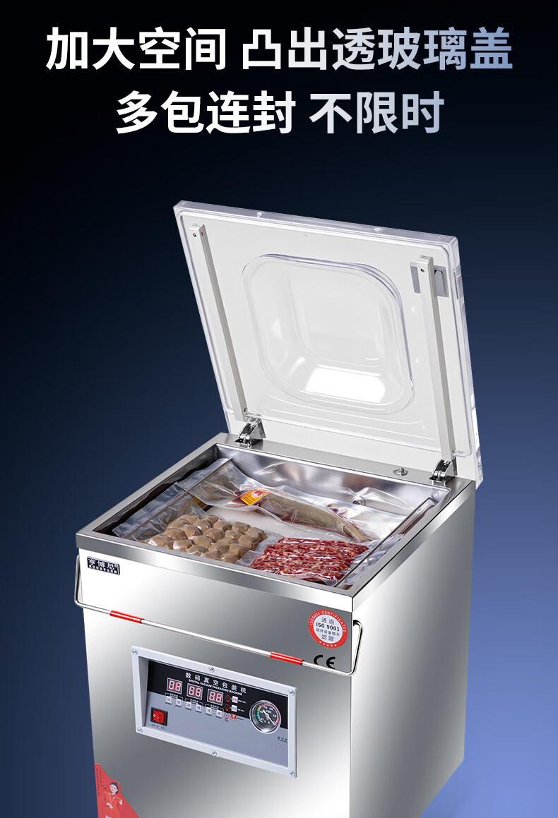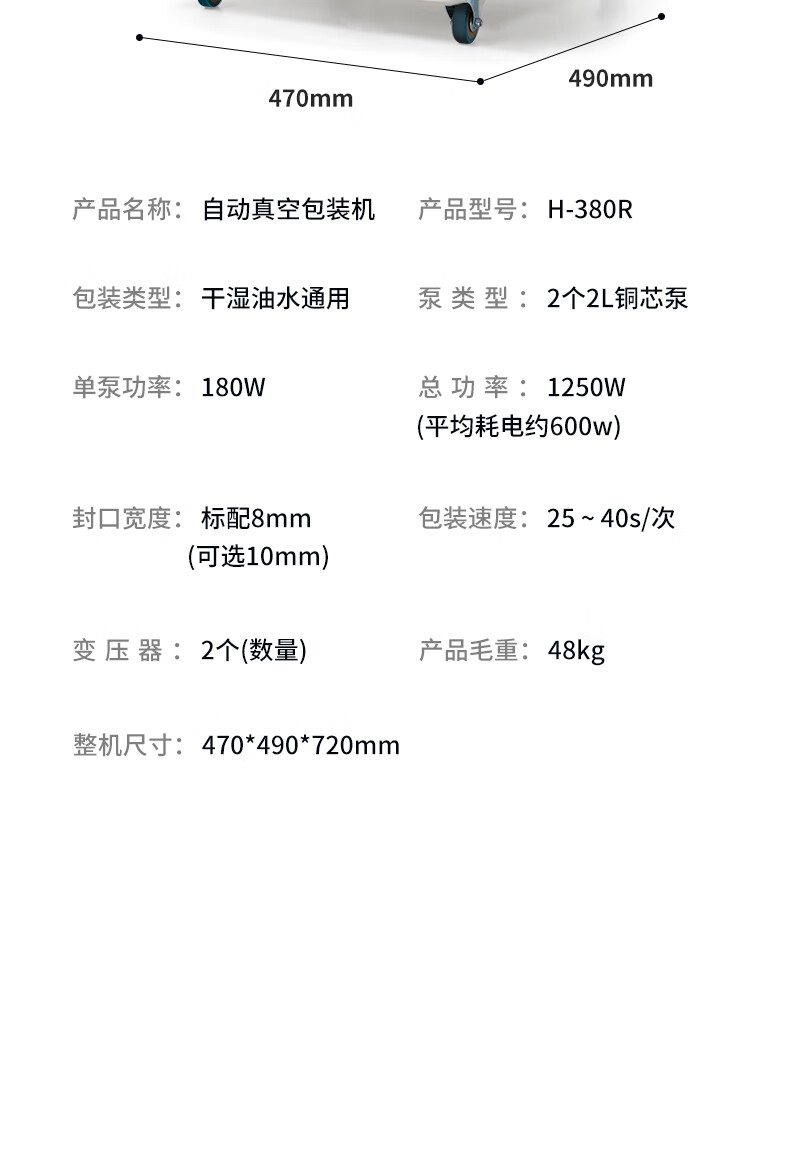 HENGBONI vacuum packaging machine vacuum machine food vacuum sealing machine fully automatic large commercial household dry and wet H-380B (dual pump double transformer flat cover)