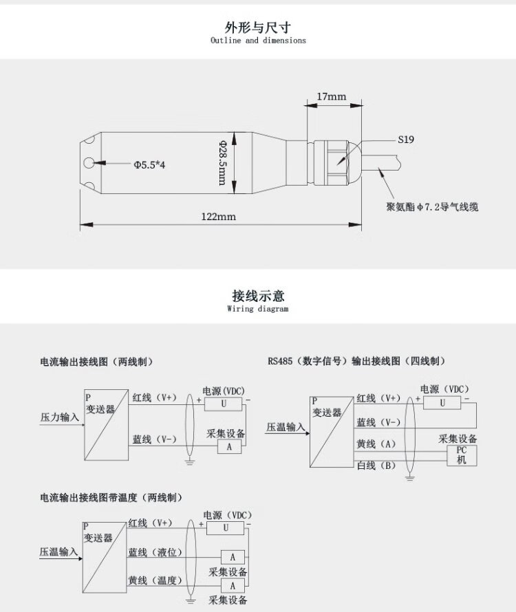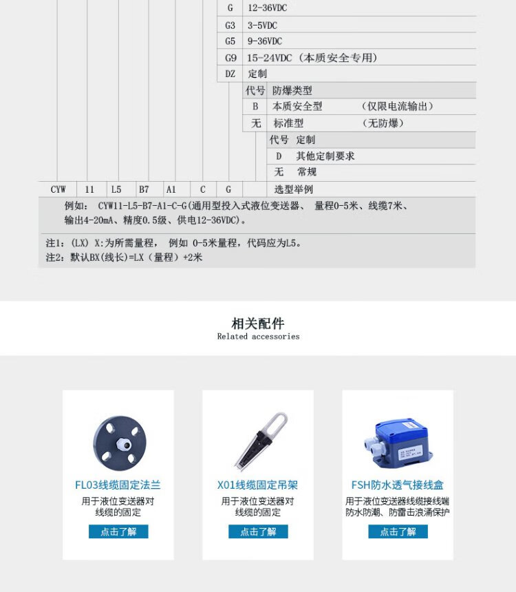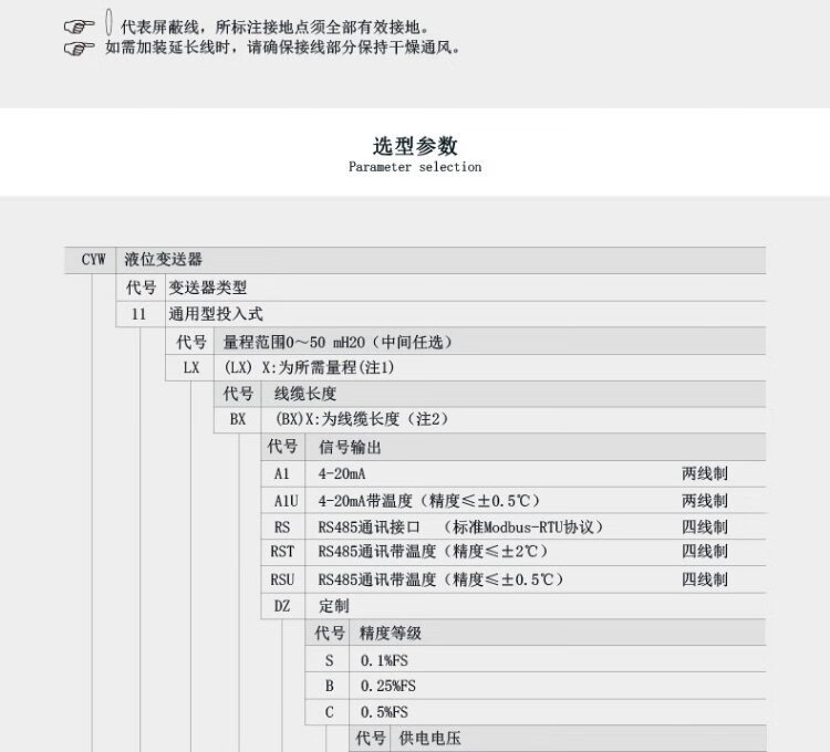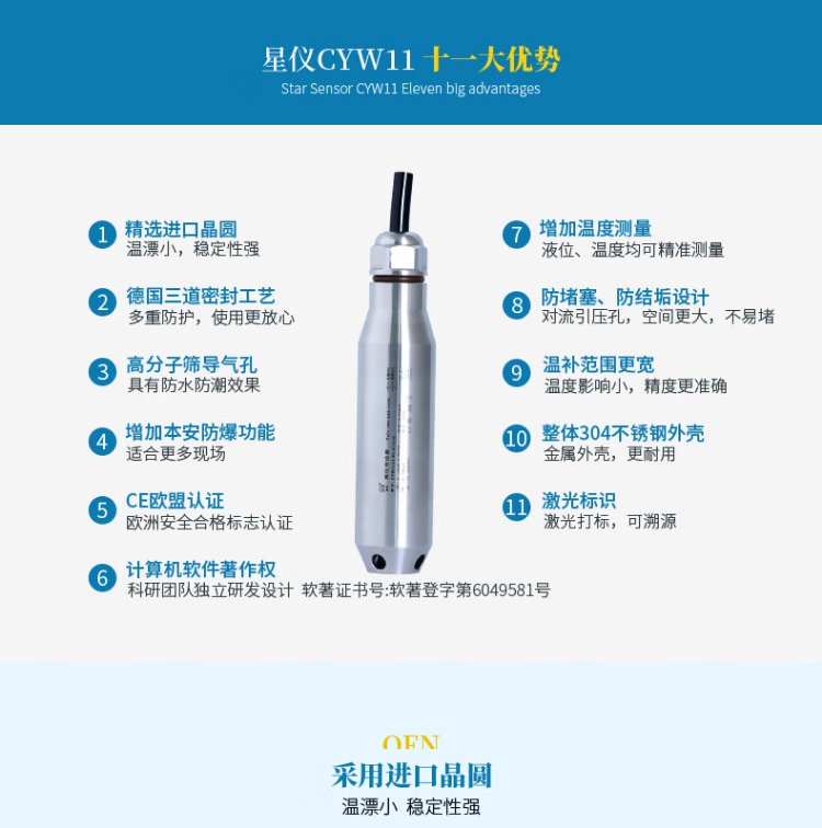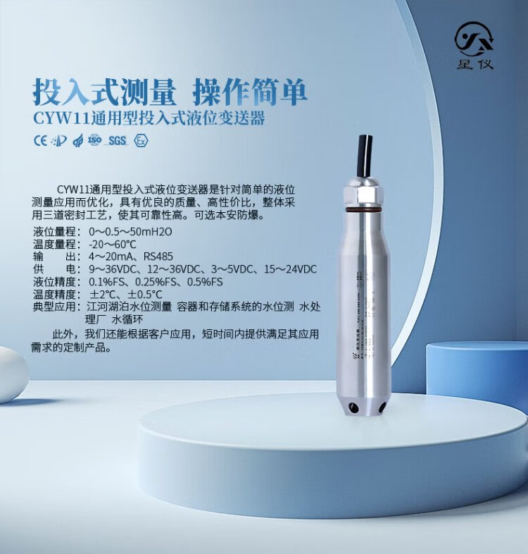 Liquid level sensor input type CYW11 water level meter 4-20ma liquid level meter RS485 star instrument liquid level transmitter conventional 5 meter range 7 meter line