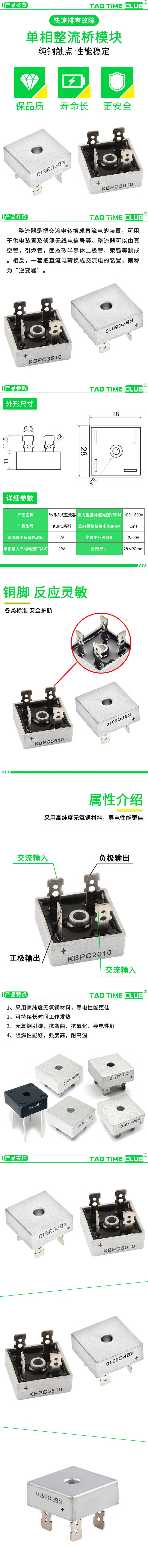 Single-phase rectifier bridge module AC to DC 12v24v220 charger rectifier bridge kbpc3510/5010 KBPC2010