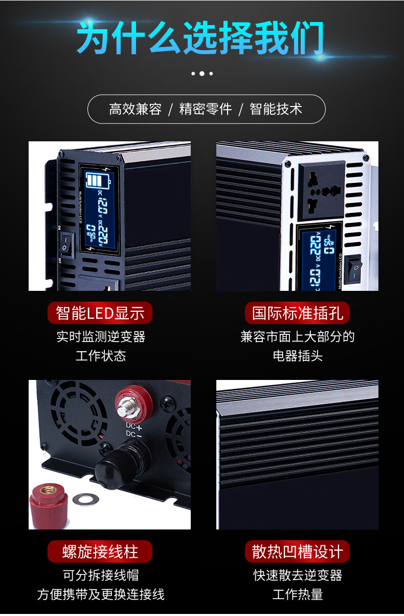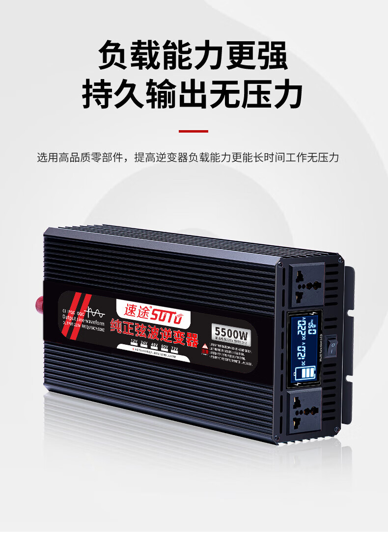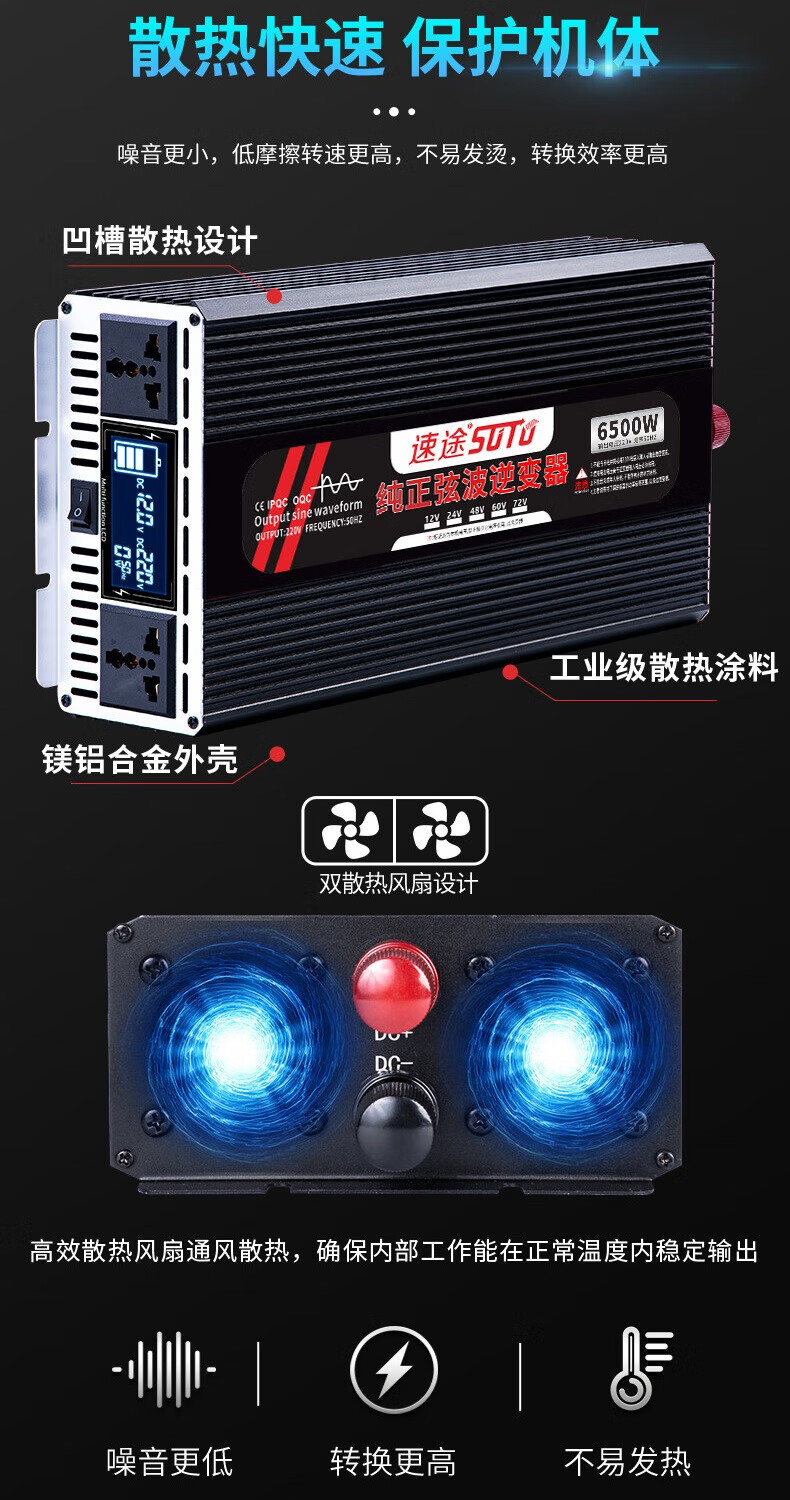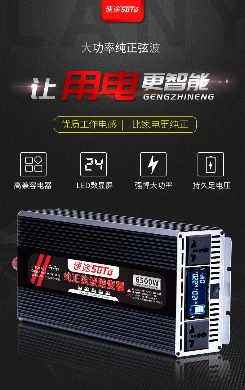Sutu pure sine wave inverter to 220v high power car home converter electric car truck power booster pure sine wave 7500w+LCD display+dual socket 12v to 220v