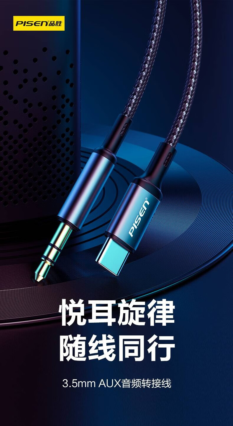 PISEN Type-C to 3.5mm audio cable Apple headphone adapter mobile phone iPhone1516/1715 car AUX speaker suitable for Huawei Xiaomi tpyec connection converter Apple 15-17 universal Type-C to 3.5 audio cable 1 meter