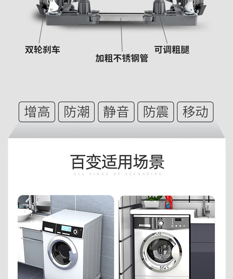 Shield Elephant drum washing machine base frame removable universal wheel storage rack universal refrigerator bracket sub-bracket shock-proof foot pads luxury double-tube upgraded model 12 suction cup feet