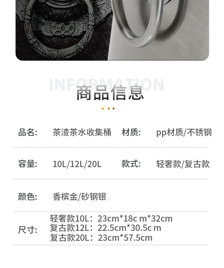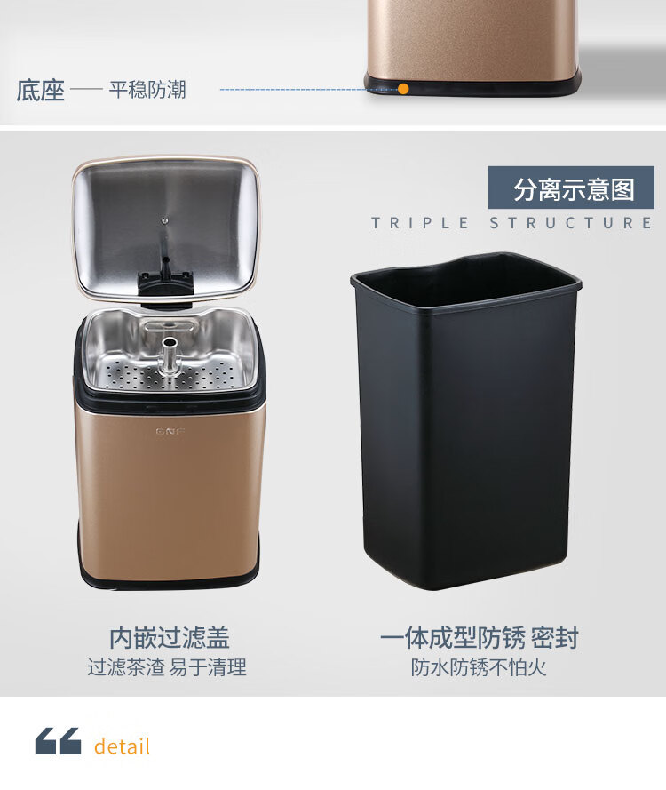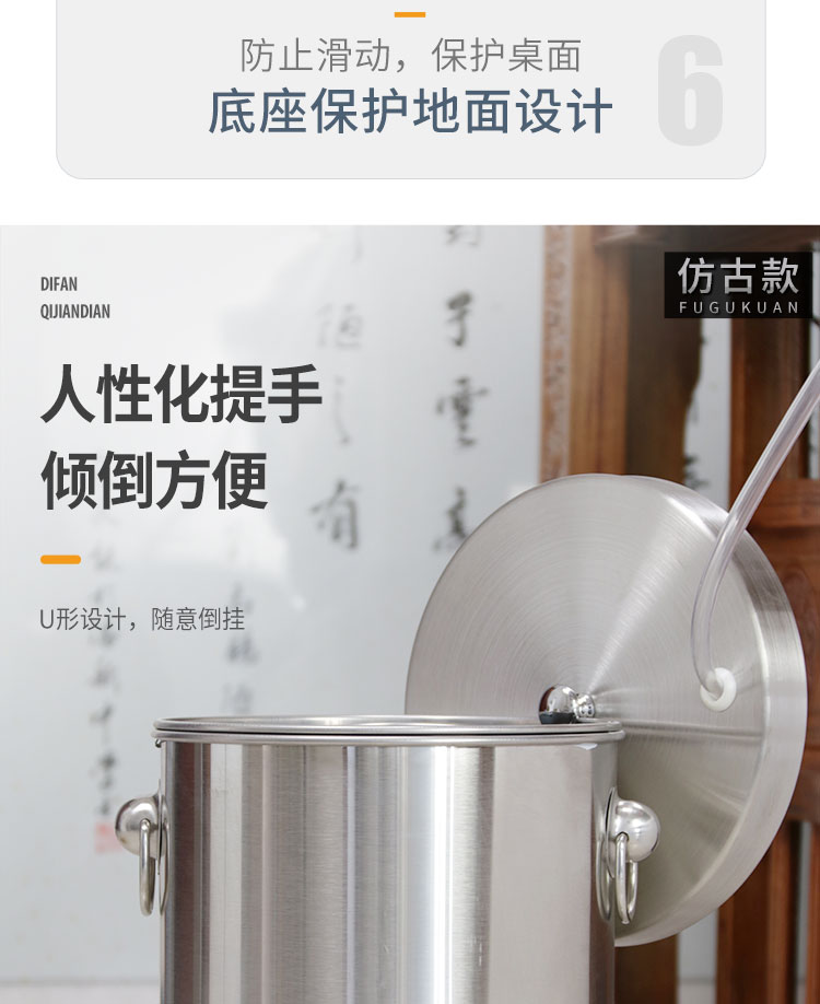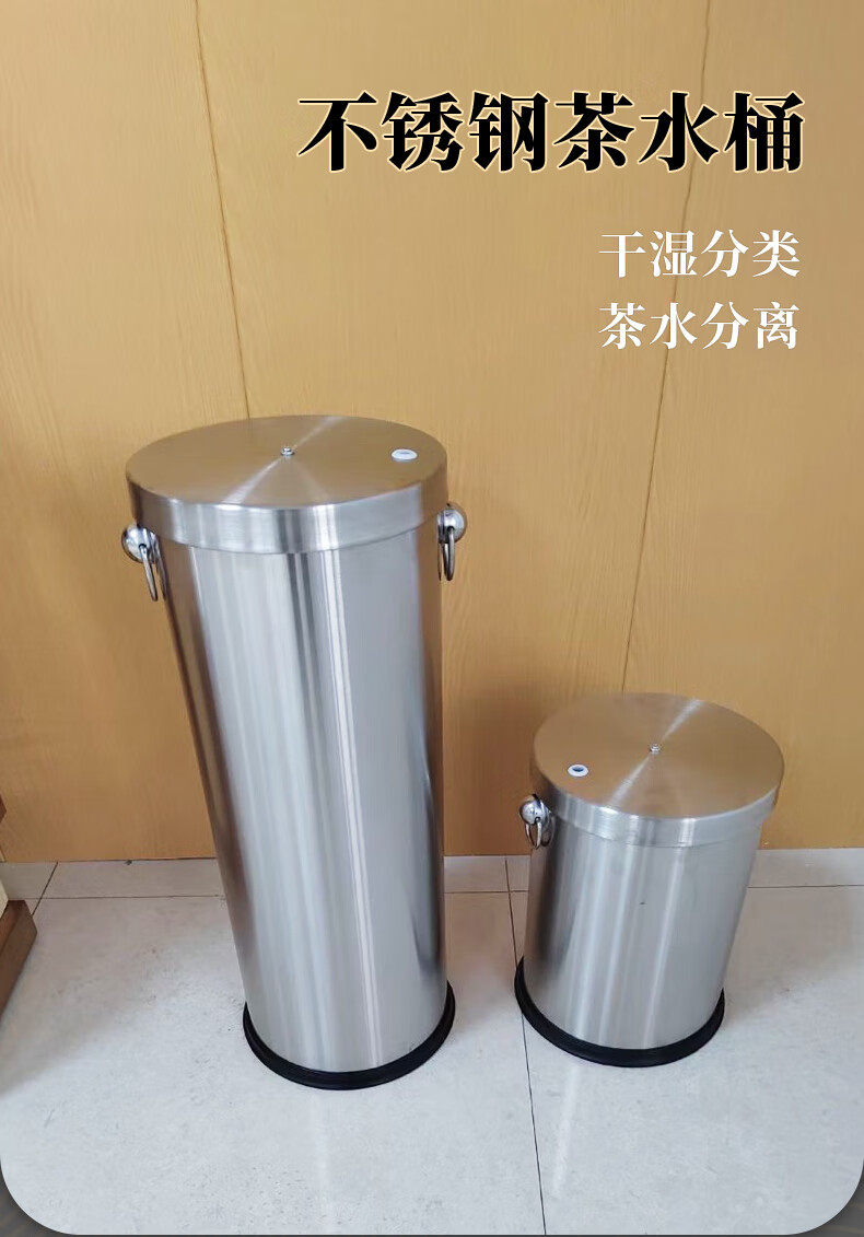 Difan tea bucket tea trash can stainless steel thickened filter residue drainage bucket with handle and lid office commercial wholesale 30L sand steel silver tea bucket open style