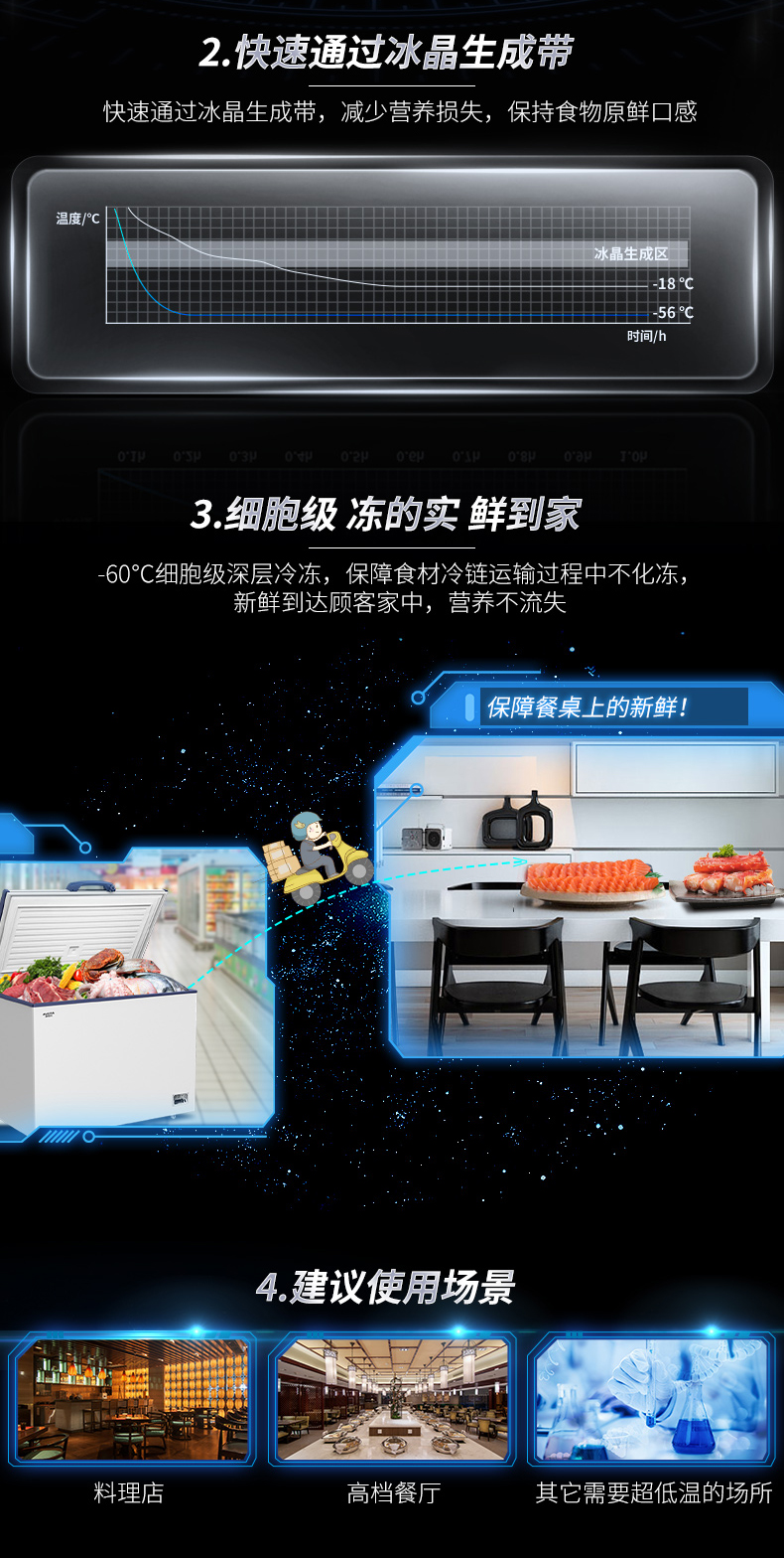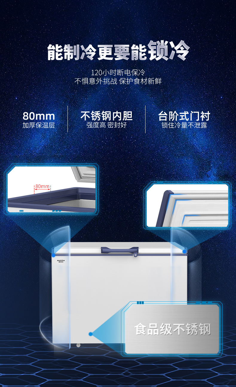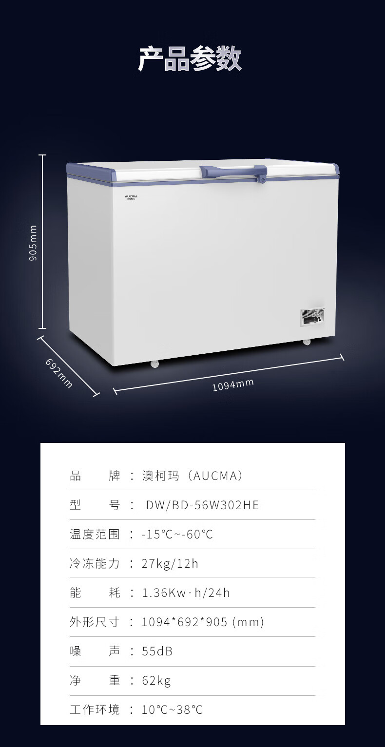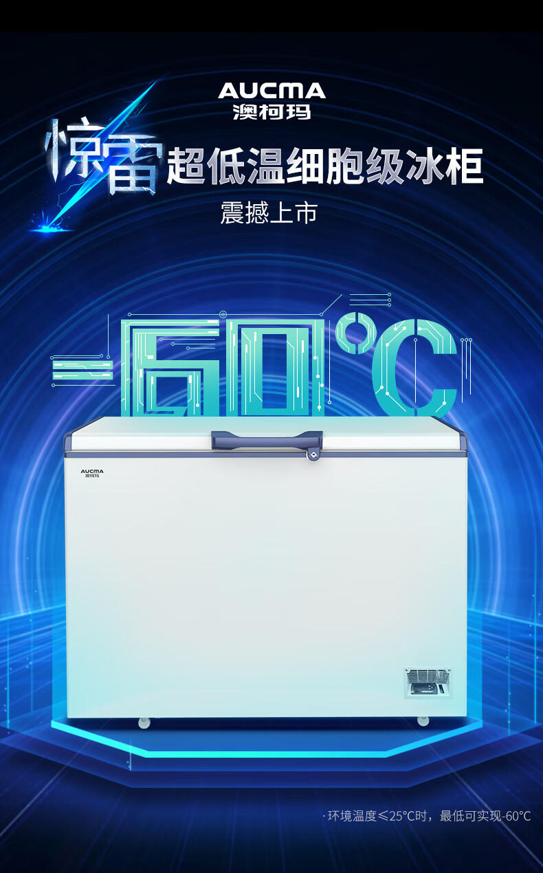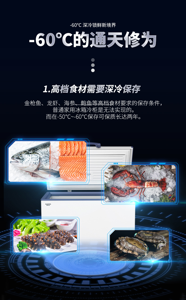 Aucma subzero -40-60 degrees deep-freezing quick-frozen low-temperature large-capacity freezer household high-end fresh storage commercial large freezer quick-frozen seafood salmon tuna DW/BD-60W192HE