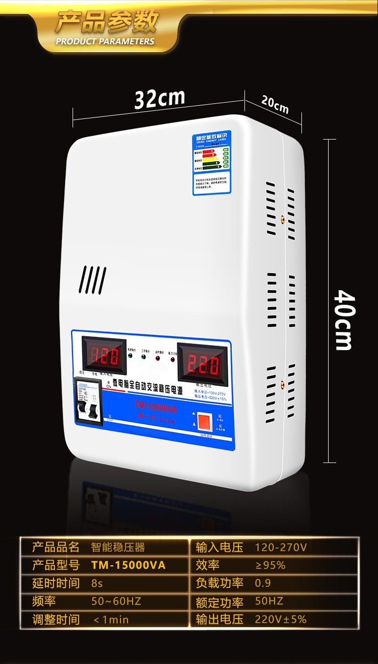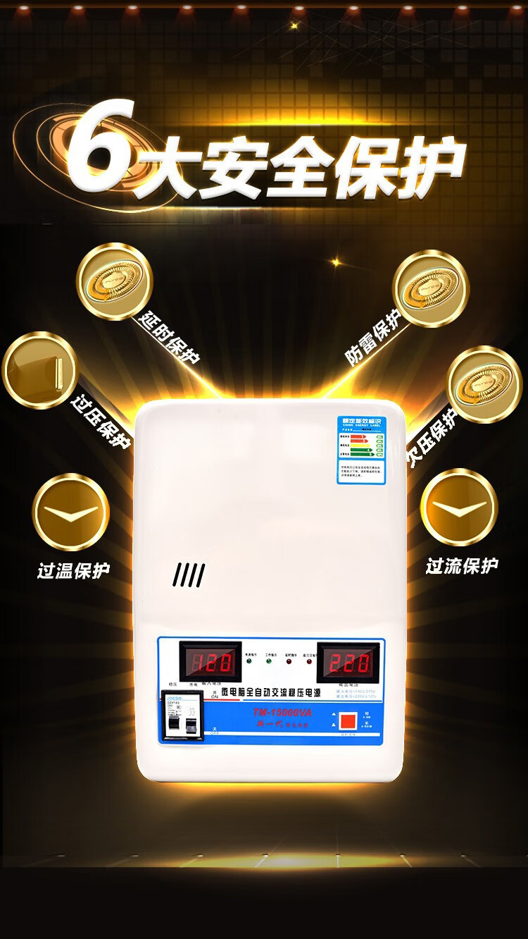 Boshide voltage regulator 220v air conditioning voltage regulator fully automatic 15000w household single-phase AC high power low voltage voltage regulator 6800W (with screws and brackets)