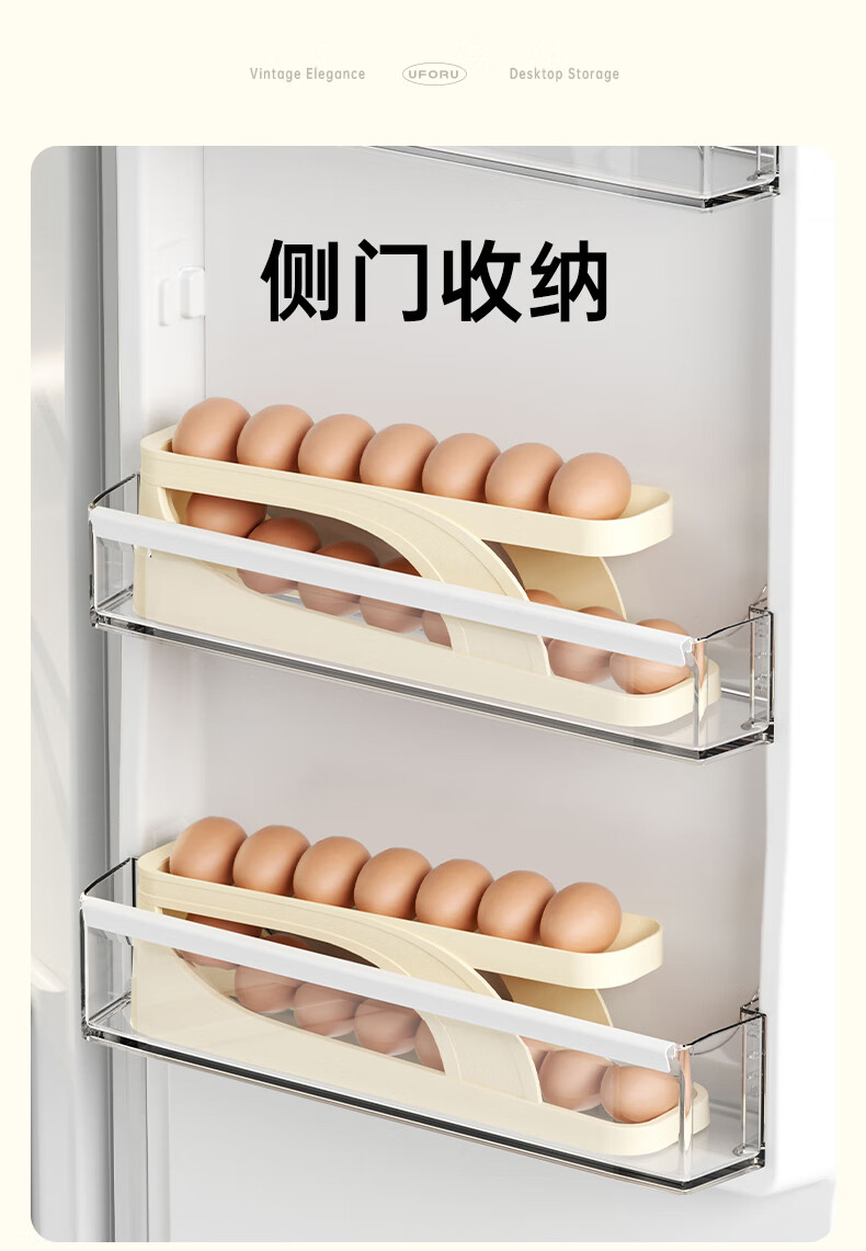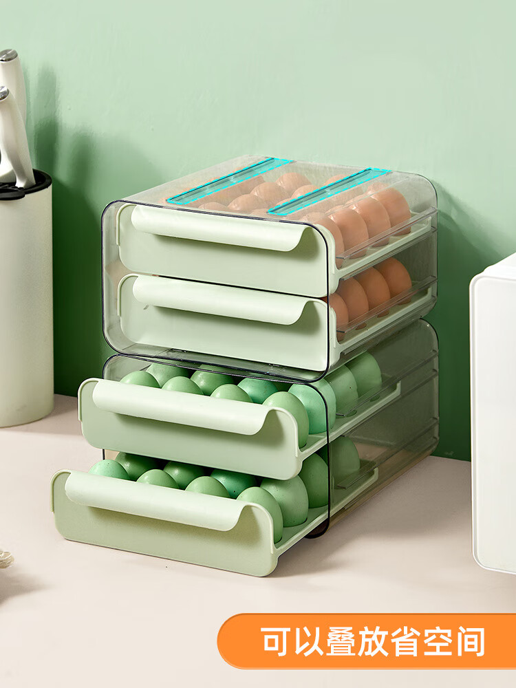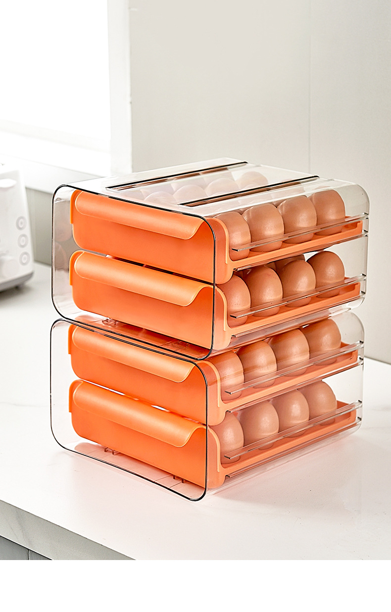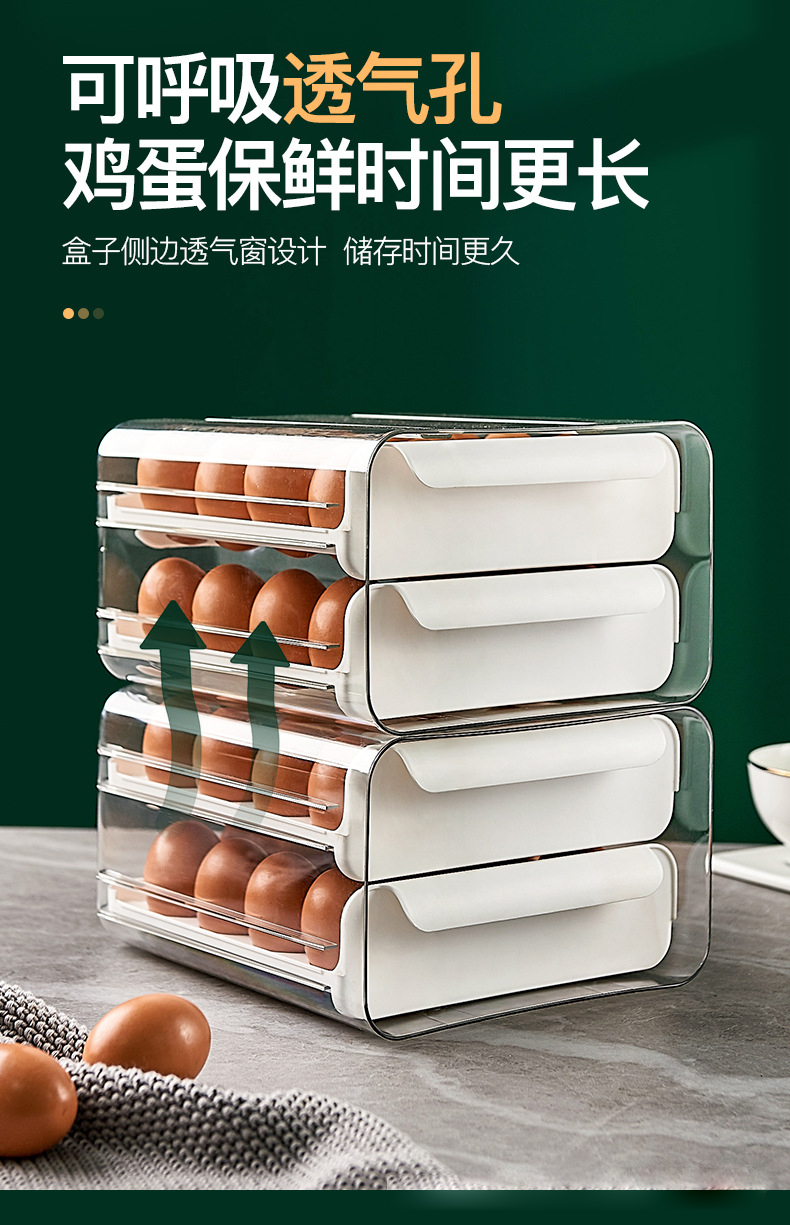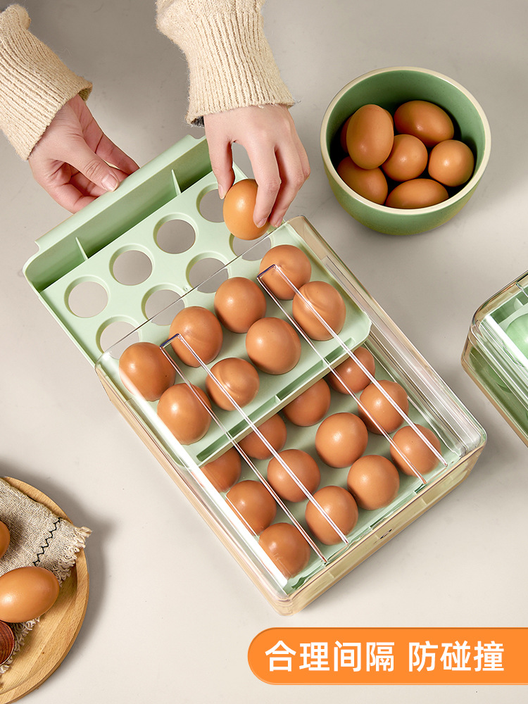 Muzhichu Side Door Egg Box Shelf Refrigerator Fresh Box Storage Box Rolling Automatic Refill Double-Layer Egg Tray Compartment 2 Layers 32 Compartments - Light Lotus Gray