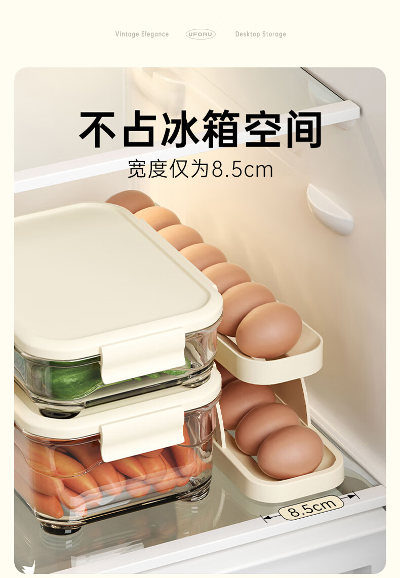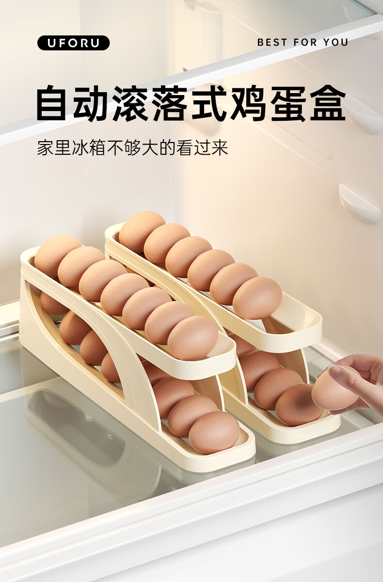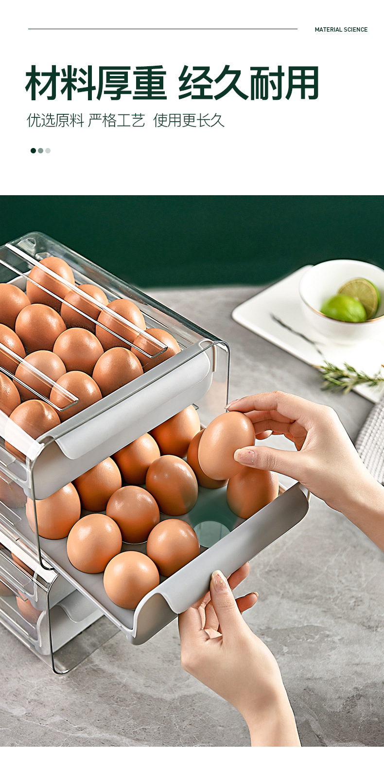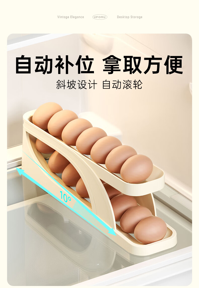 Muzhichu Side Door Egg Box Shelf Refrigerator Fresh Box Storage Box Rolling Automatic Refill Double-Layer Egg Tray Compartment 2 Layers 32 Compartments - Light Lotus Gray