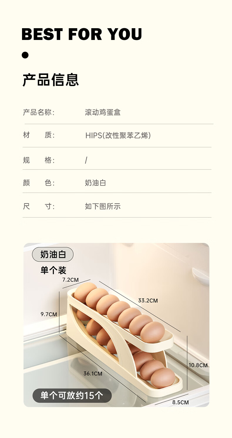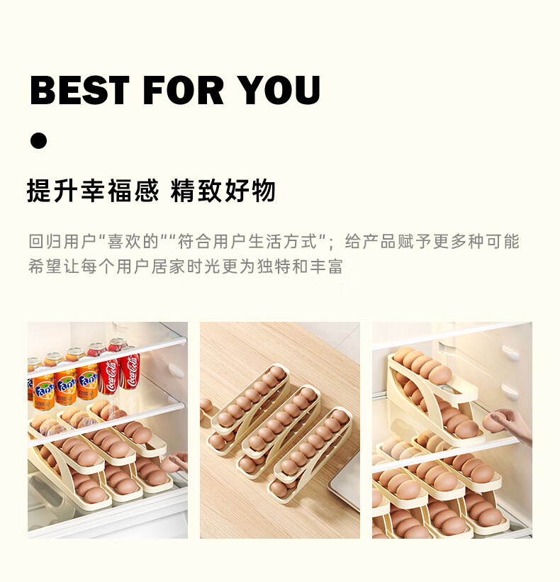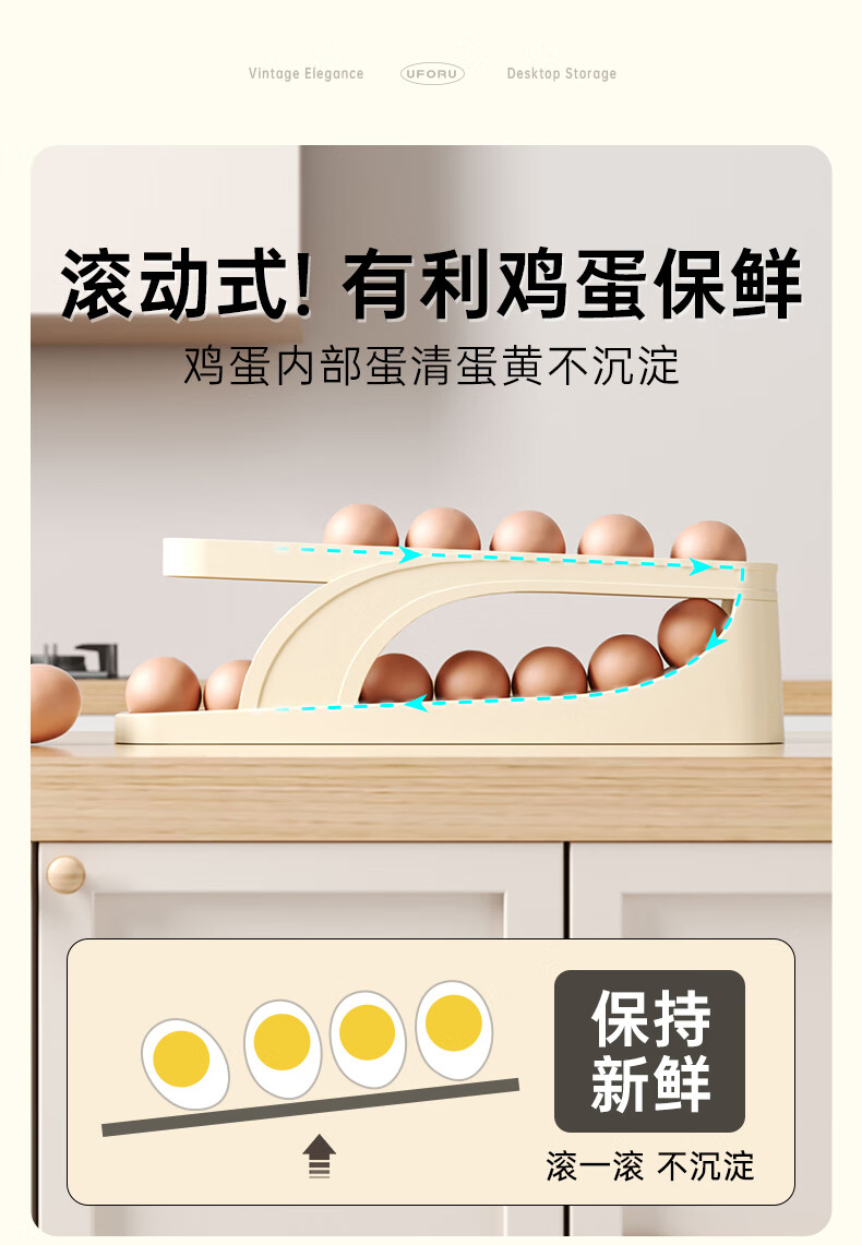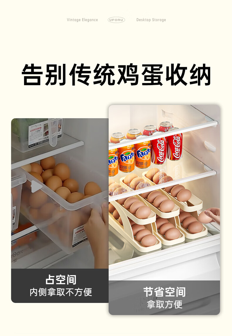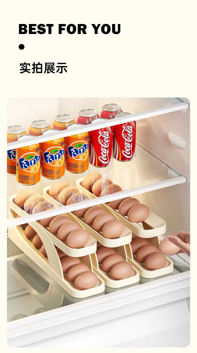 Muzhichu Side Door Egg Box Shelf Refrigerator Fresh Box Storage Box Rolling Automatic Refill Double-Layer Egg Tray Compartment 2 Layers 32 Compartments - Light Lotus Gray