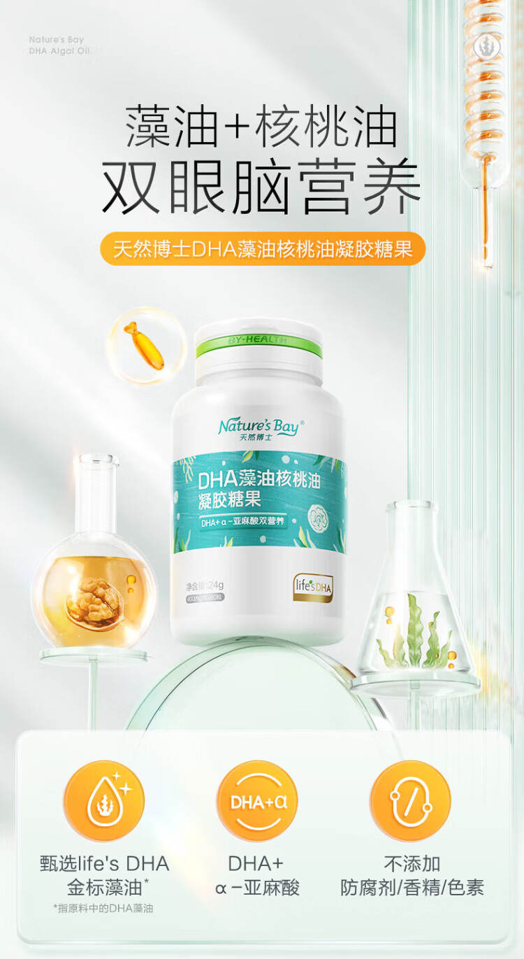Natural Dr. DHA algae oil for infants, pregnant women, children, adults, edible algae oil over 0 years old, new year's gift, upgraded dual-nutrient algae oil, 60 capsules * 3 bottles, 18 capsules free, 198 capsules in total
