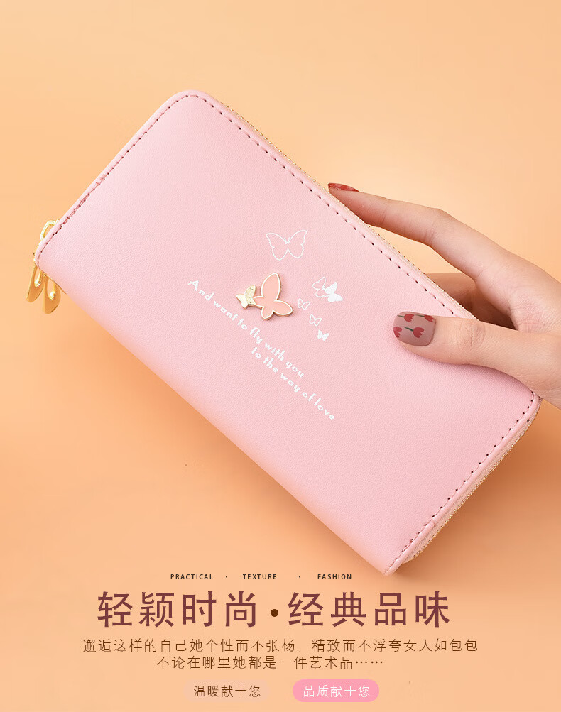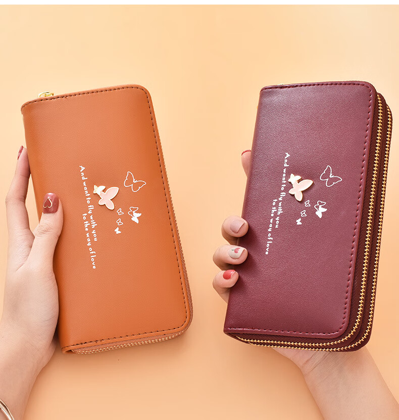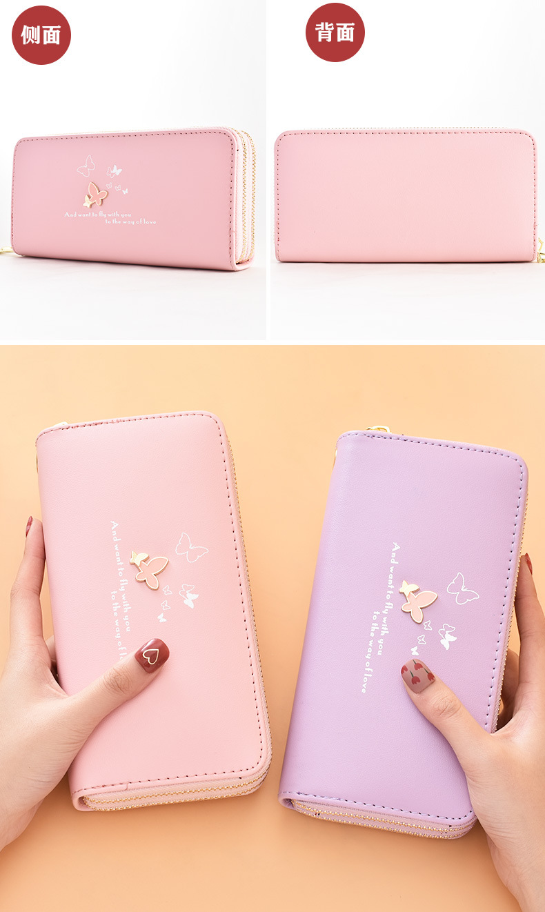 Wallet Women's Long Style 2022 New Fashion Wrist Clutch Cartoon Butterfly Double Zipper Large Capacity Mobile Phone Bag Purple