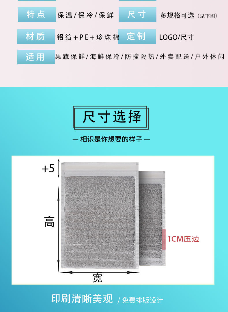 Zuimi (ZUIMI) 100 takeaway thermal bags aluminum foil ice cream cold storage catering thermal bags fresh insulation bags width 20 height 25 with glue 100 pieces