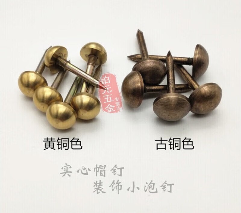 SDFFKOS Antique Brass Cap Nails Round Nails Copper Solid Rivets Round Head Nails Small Bubble Nails Decorative Door Nails Sofa Nails Diameter 0.8 cm Bronze 10 pcs
