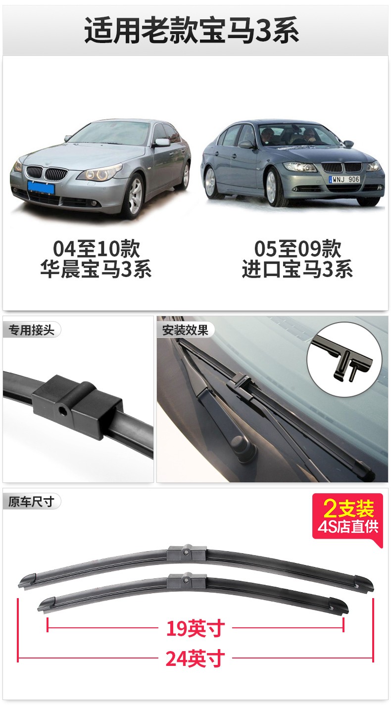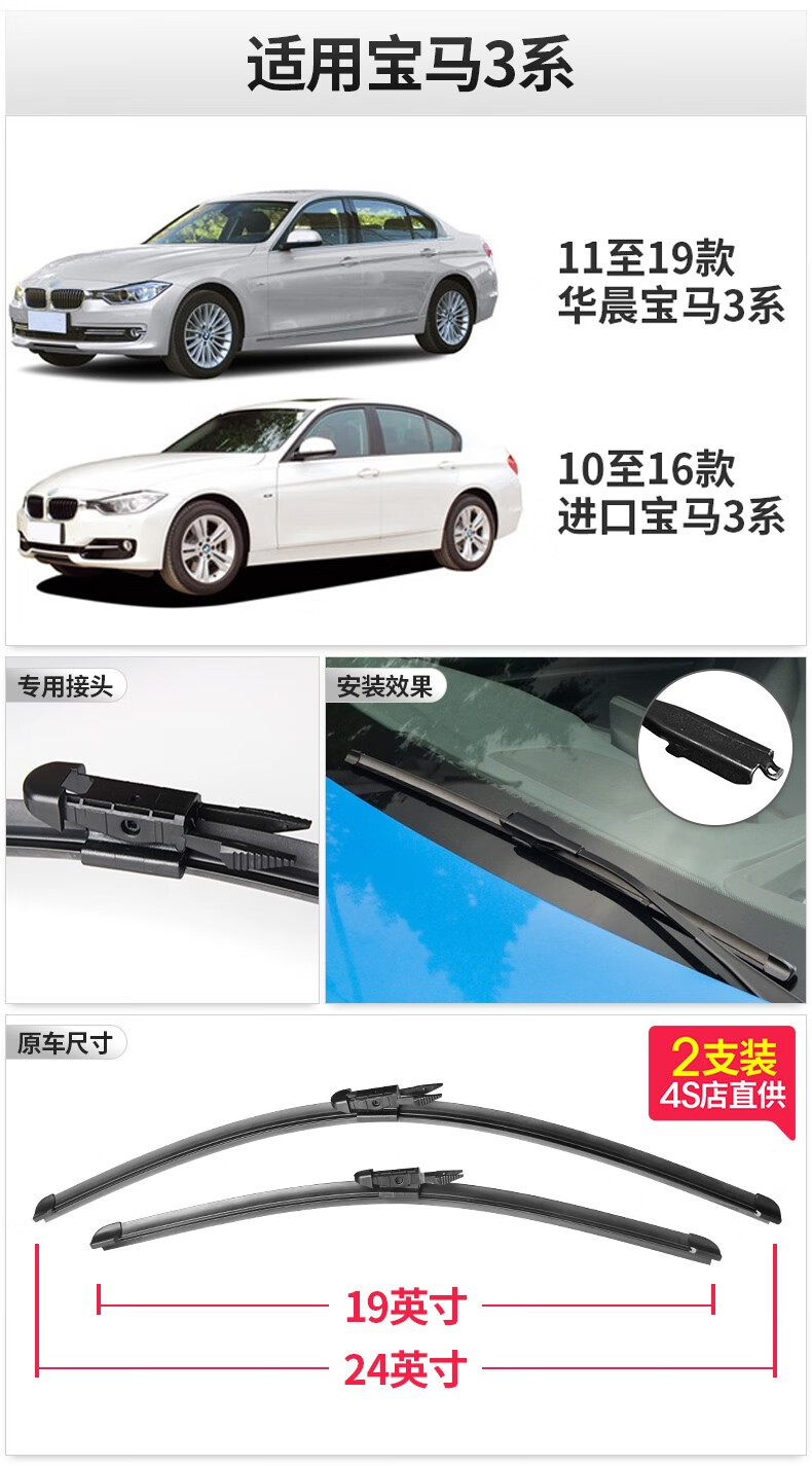 Suitable for original BMW 3 Series wipers 320LI wipers 325/330/316I/318i boneless wiper blades 3 Series GT original wiper strips 20-22 models BMW 3 Series pair