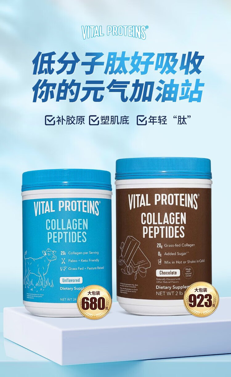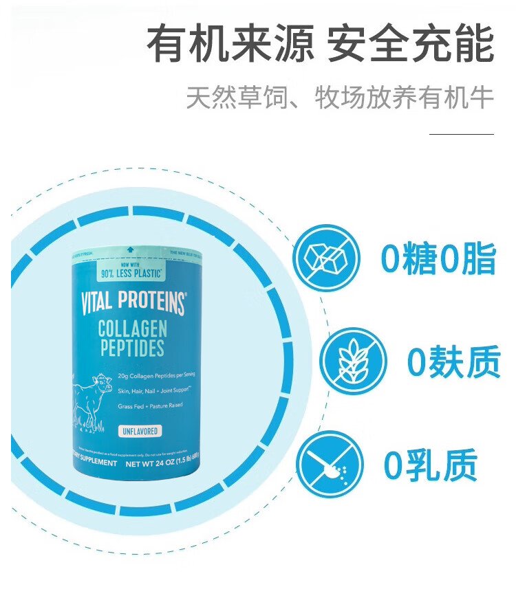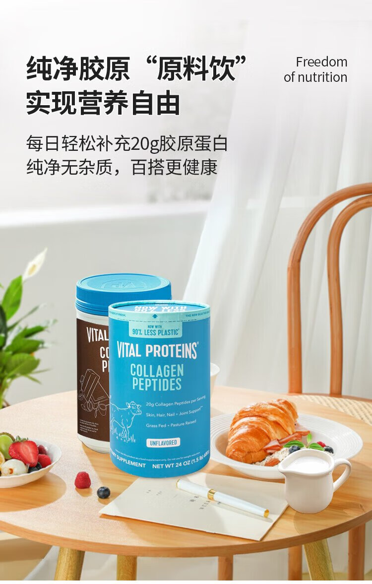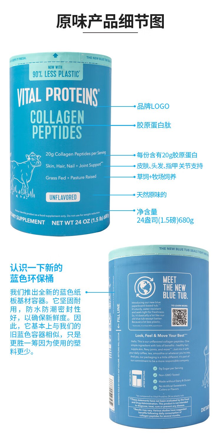 VITAL PROTEINS Collagen Peptide 680g Nestlé Pure Bovine Collagen Hydrolyzed Small Molecular Protein Peptide for Beauty and Firming Skin Big Blue Can of Collagen Original Flavor 680g*1 Can