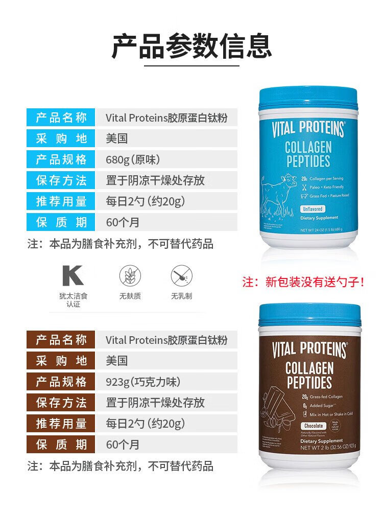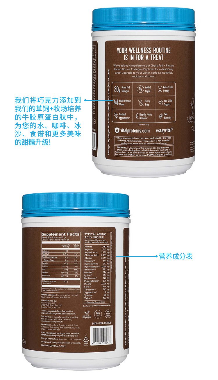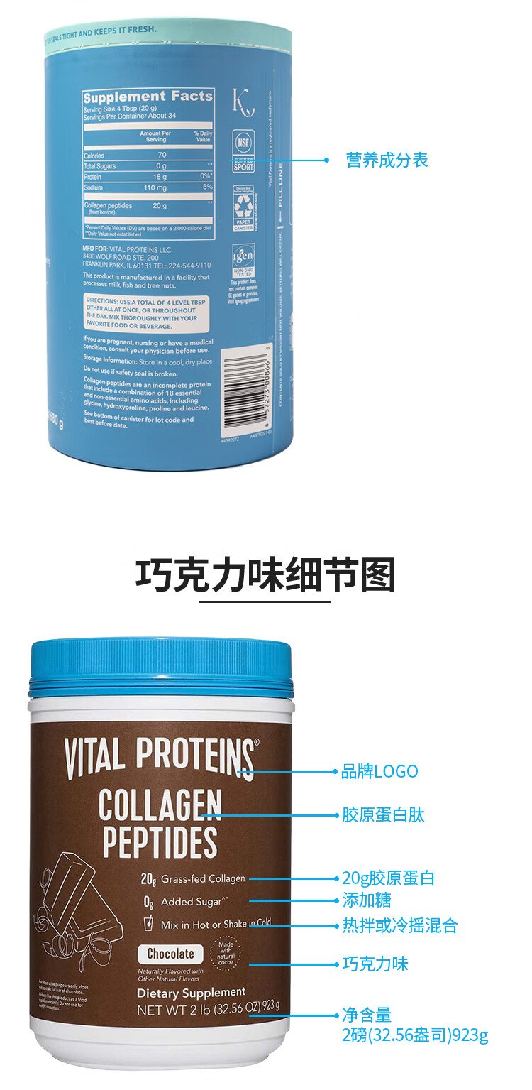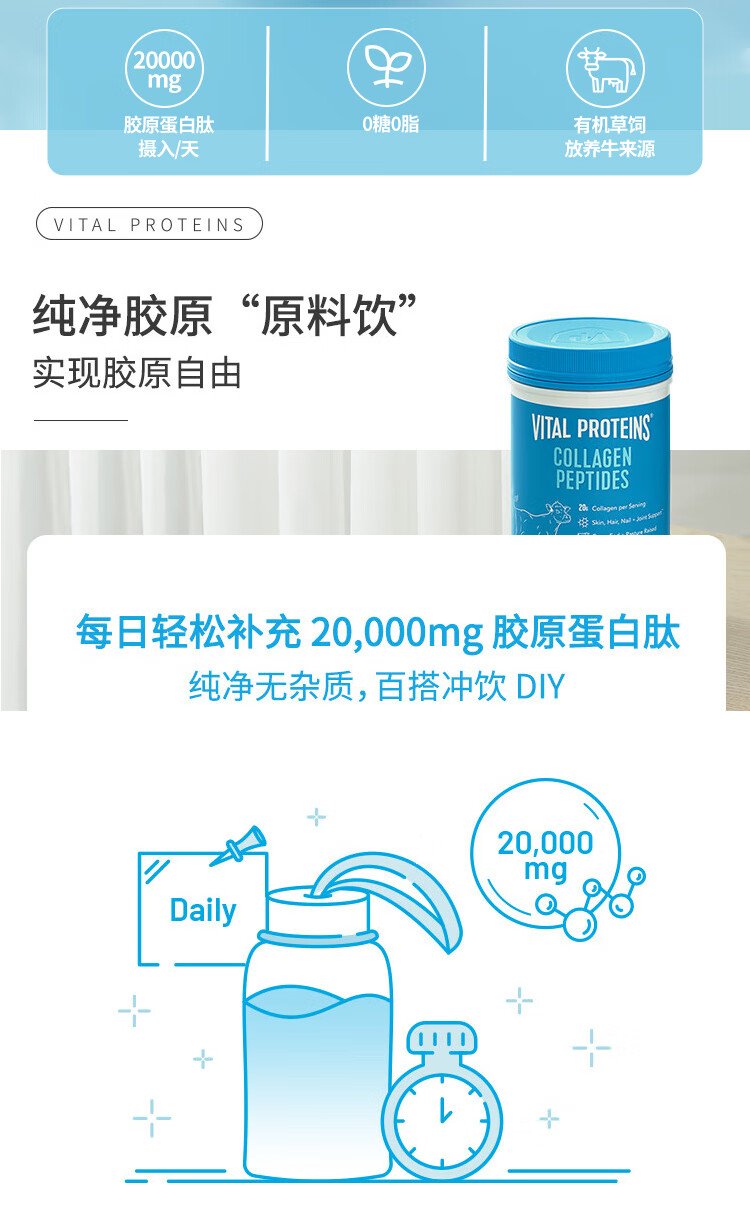 VITAL PROTEINS Collagen Peptide 680g Nestlé Pure Bovine Collagen Hydrolyzed Small Molecular Protein Peptide for Beauty and Firming Skin Big Blue Can of Collagen Original Flavor 680g*1 Can