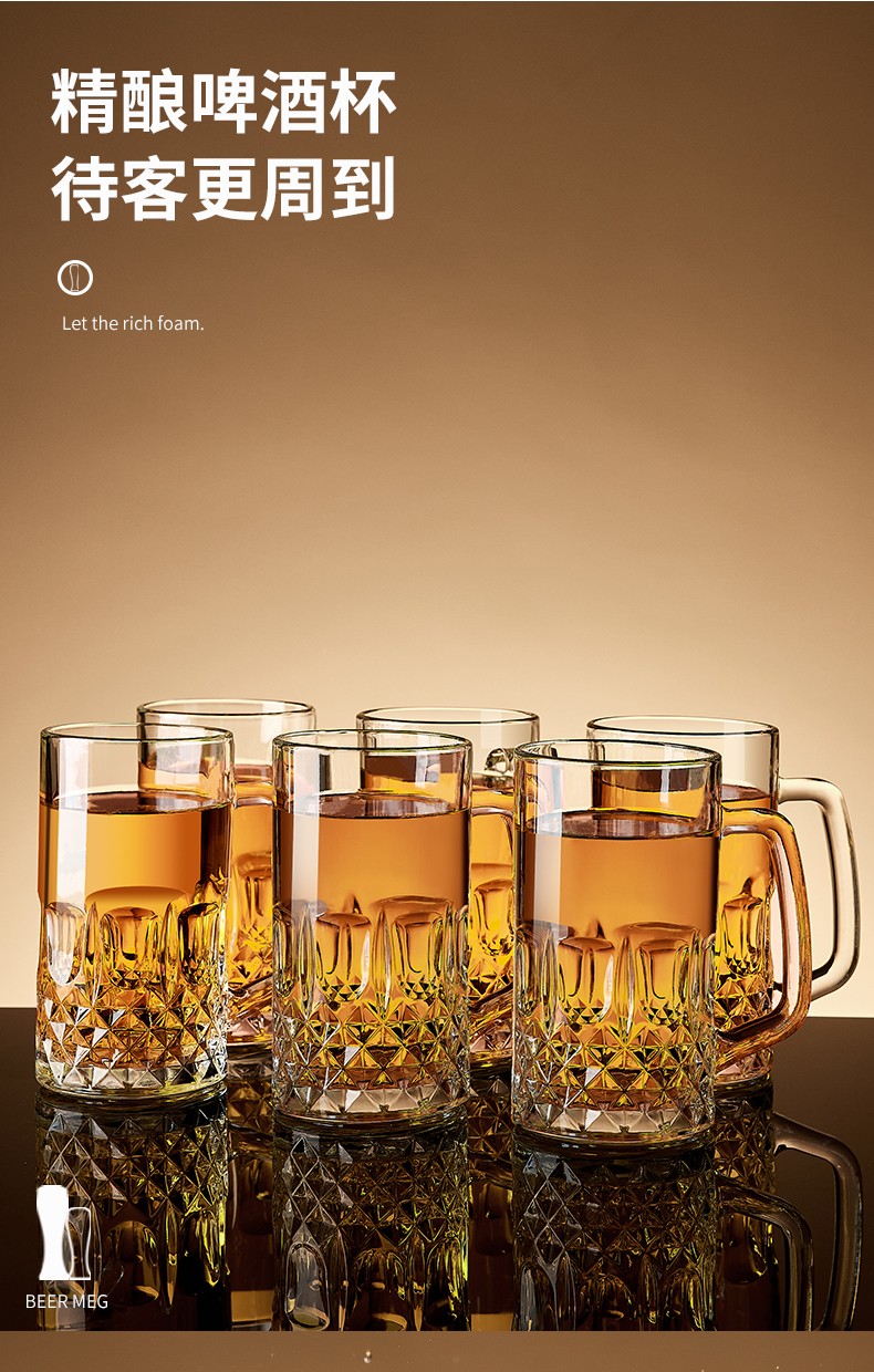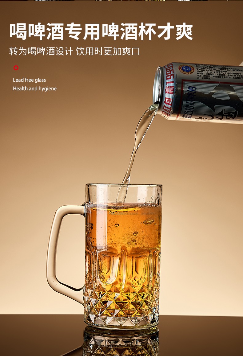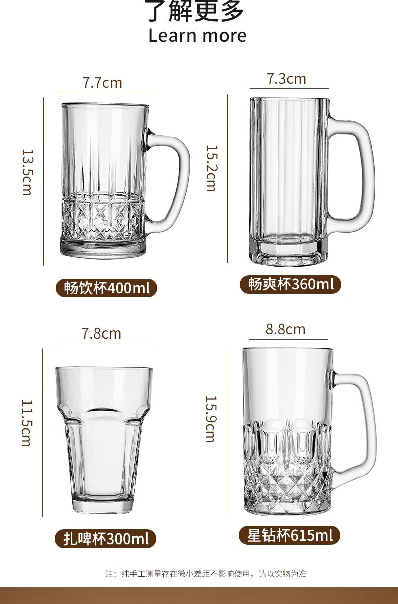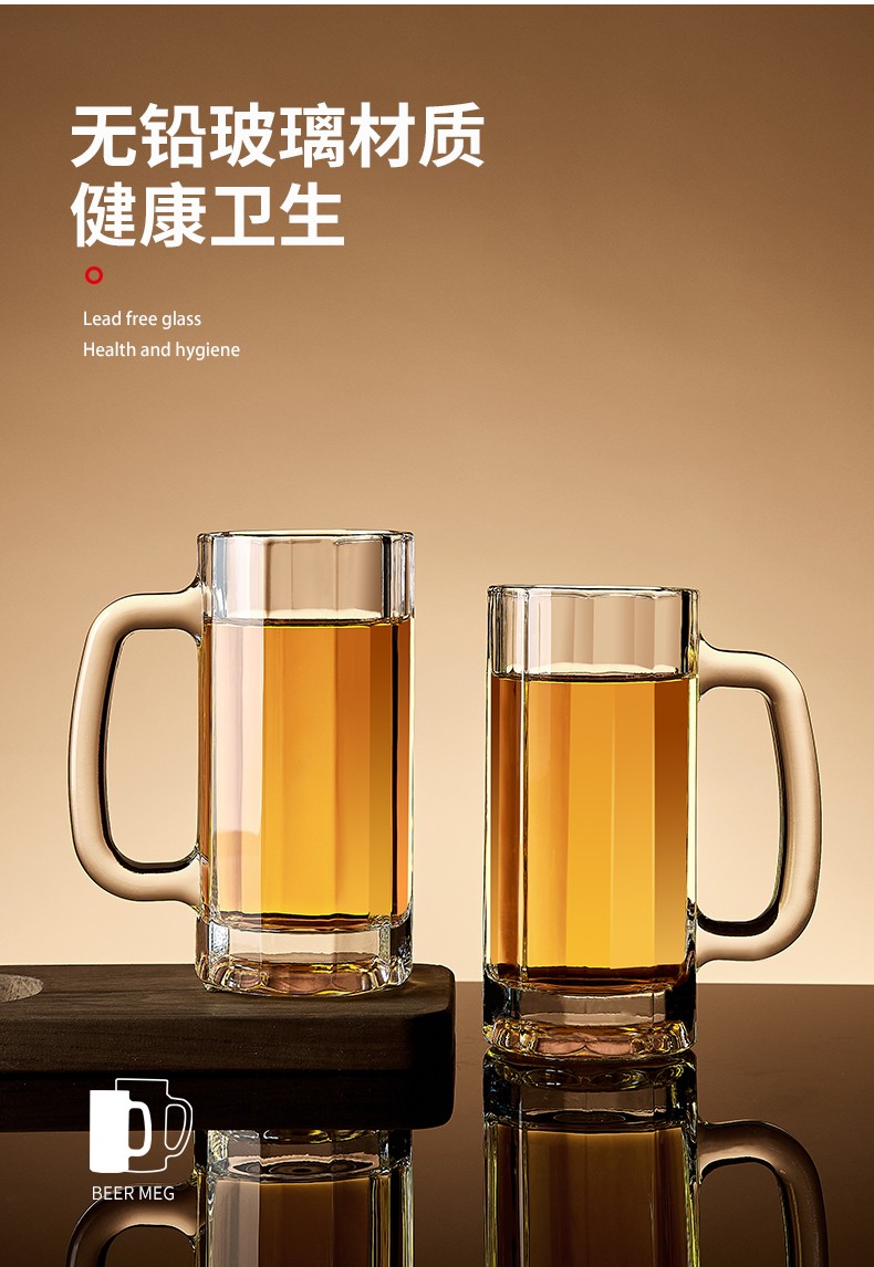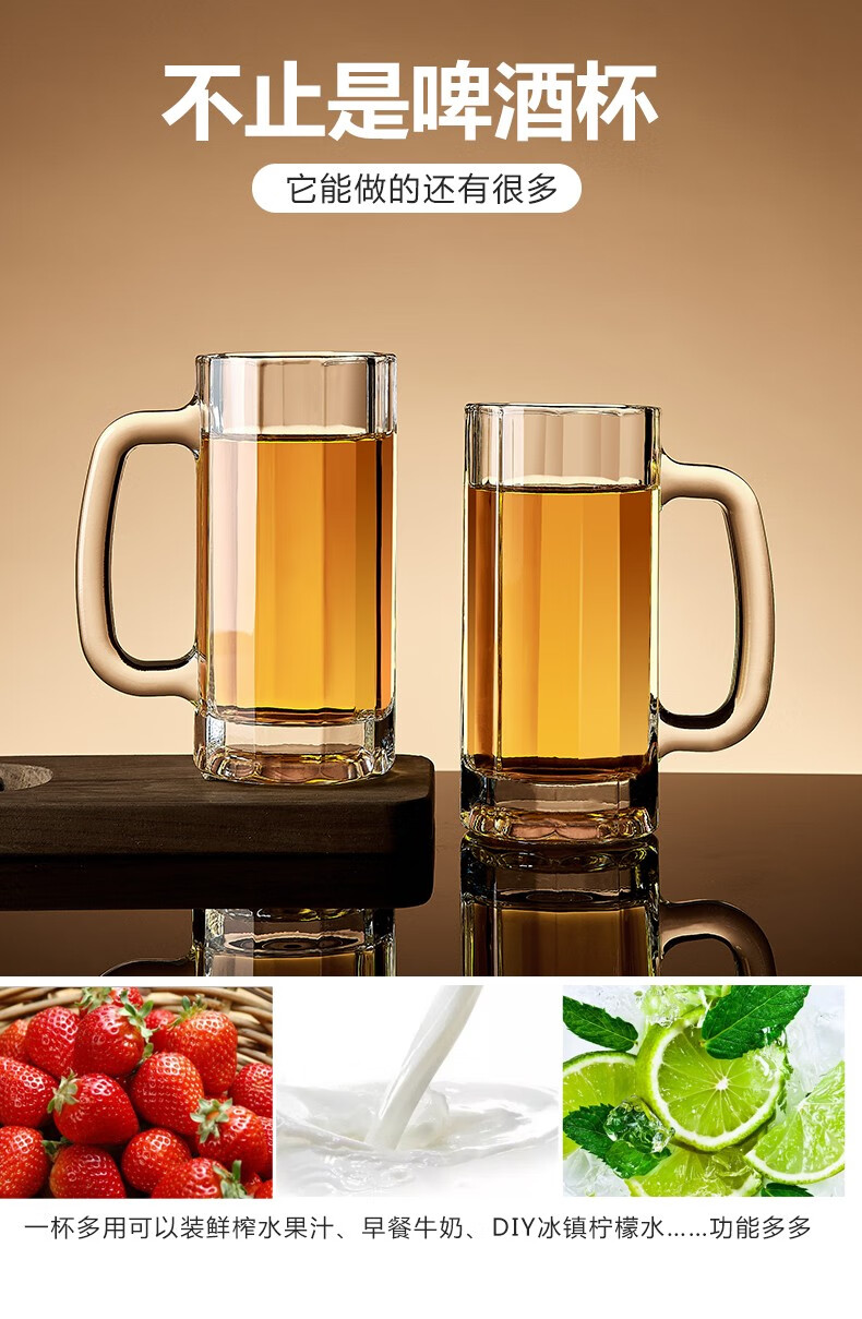 Green Apple Beer Glass Water Cup with Handle Draft Beer Cup Thickened Hero Cup Tea Cup Home Beverage Juice Cup Large Hero Cup Value-for-money 6-pack 615ml