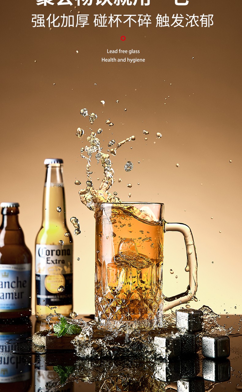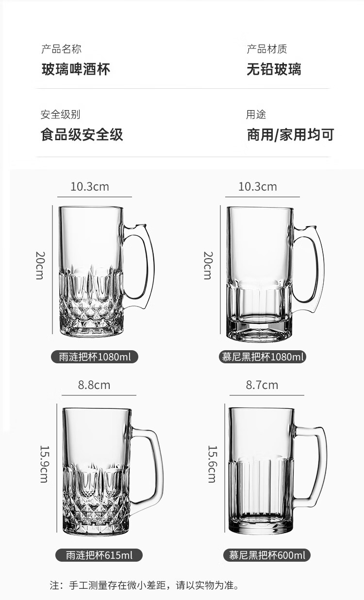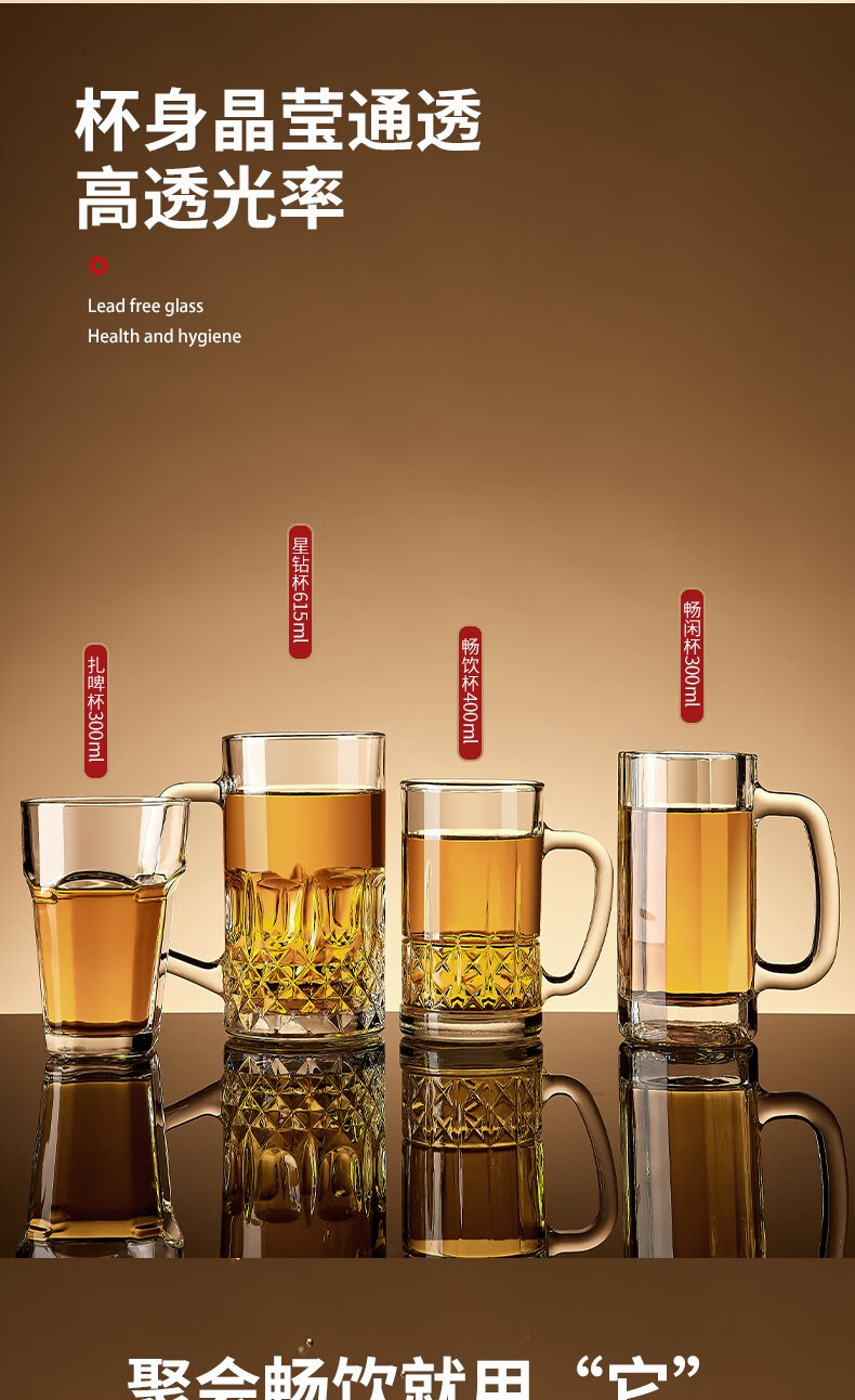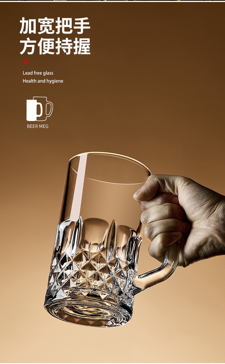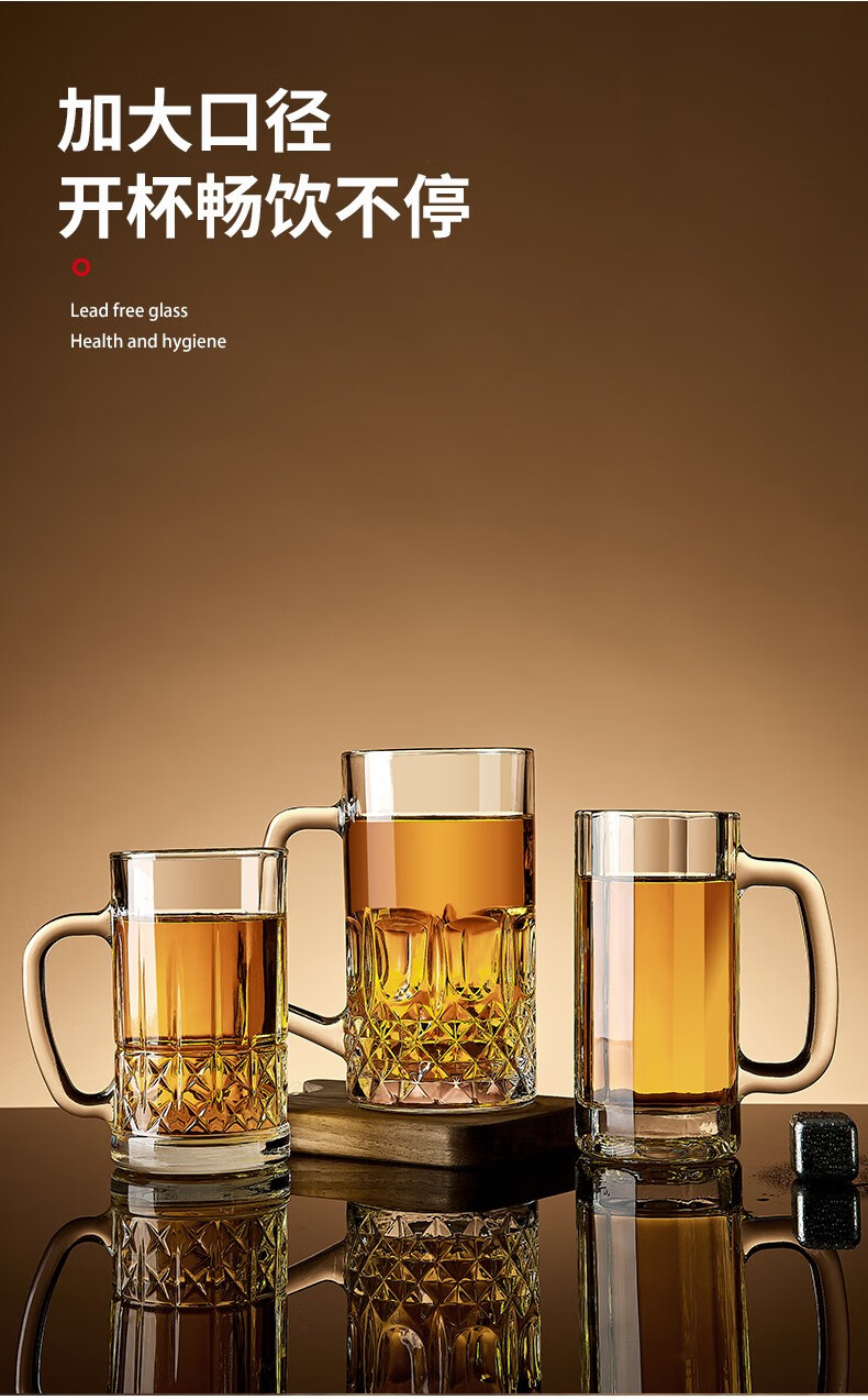 Green Apple Beer Glass Water Cup with Handle Draft Beer Cup Thickened Hero Cup Tea Cup Home Beverage Juice Cup Large Hero Cup Value-for-money 6-pack 615ml