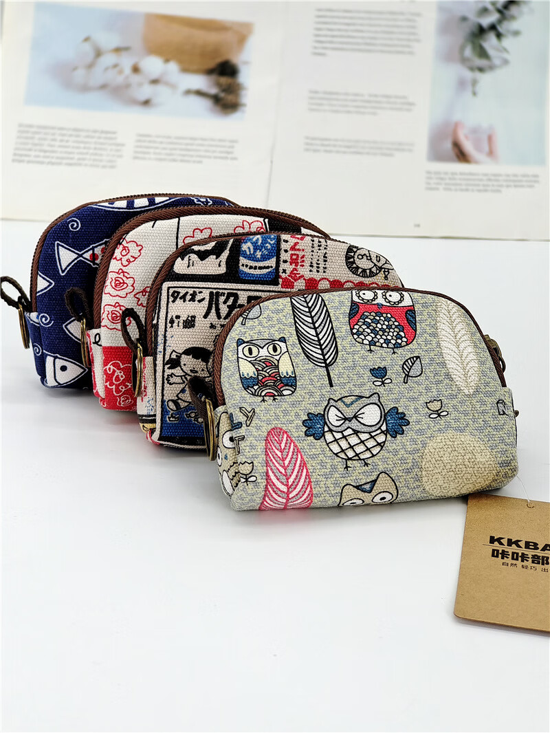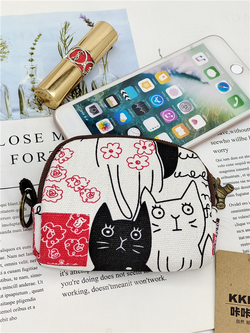 Coin purse female small mini Korean ins canvas small purse zipper canvas cotton bag aunt towel storage bag cute fabric card holder coin purse coin purse-multiple cats