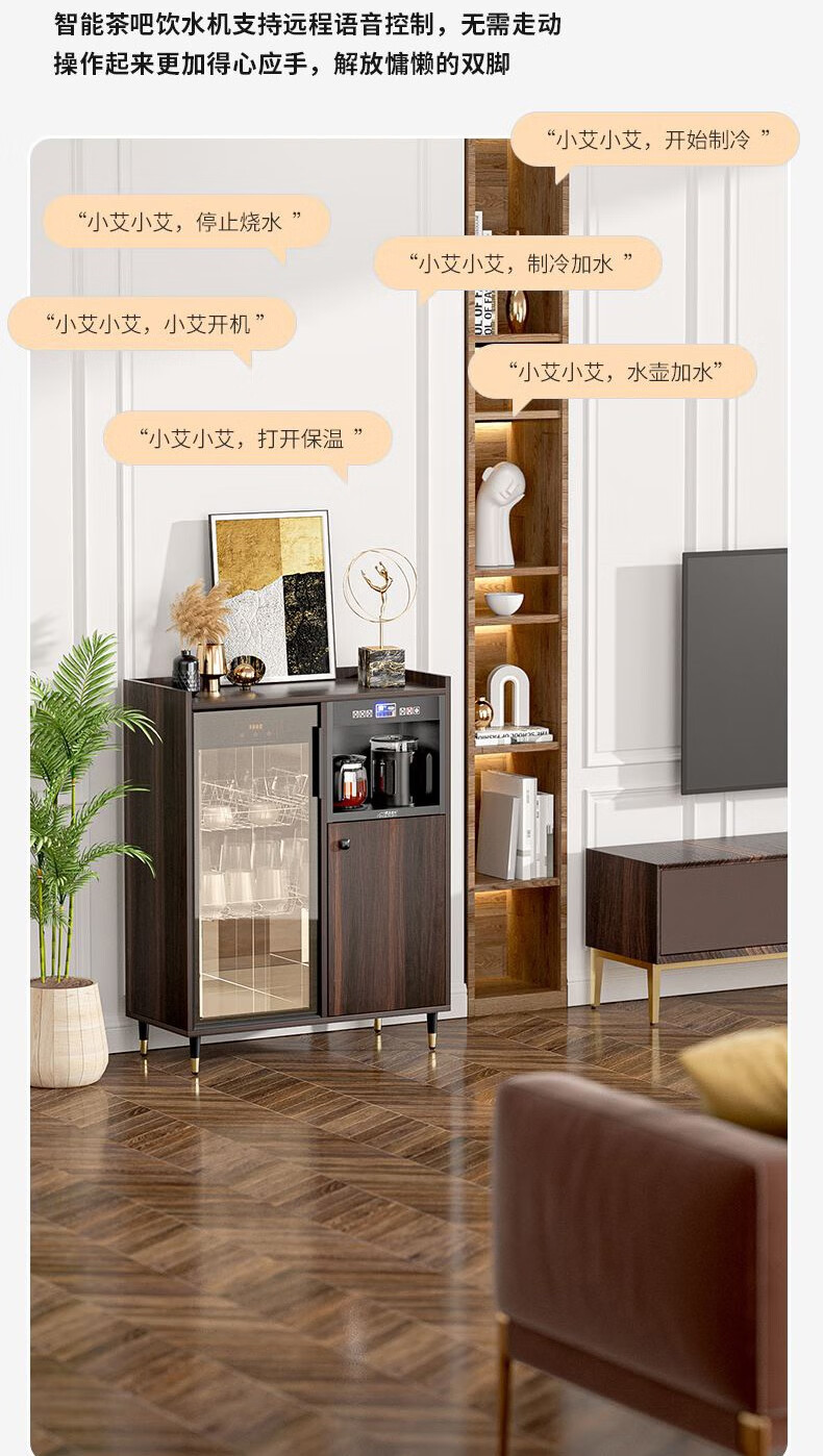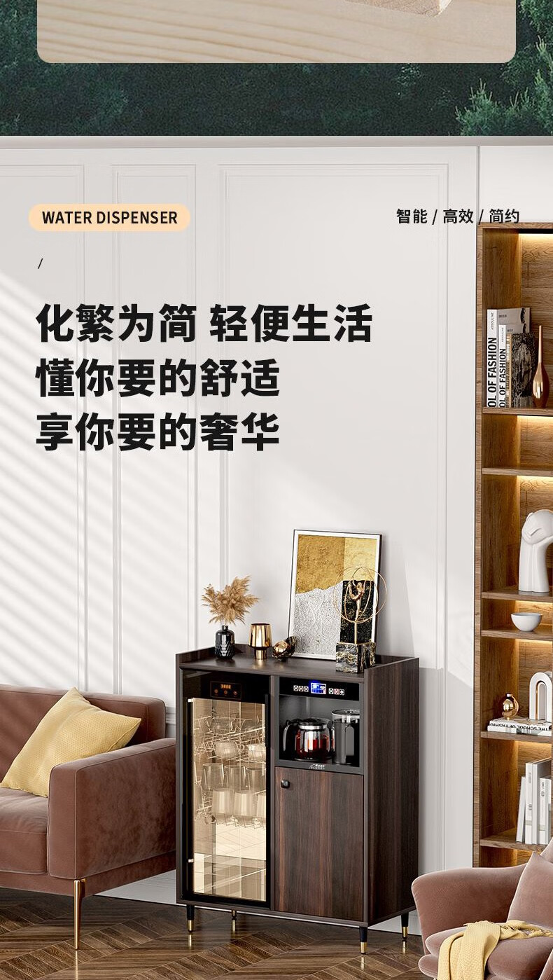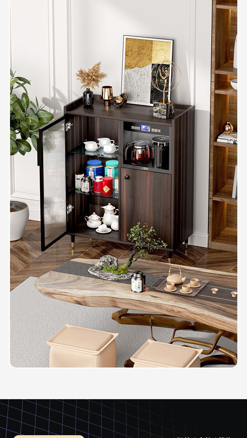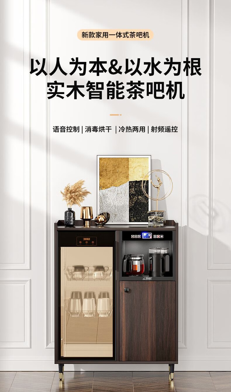 MEILINGDA Home Modern Light Luxury Style Remote Control Intelligent Solid Wood Fully Automatic Tea Bar Machine Office Water Dispenser Living Room Tea and Water Integrated Cabinet Refrigerator Red Wine Refrigerator Bottle Sterilizer Cabinet Solid Wood 916 Walnut (Storage Cabinet) Hot and Cold Type Warm