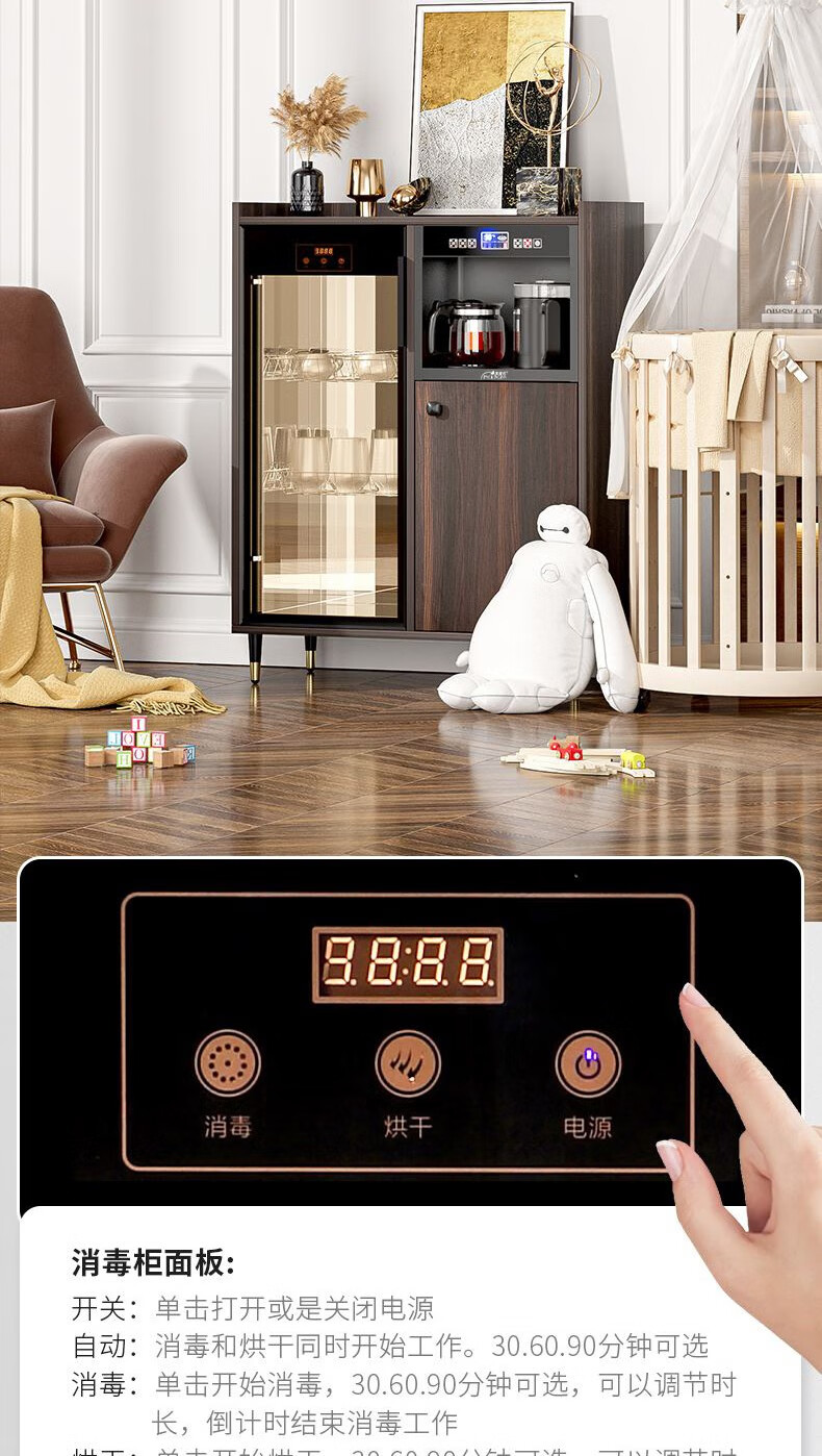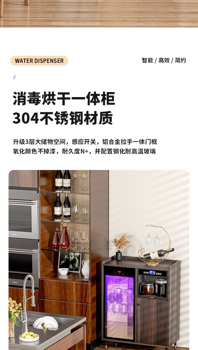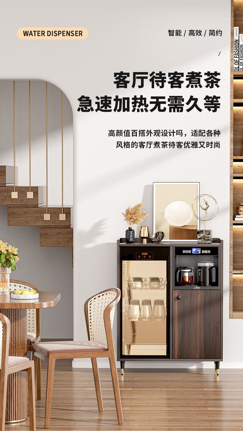 MEILINGDA Home Modern Light Luxury Style Remote Control Intelligent Solid Wood Fully Automatic Tea Bar Machine Office Water Dispenser Living Room Tea and Water Integrated Cabinet Refrigerator Red Wine Refrigerator Bottle Sterilizer Cabinet Solid Wood 916 Walnut (Storage Cabinet) Hot and Cold Type Warm