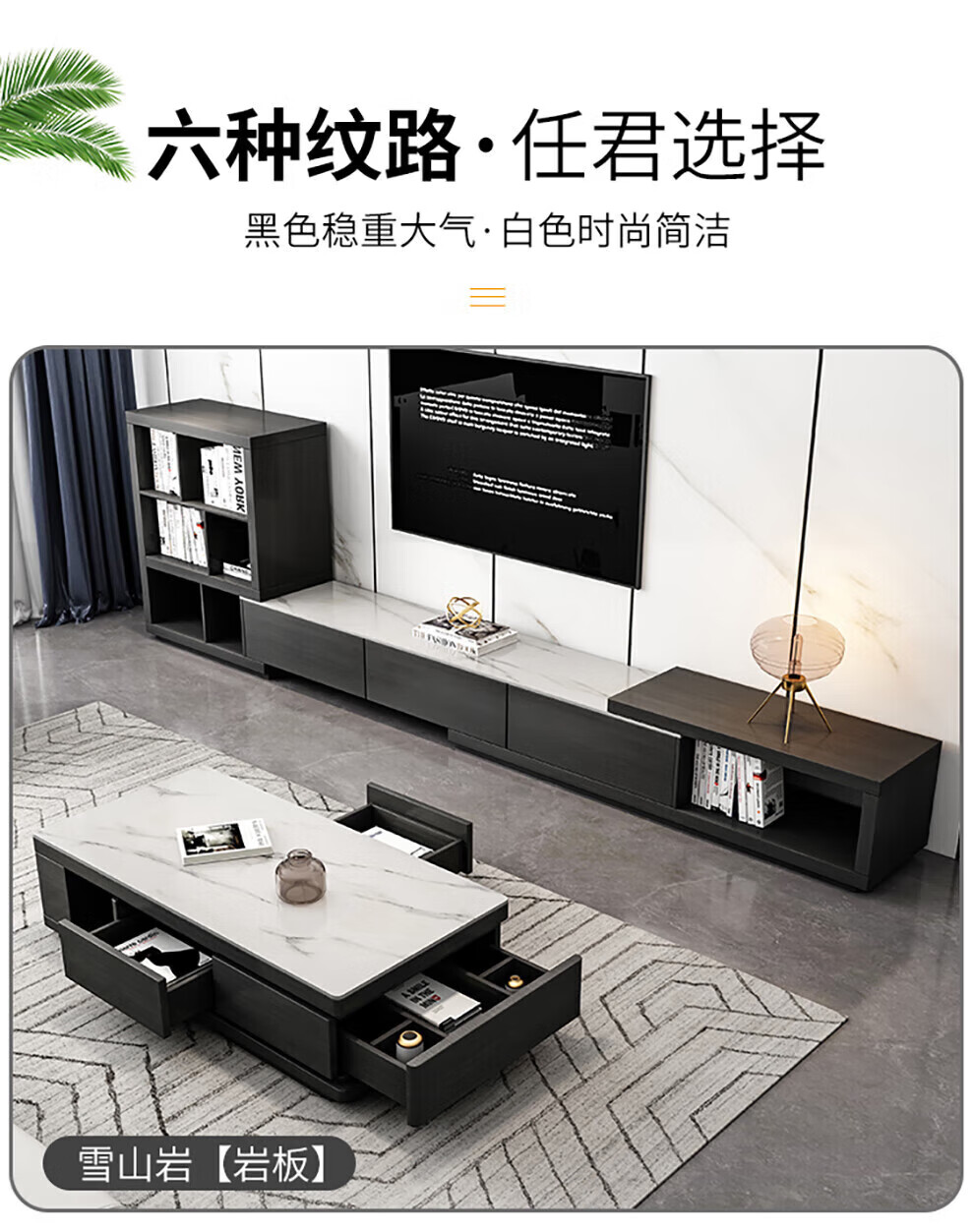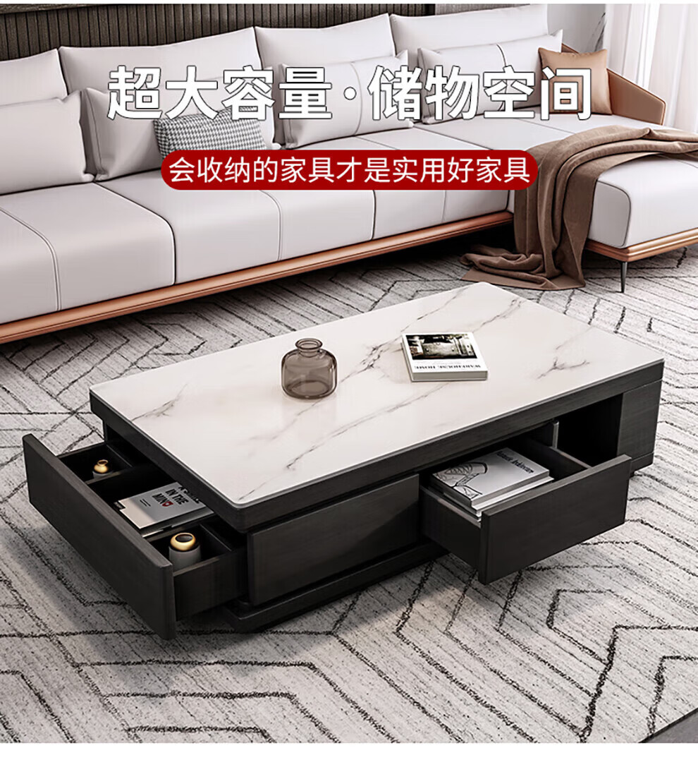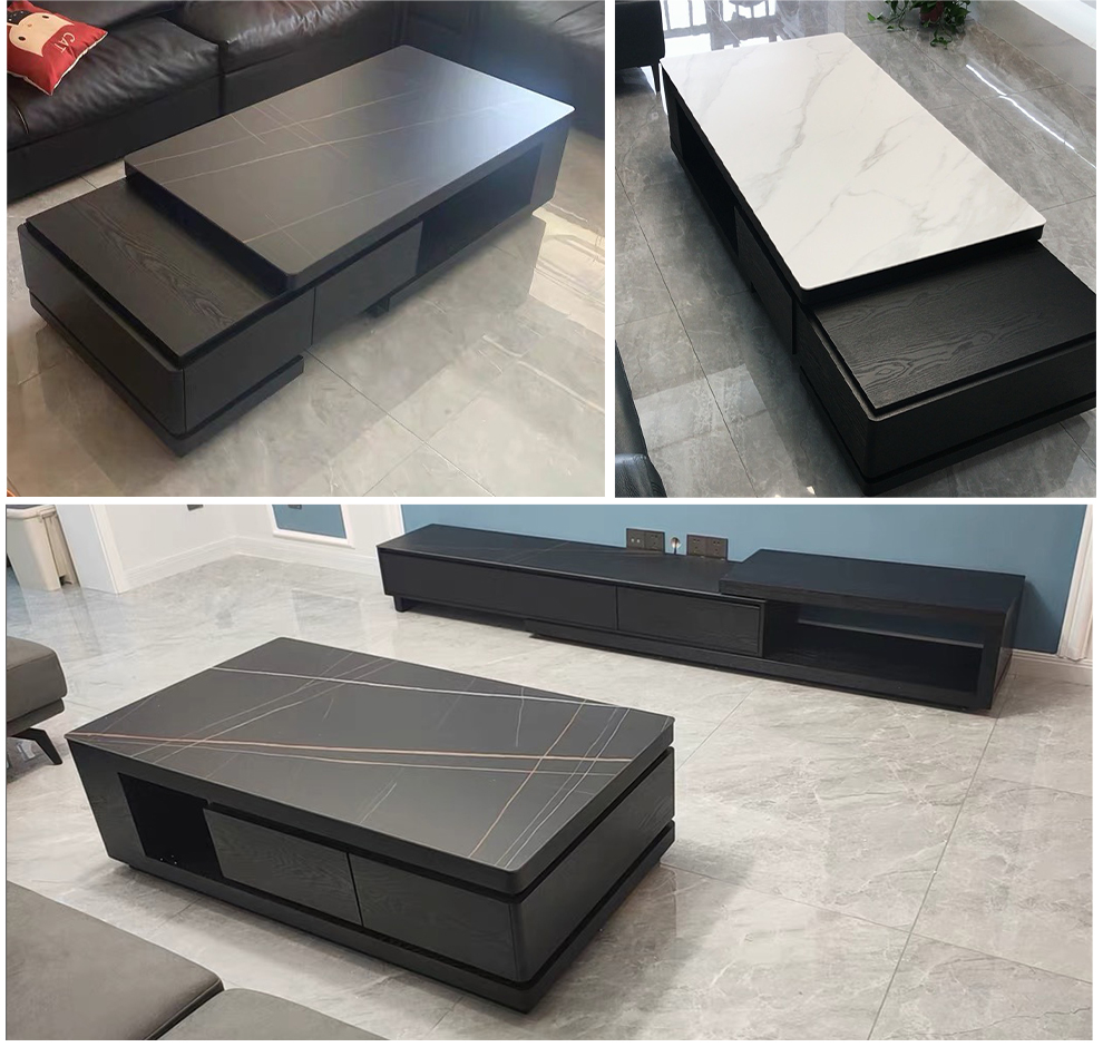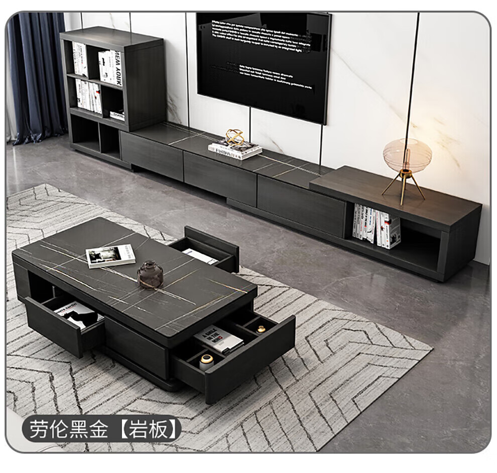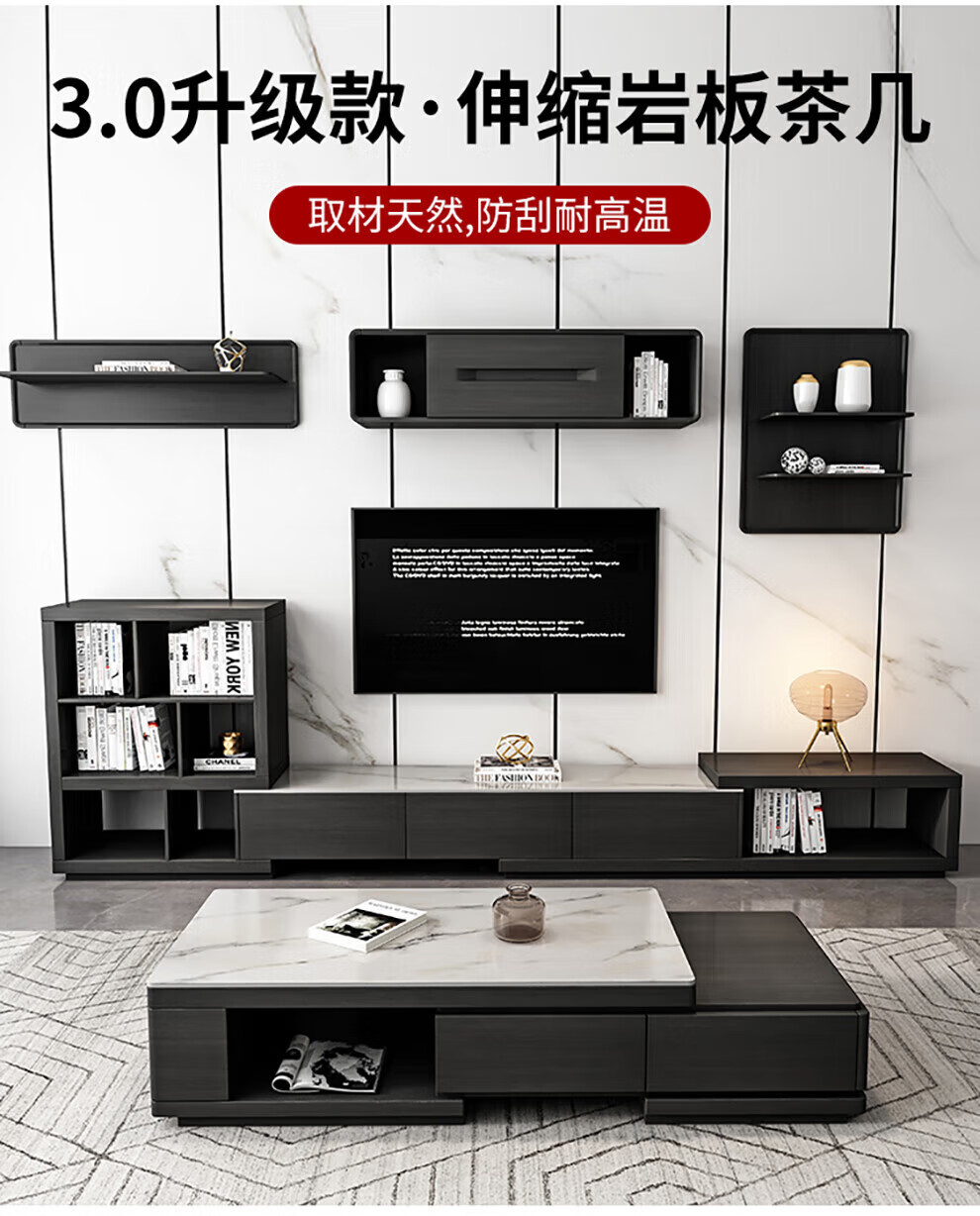Ji Qin's quick delivery in 3 hours Coffee table Italian light luxury slate TV cabinet coffee table combination Nordic modern simple small apartment living room furniture TV cabinet base cabinet Upgraded slate coffee table (retractable 1.3-1.65 meters) Completely installed