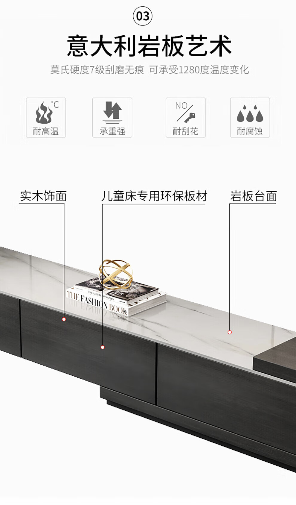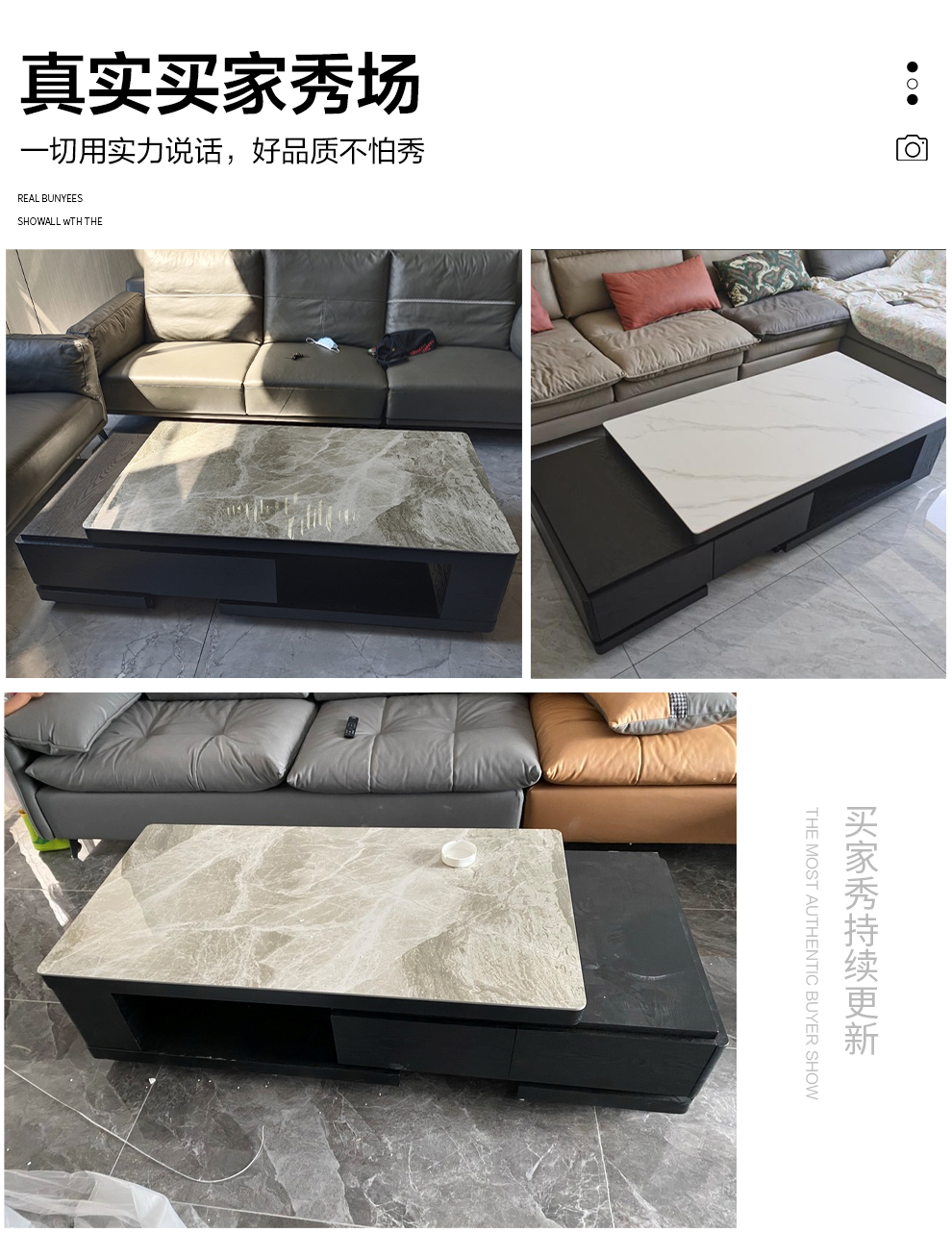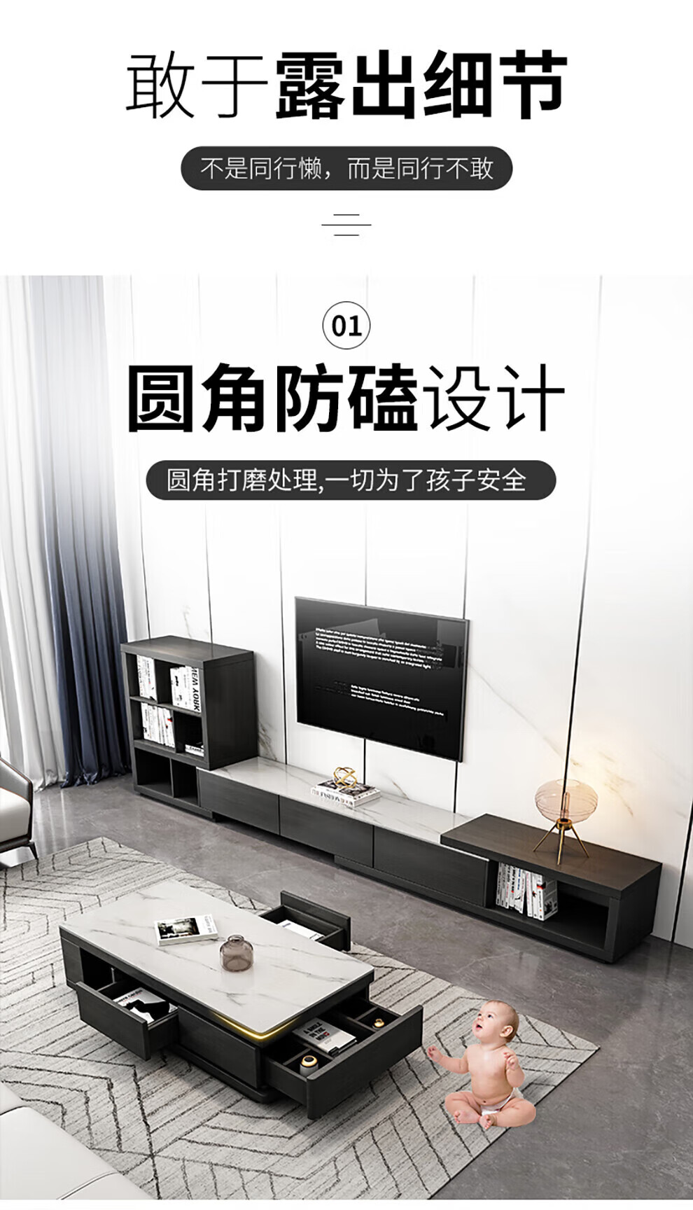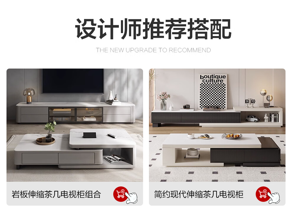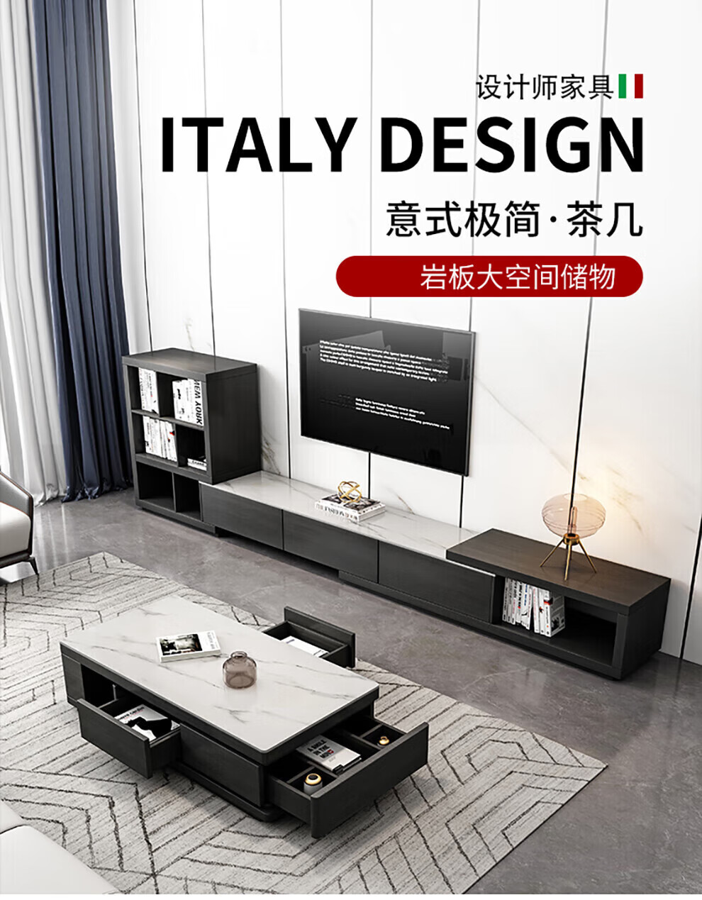 Ji Qin's quick delivery in 3 hours Coffee table Italian light luxury slate TV cabinet coffee table combination Nordic modern simple small apartment living room furniture TV cabinet base cabinet Upgraded slate coffee table (retractable 1.3-1.65 meters) Completely installed