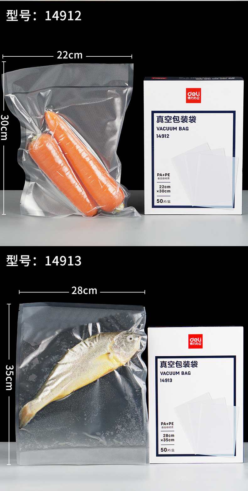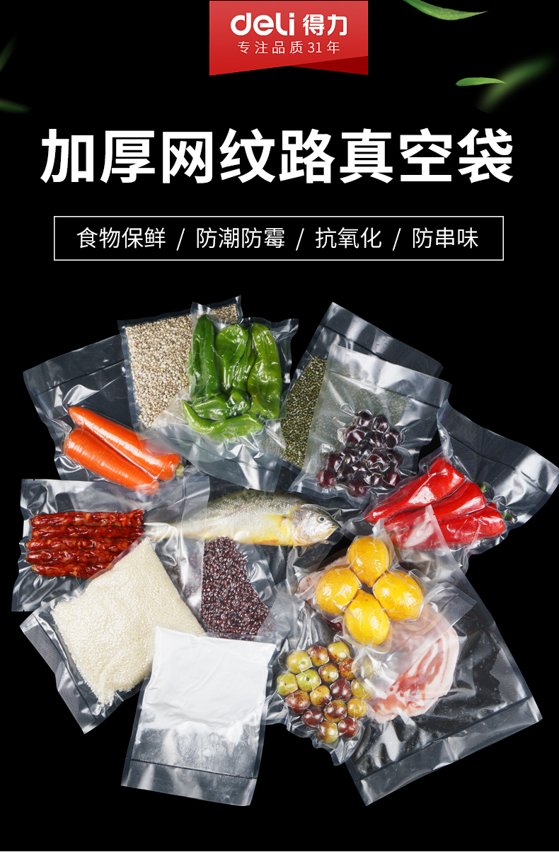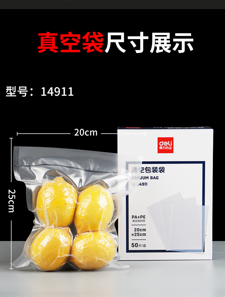 Deli vacuum fresh-keeping bag, food-grade mesh texture vacuum compression bag, sealed fresh-keeping bag, vacuum food machine, vegetable, fruit, cooked food and dry goods packaging bag, 20cm*25cm (50 pieces/box) 14911
