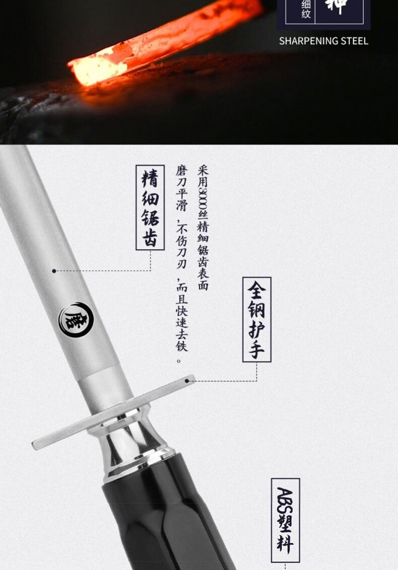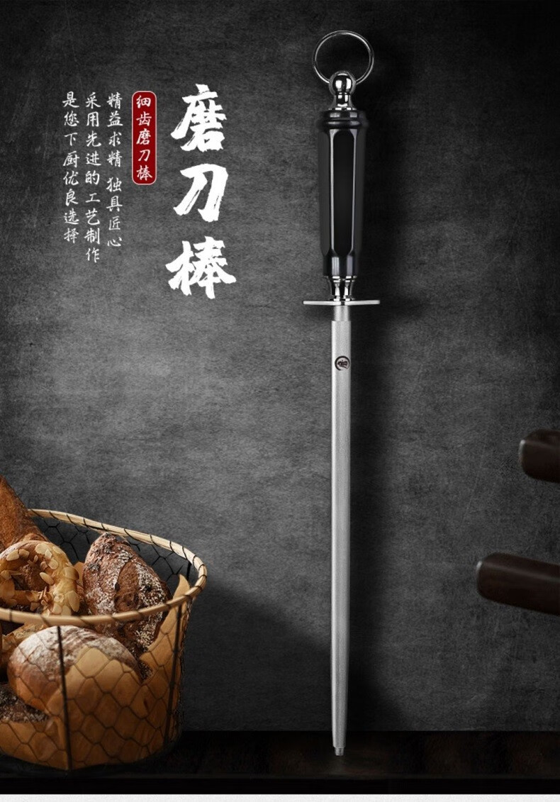 Chuangmu Workshop sharpening tool, household sharpening stick, butcher's special sharpening knife, professional sharpening stone tool, red round handle flat 12-inch sharpening stick