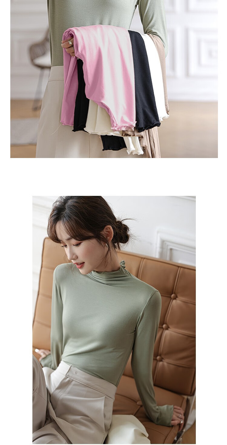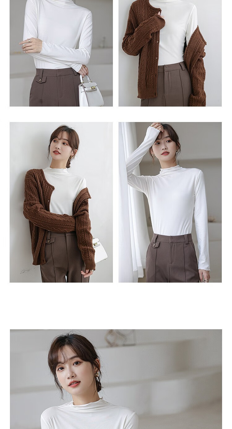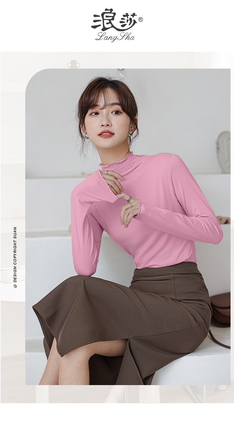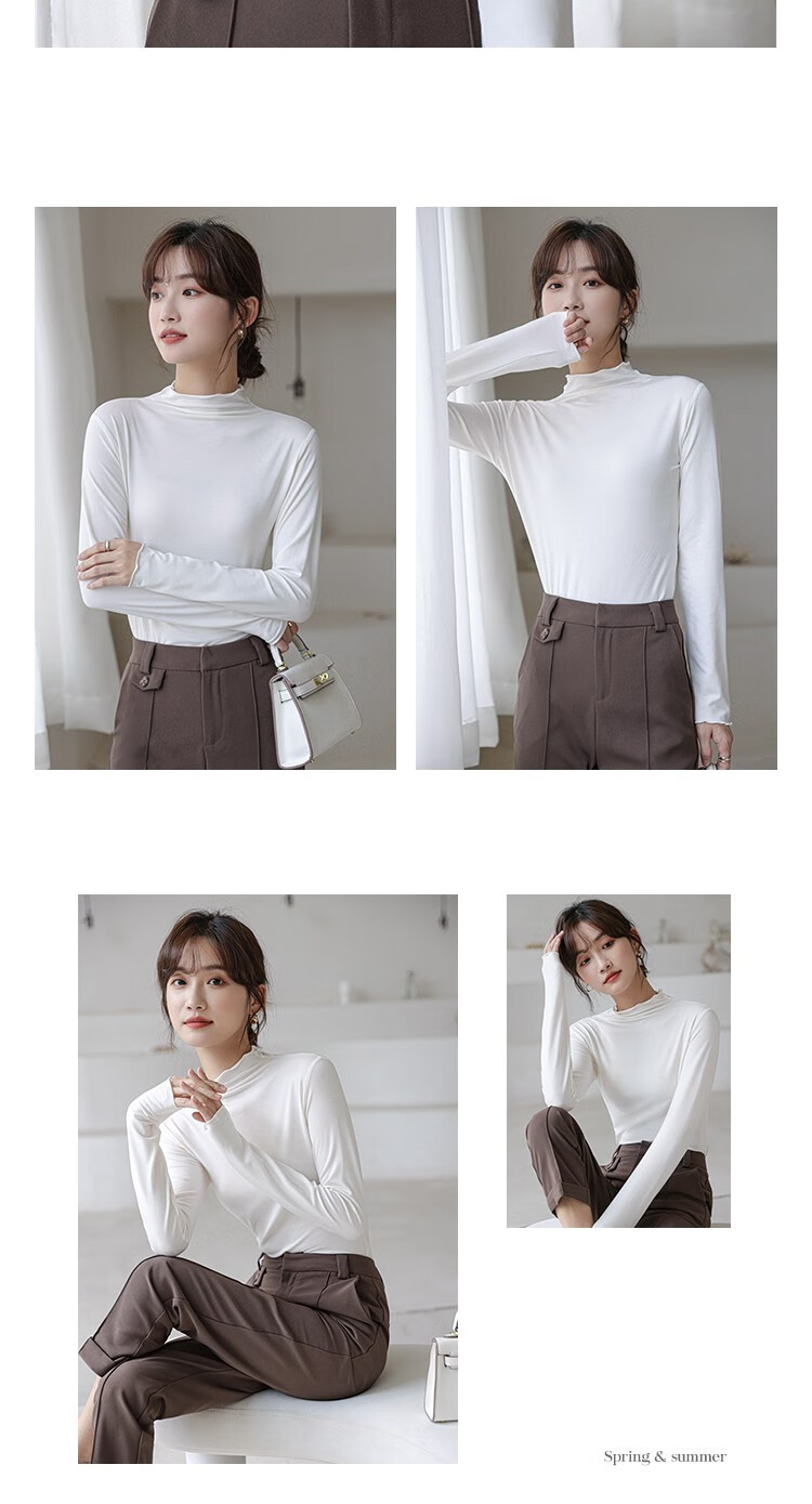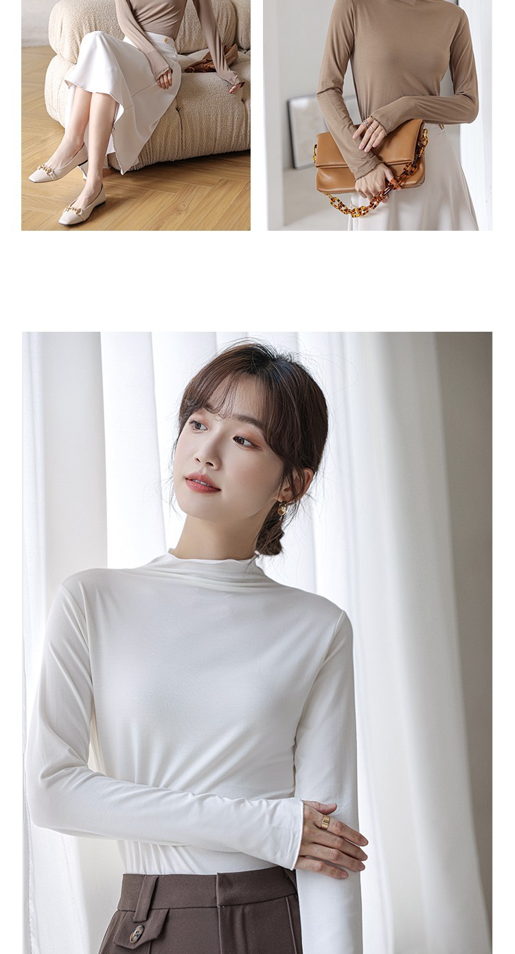 Langsha half turtleneck bottoming shirt for women, long-sleeved spring and autumn inner wear, slim fit autumn and winter underwear for women, thin style, mid-collar top, elegant white, one size fits all