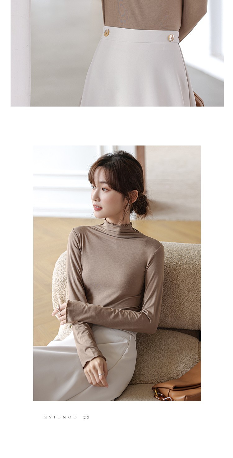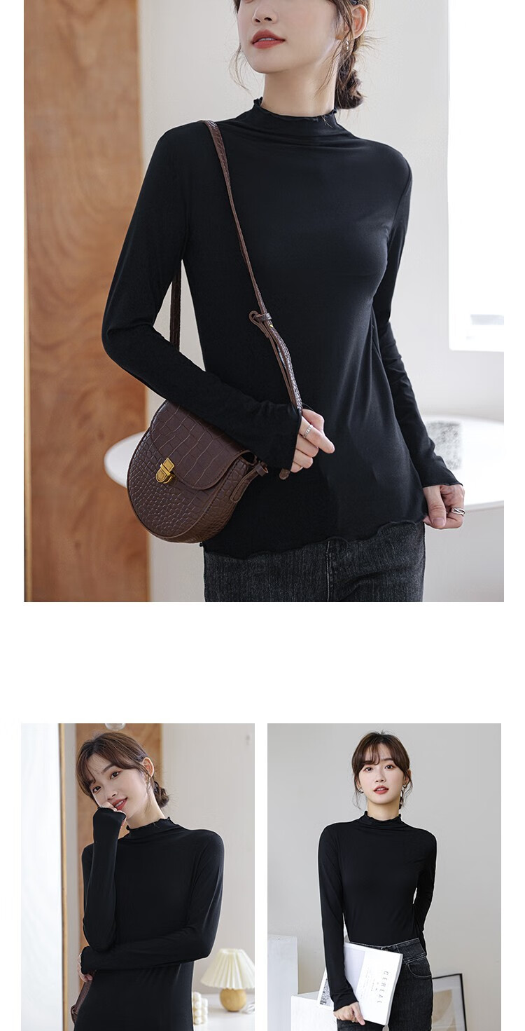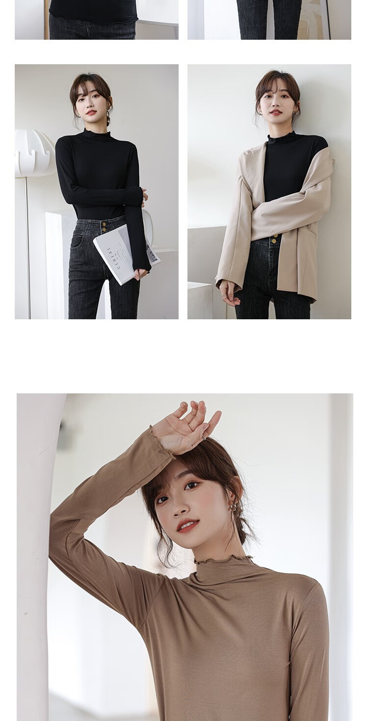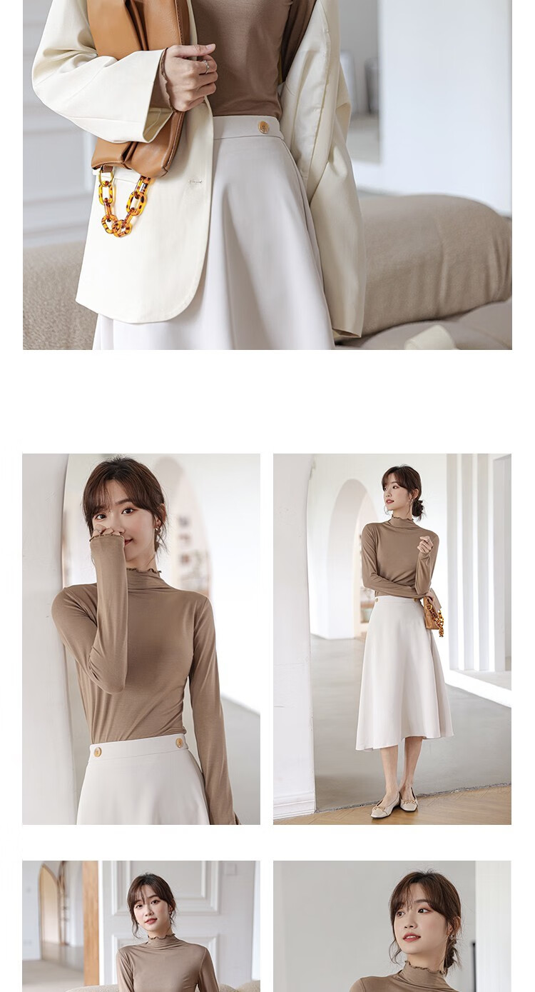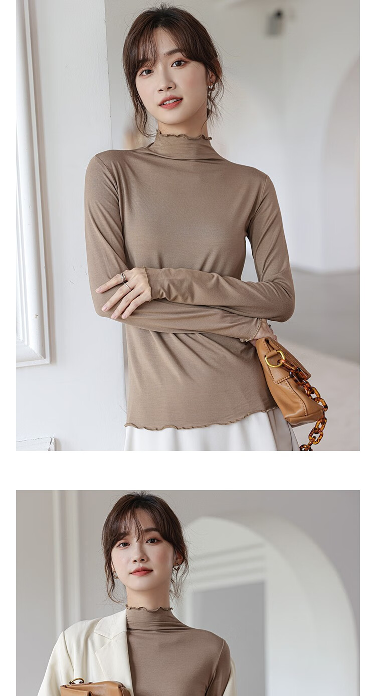 Langsha half turtleneck bottoming shirt for women, long-sleeved spring and autumn inner wear, slim fit autumn and winter underwear for women, thin style, mid-collar top, elegant white, one size fits all